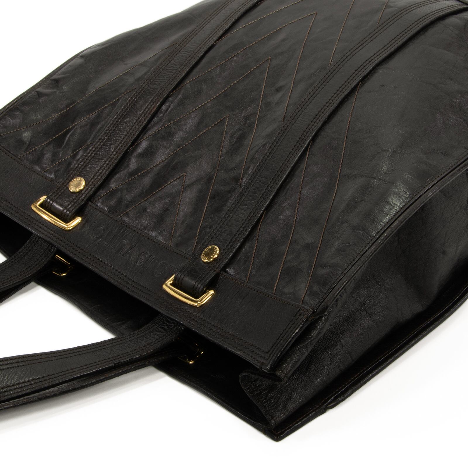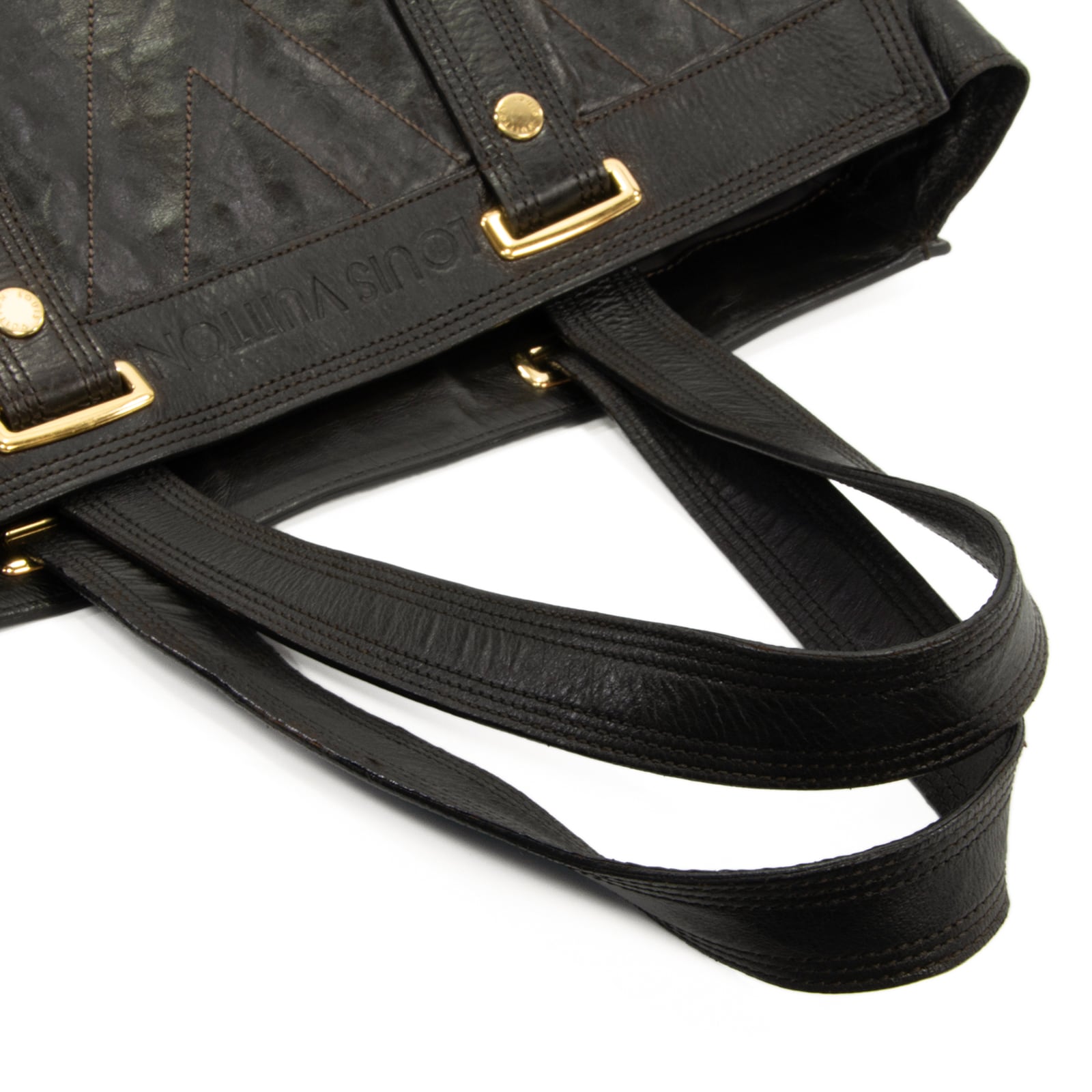 こちらは、希少な素材が洗練された印象を醸し出しました、ルイヴィトンの2007年春夏コレクション限定モデル・サックプラ・キュイール ソアナ・トートバッグでございます。