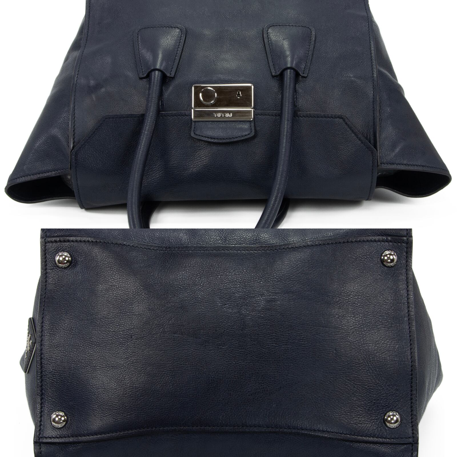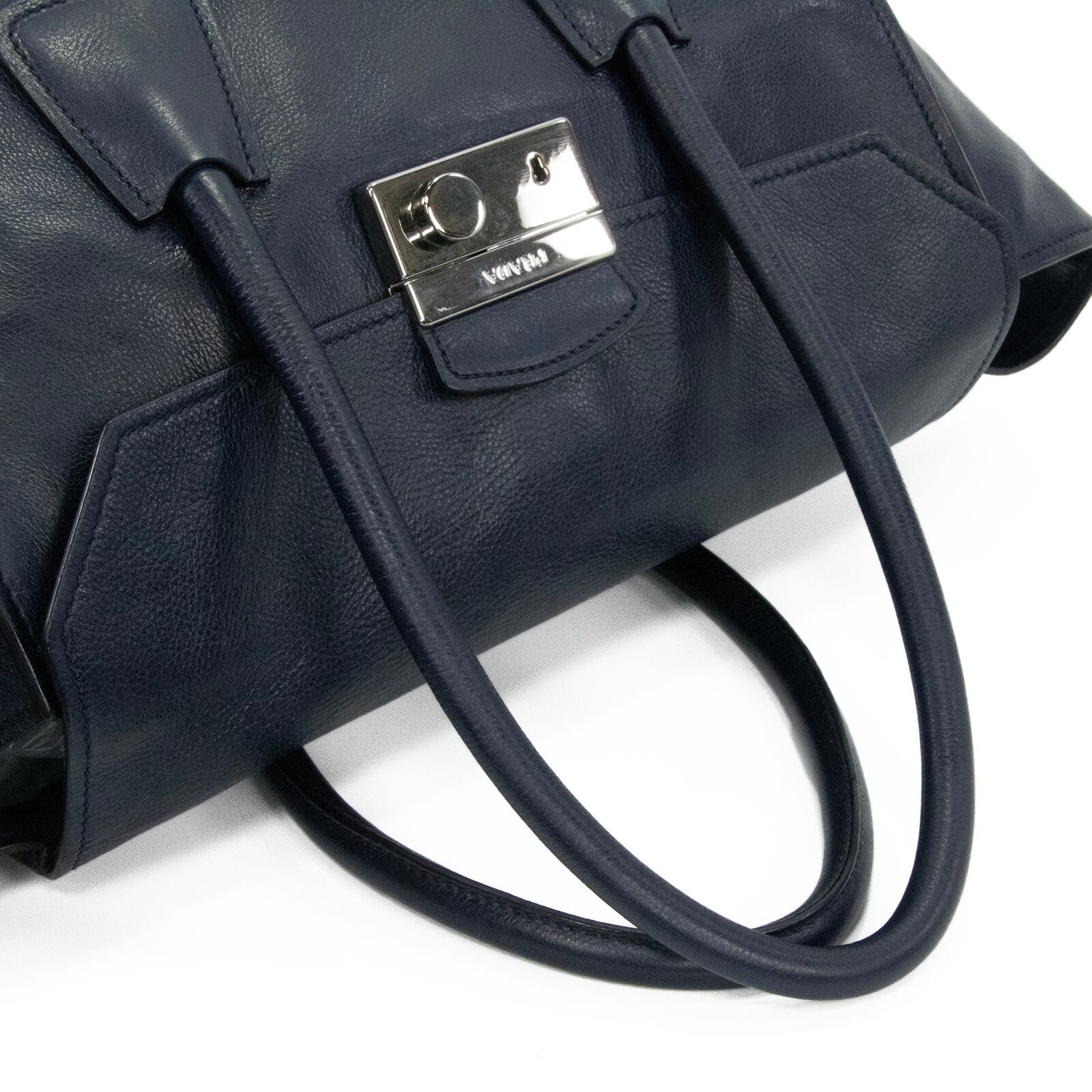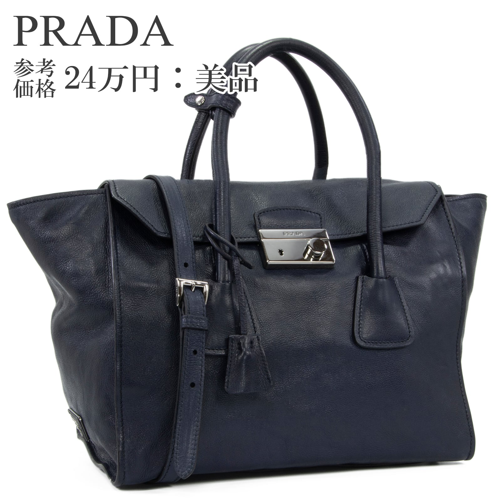 本物 送料無料 プラダ 2WAYショルダーバッグ ハンドバッグ レディース ネイビーブルー 斜め掛け ロゴ マーク 革 レザー 鞄 バック F304