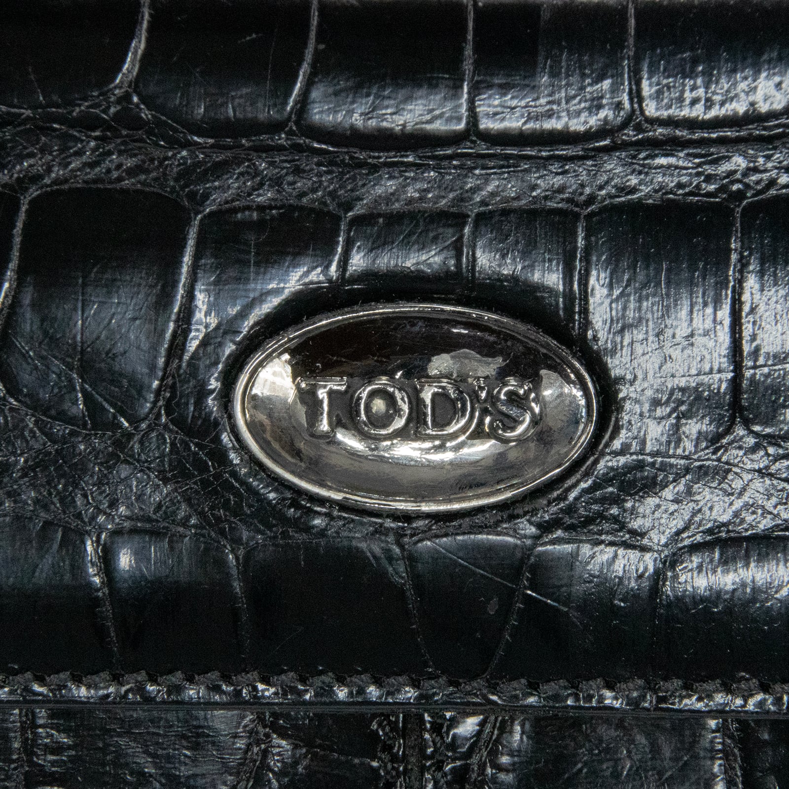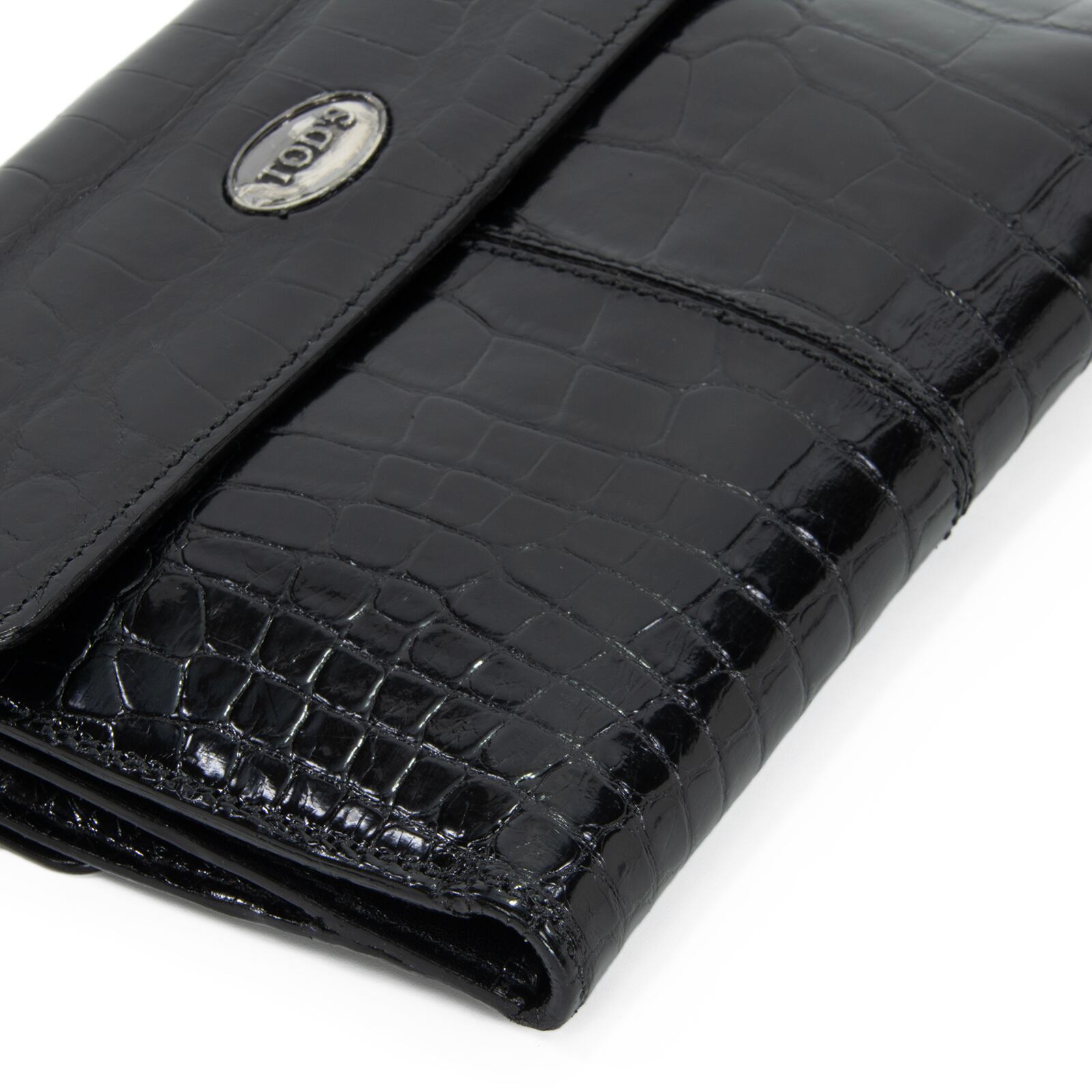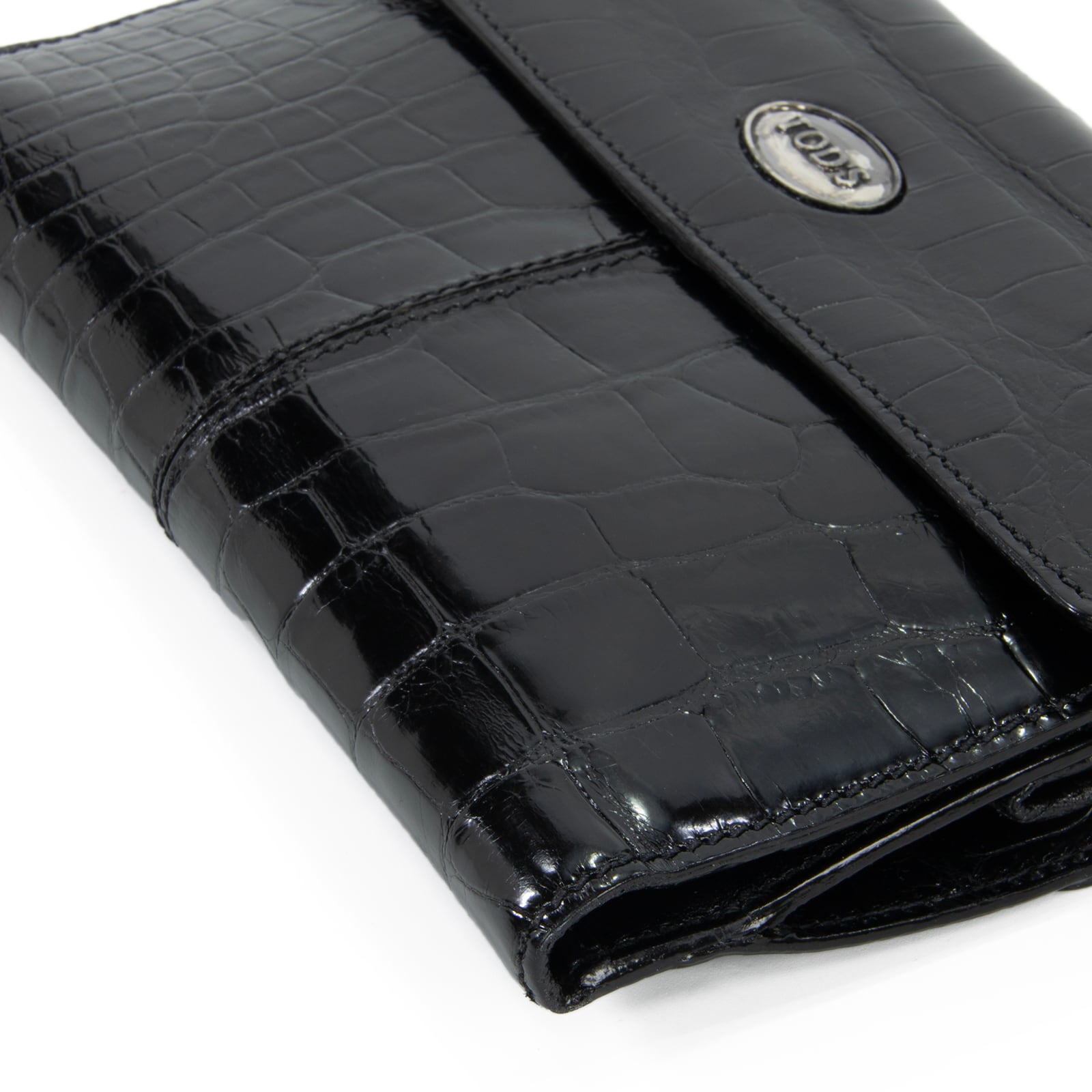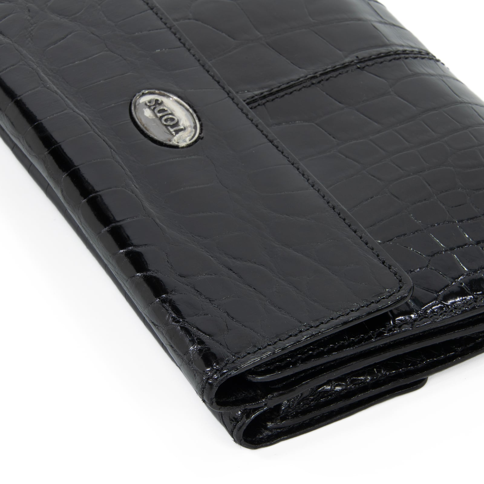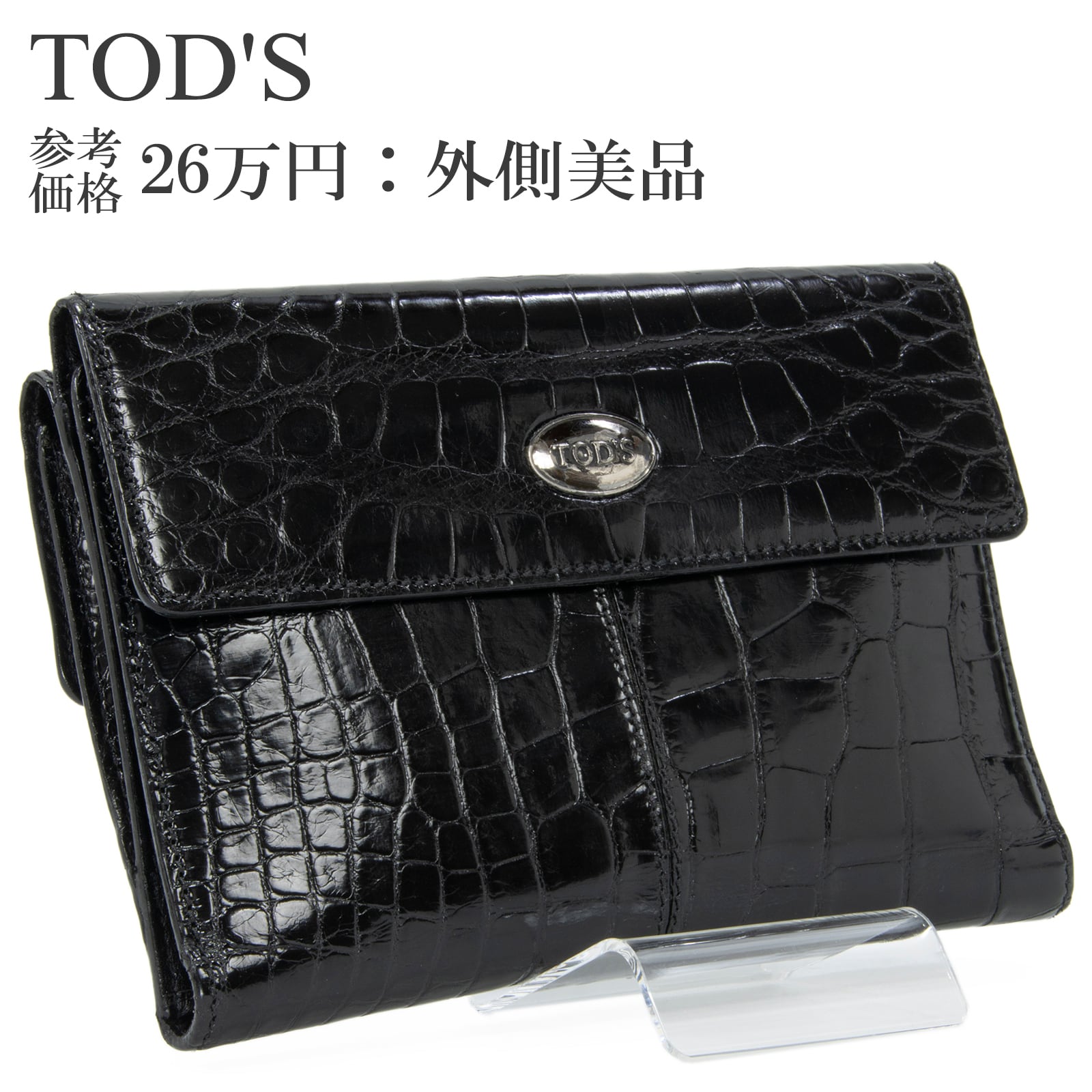 本物 送料無料 トッズ 短財布 二つ折り財布 メンズ レディース クロコダイル 黒 ブラック 珍しい 最高級 ワニの革 光沢 ロゴ おしゃれ C245