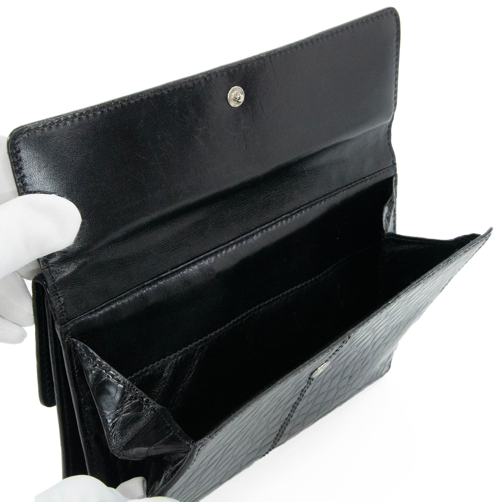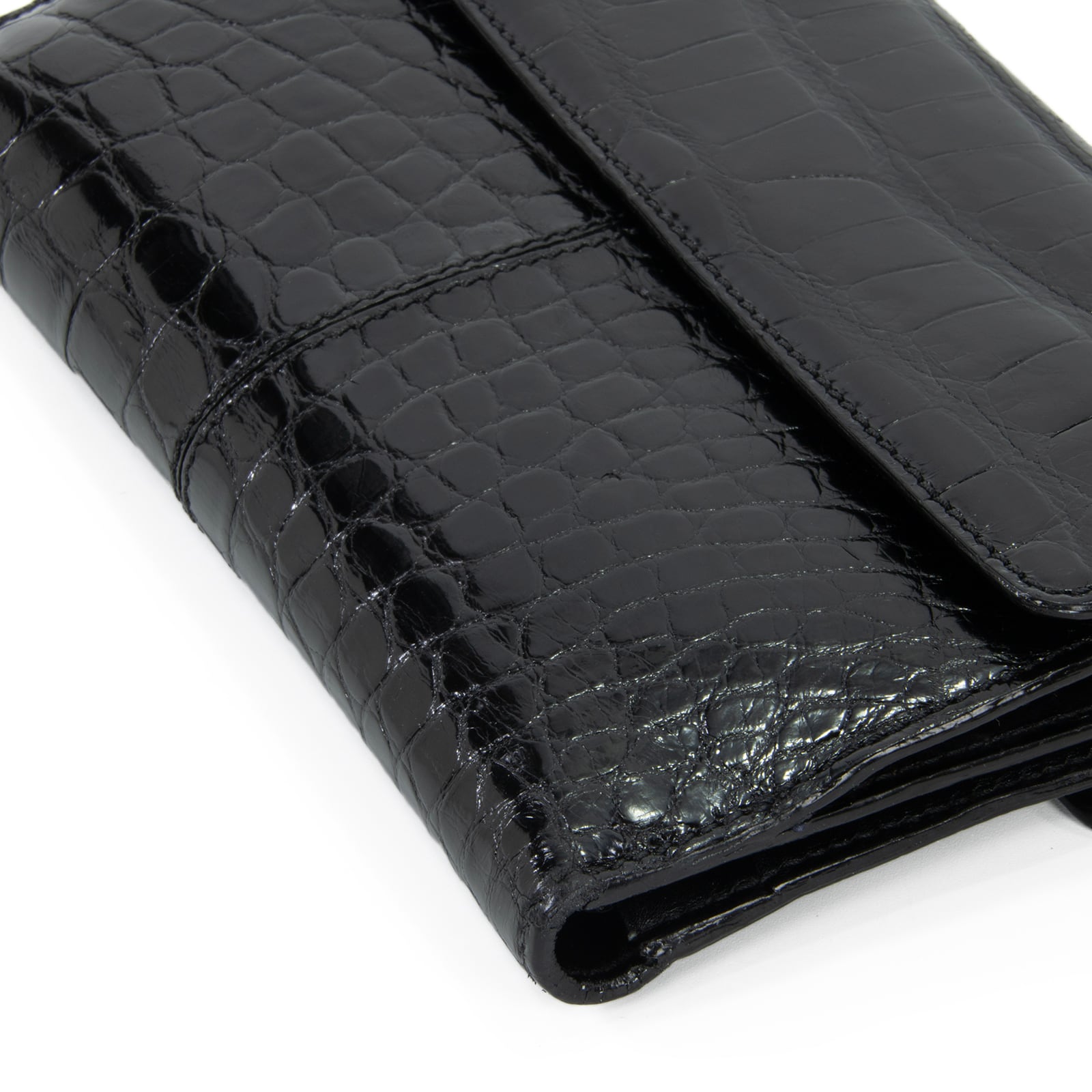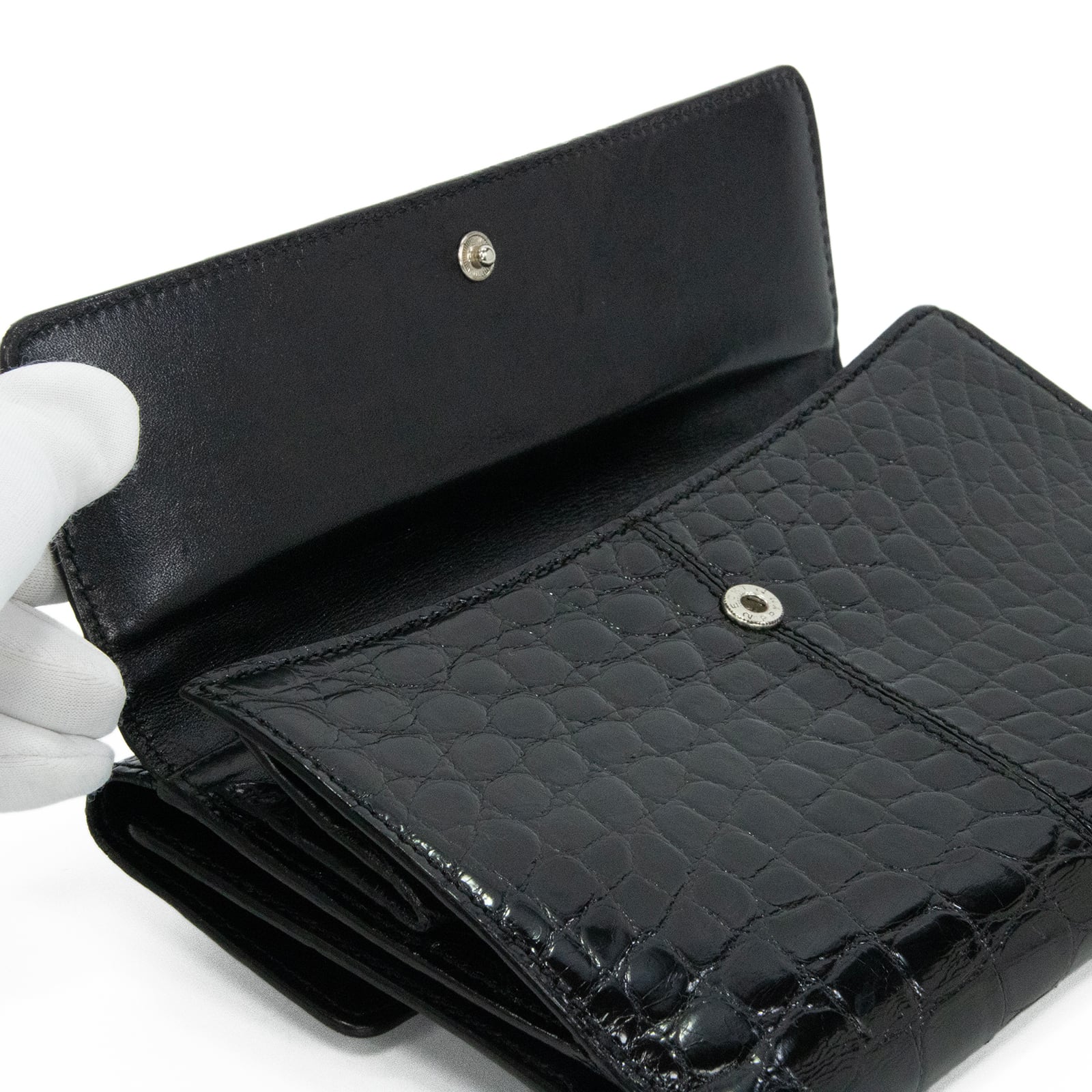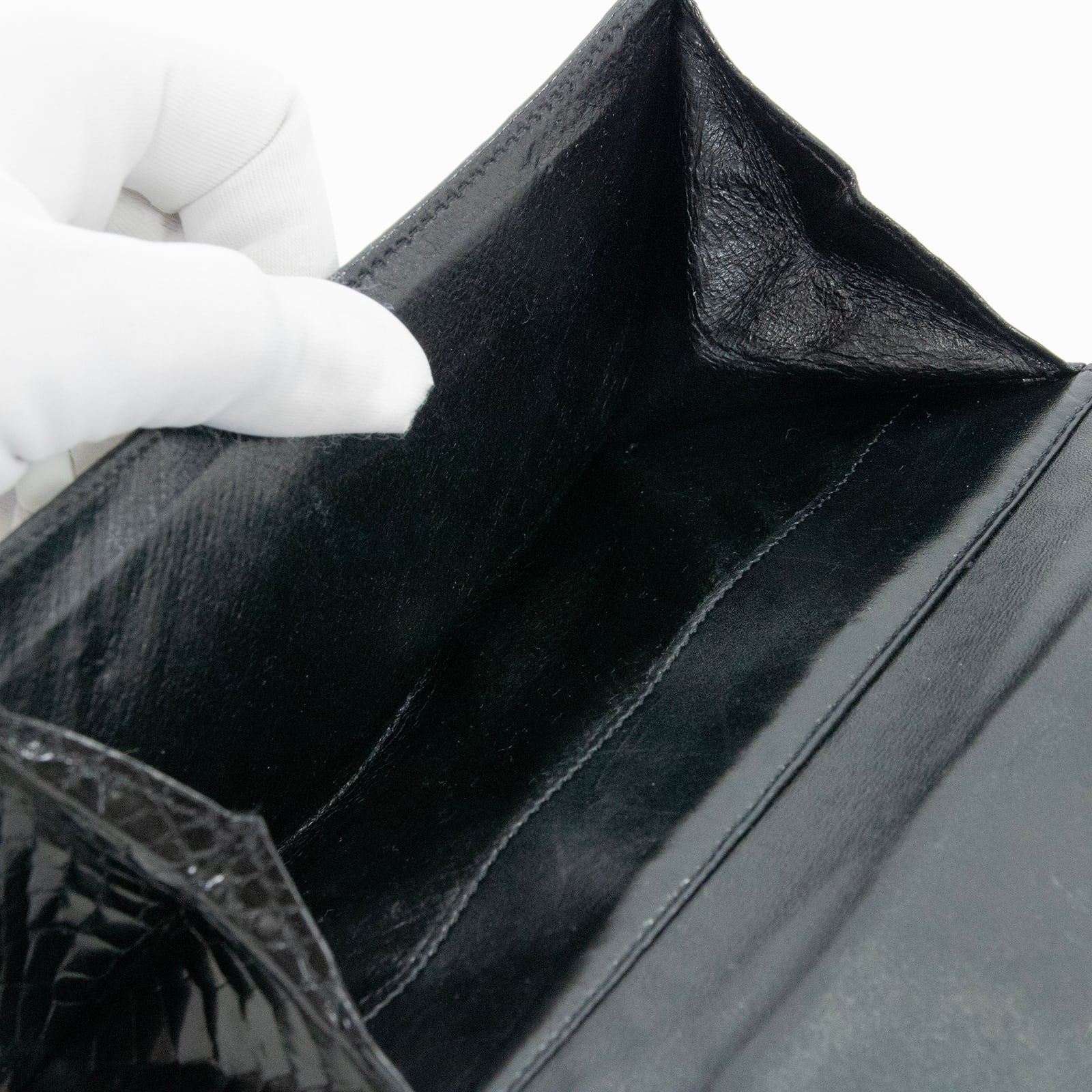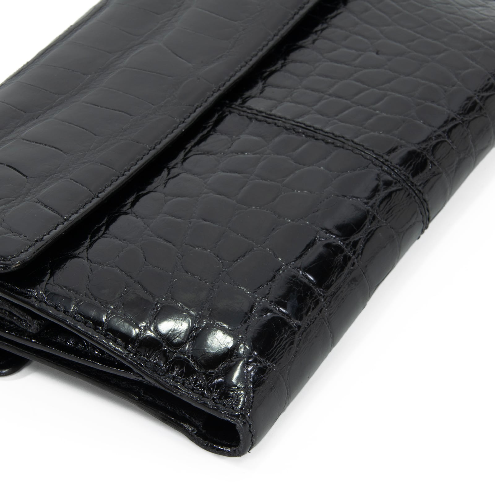 シャイニングクロコダイルの煌びやかな光沢が、手元を華やかに彩っております。