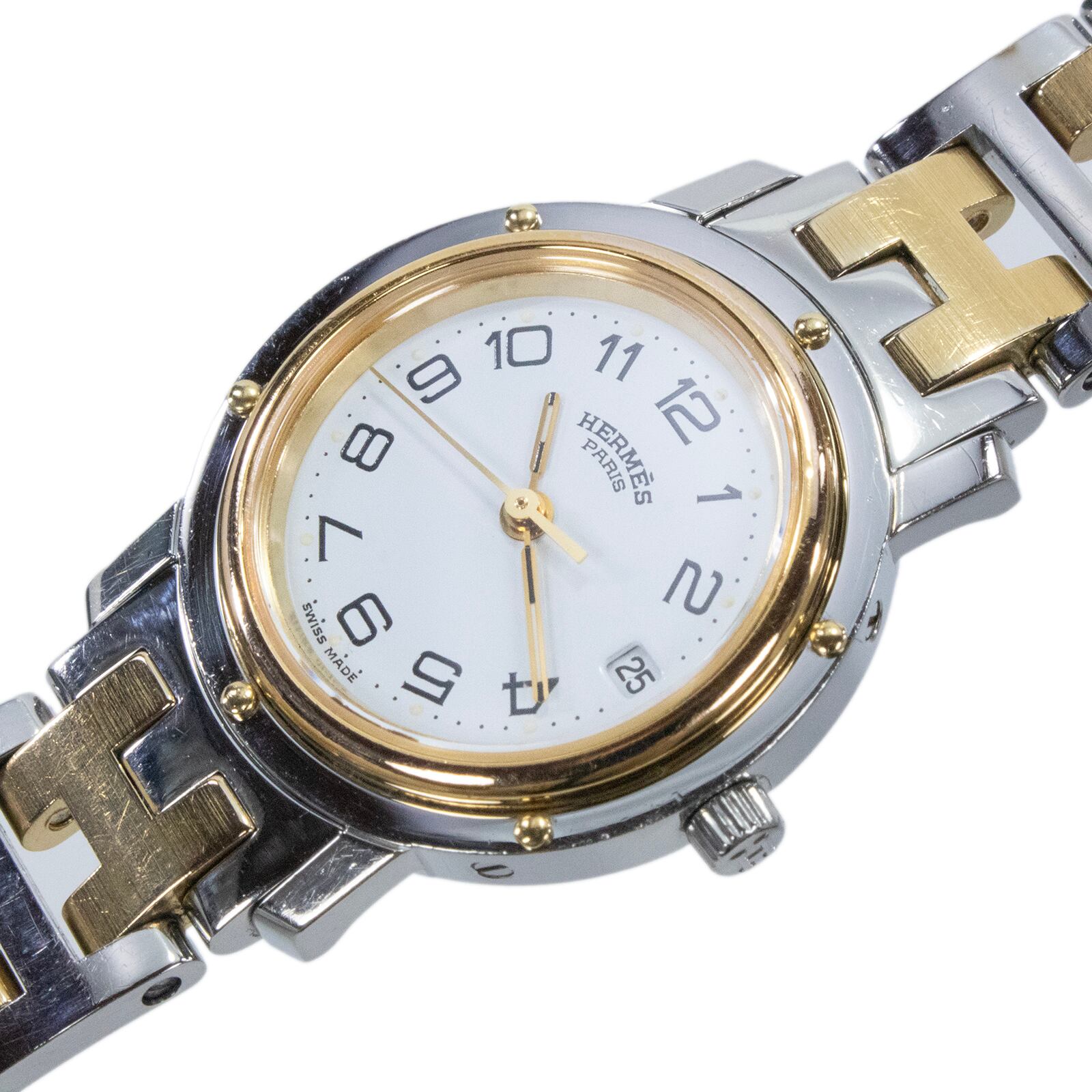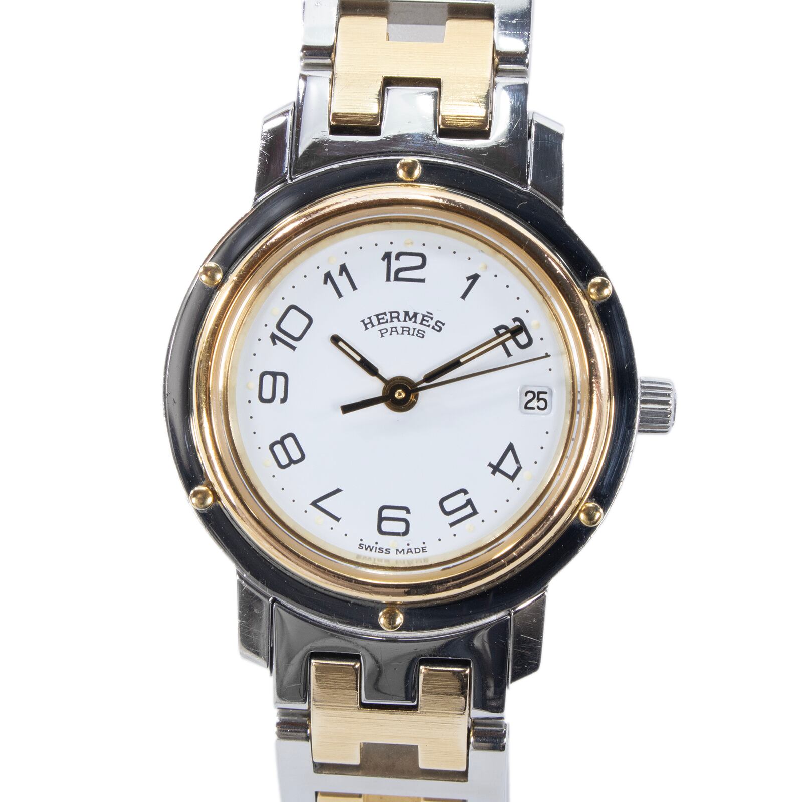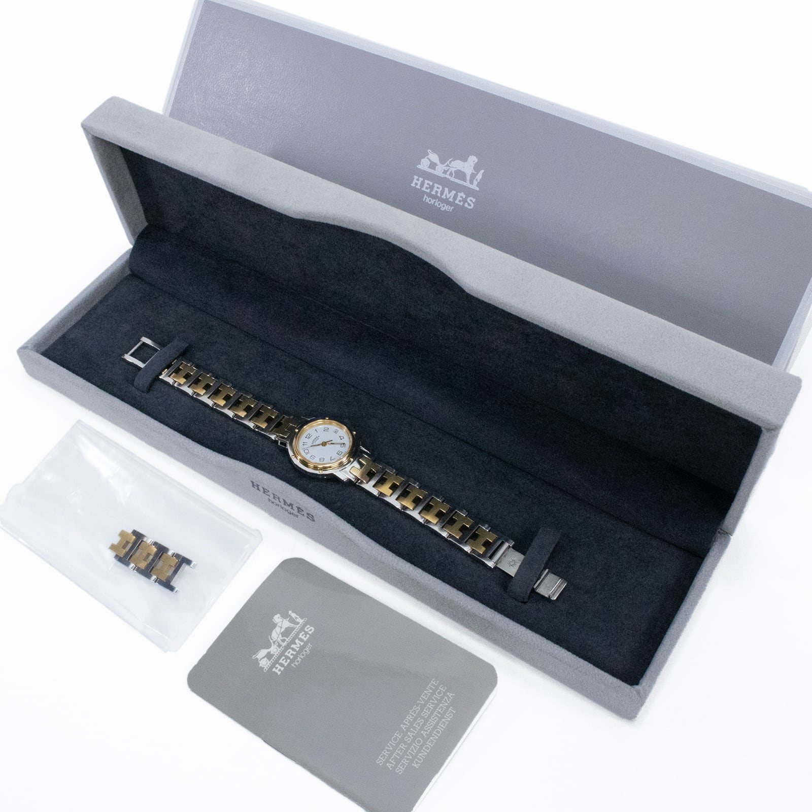 稼働品 送料無料 エルメス 腕時計 クォーツ 3針 レディース クリッパー CL3.240 白 H文字ベルト コンビカラー 小さめ ロゴ 人気 綺麗 X478