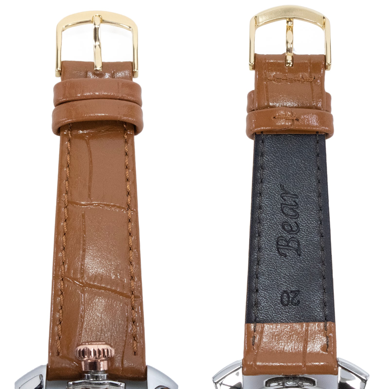 ケース・バンドの素材:ステンレススチール・クロコダイル型押しレザー