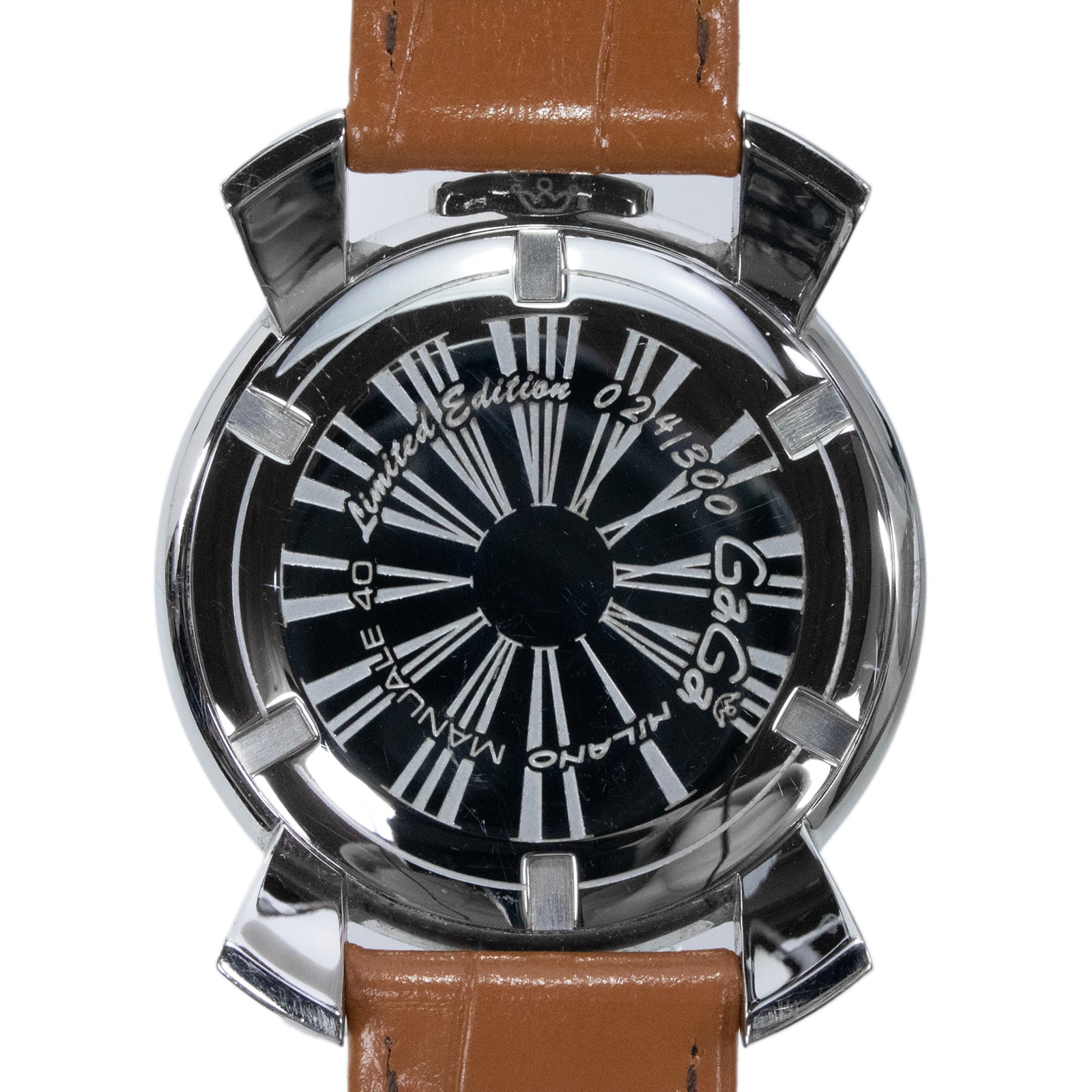 こちらは、世界限定300本という希少な生産数でリリースされた、ガガミラノのマヌアーレ40・腕時計でございます。
