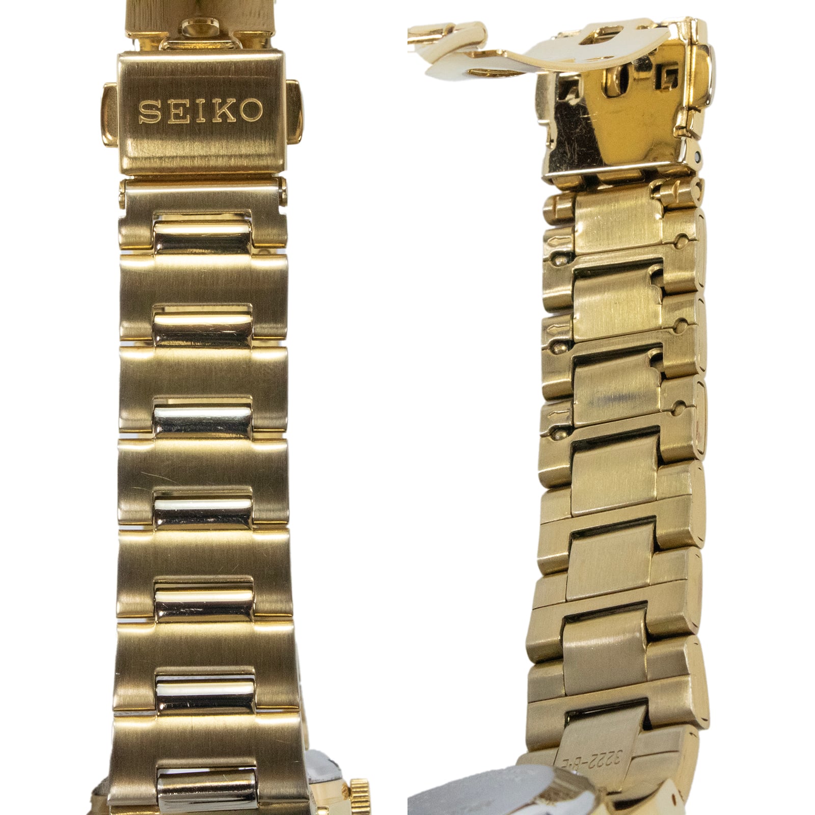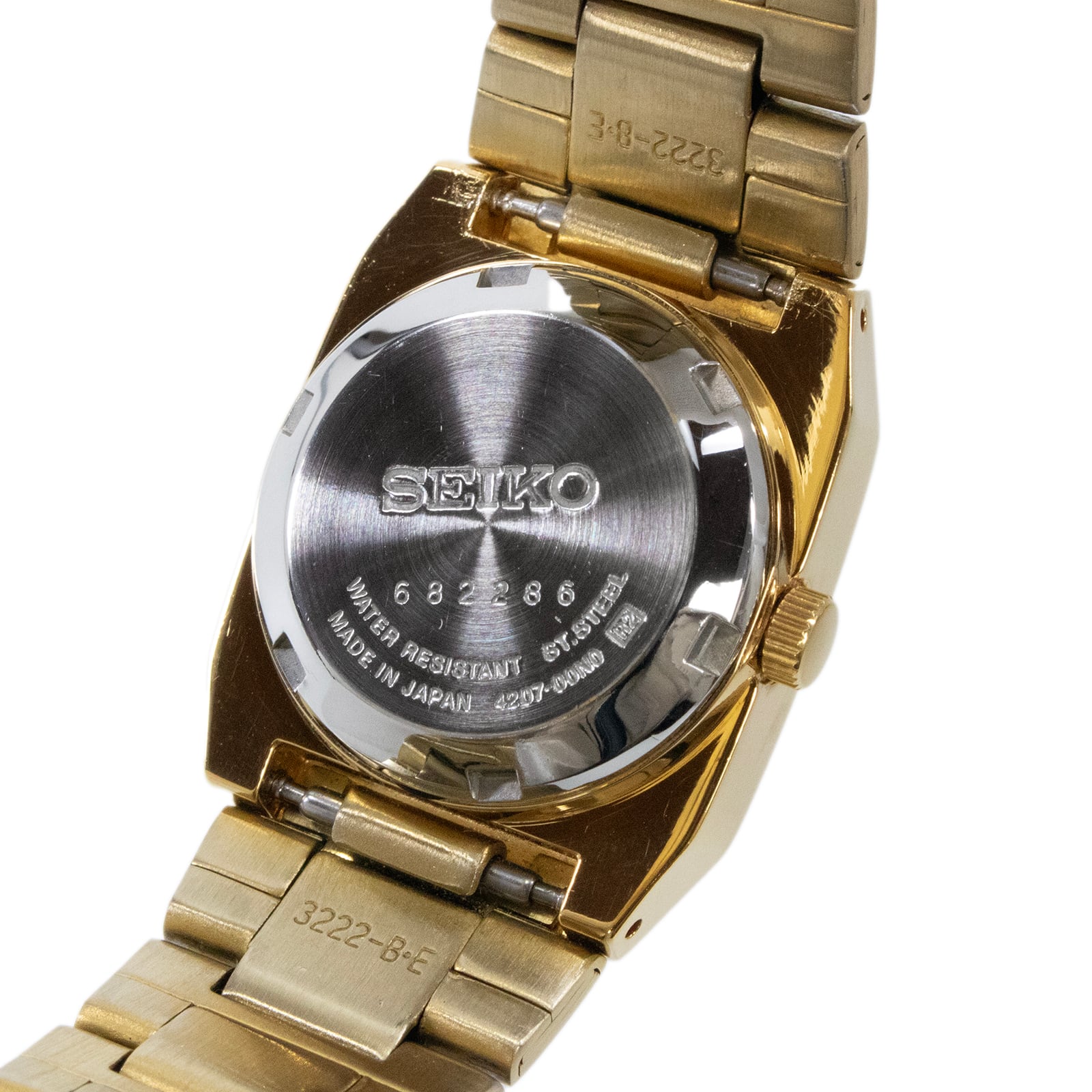 こちらは、手元で圧倒的な輝きを放つ、セイコーのオールゴールドカラー・腕時計でございます。