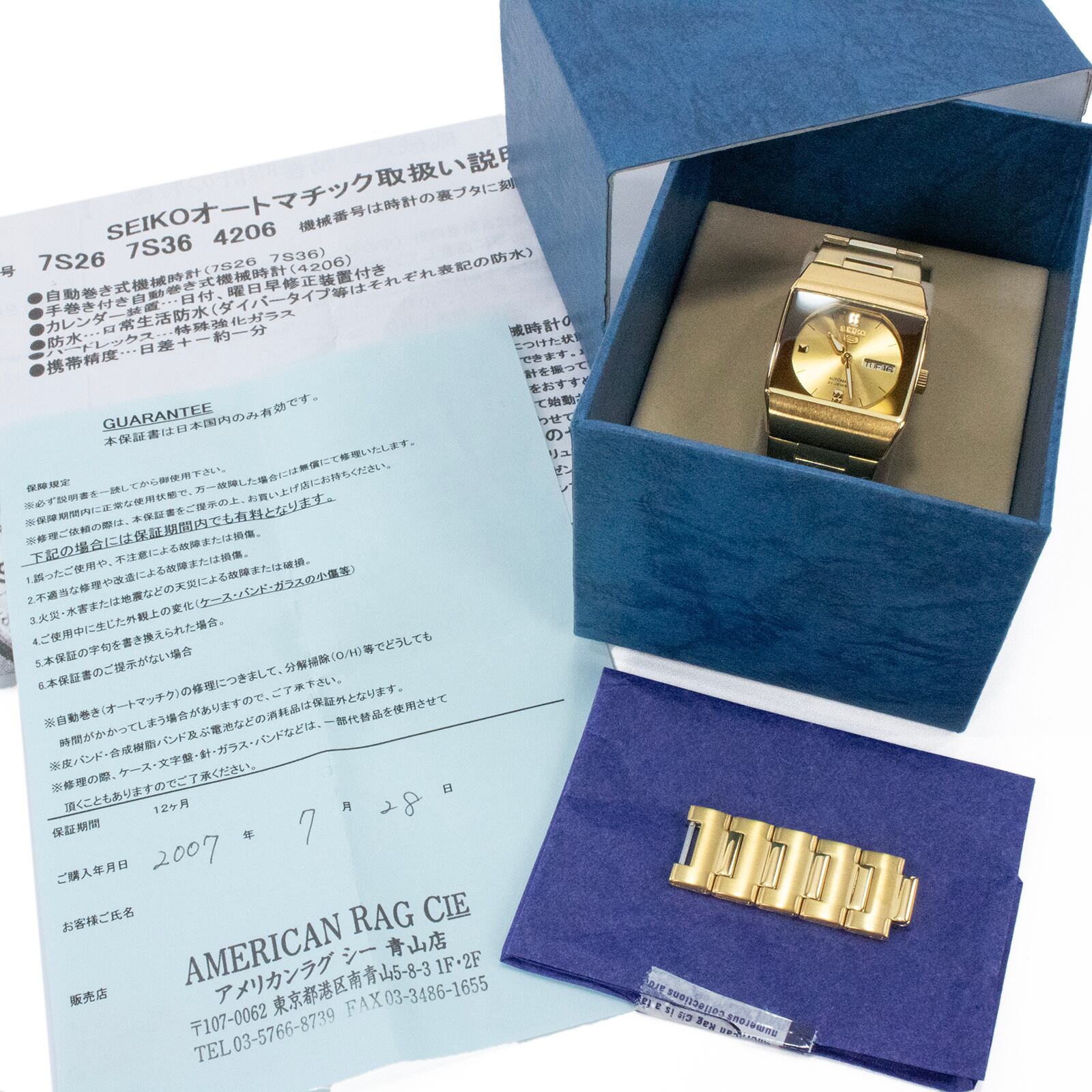 稼働品 送料無料 セイコー 腕時計 自動巻き レディース セイコー5ドレス SYM632J1 1207-00N0 ゴールド スクエア Y2K 派手 ロゴ 綺麗 X481