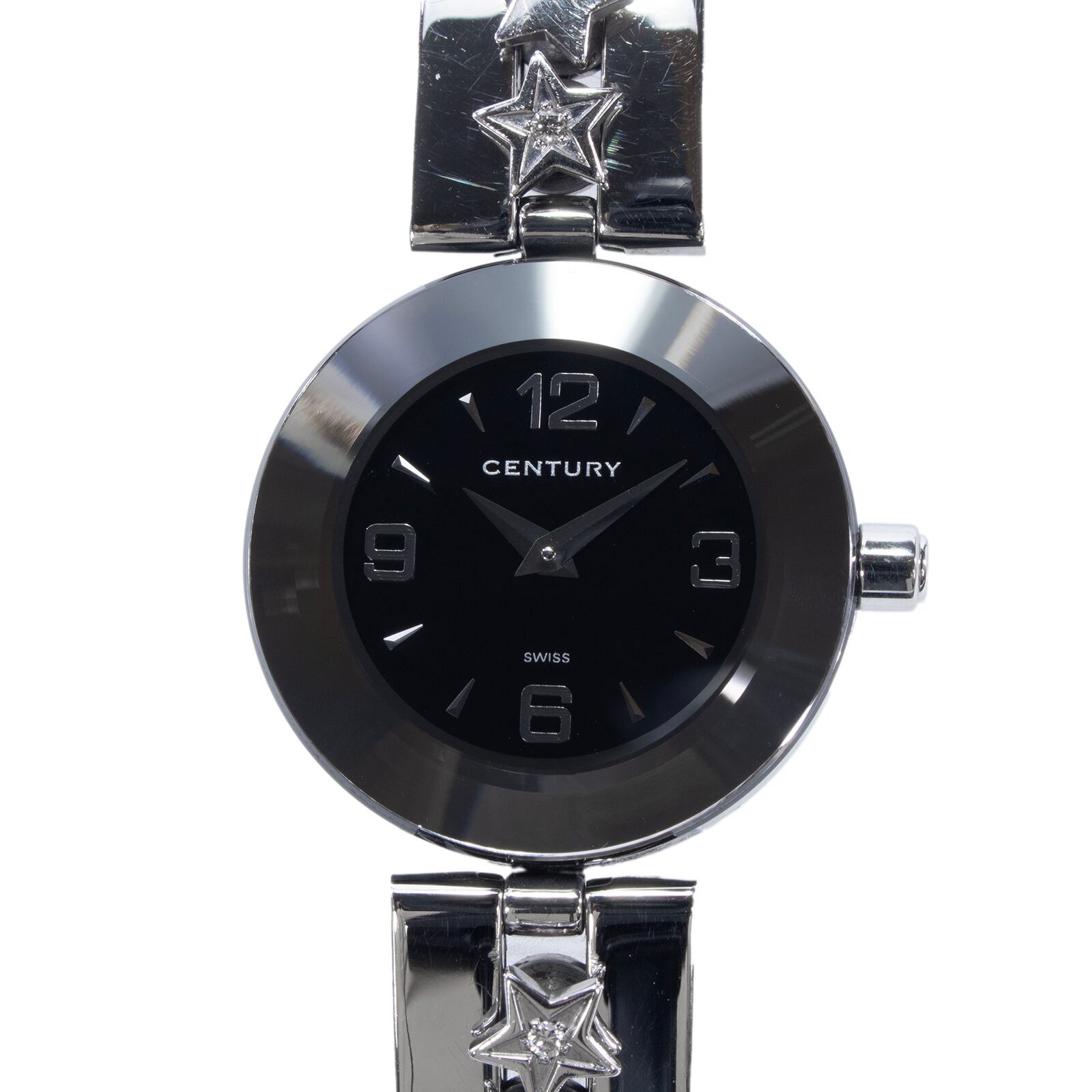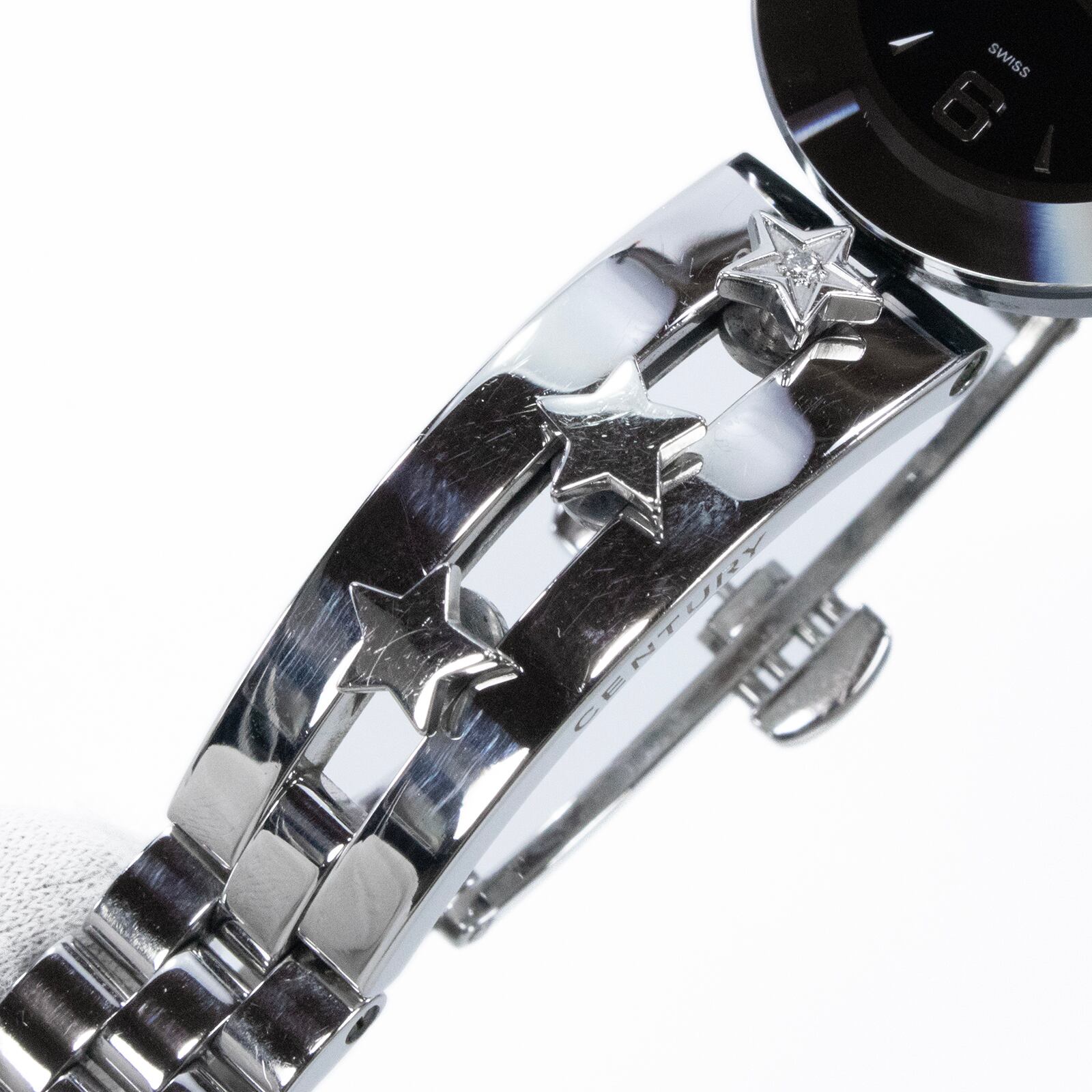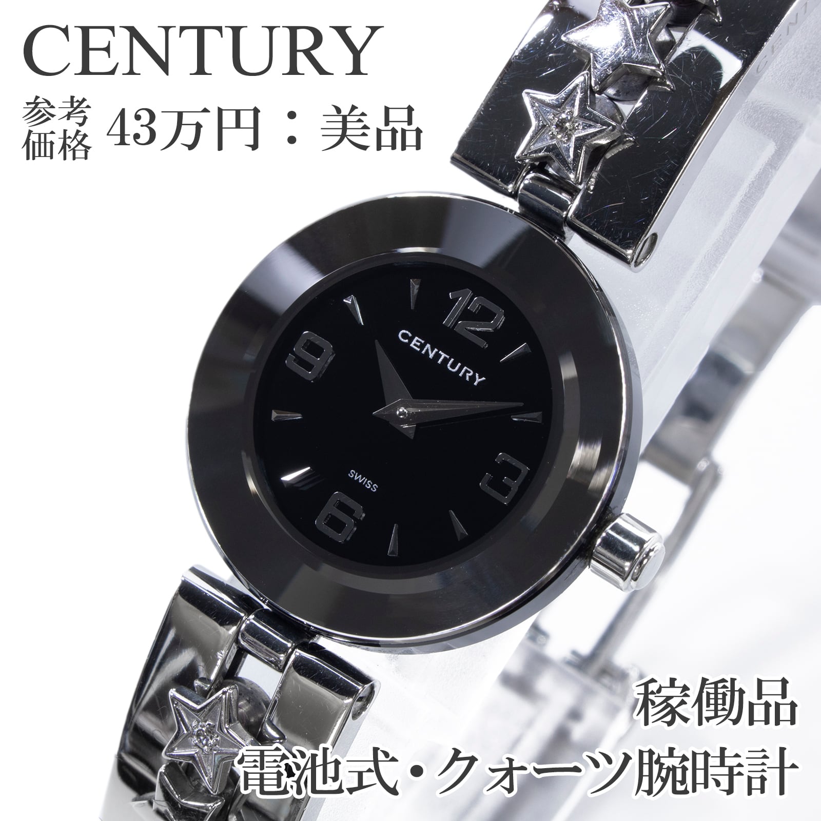 稼働品 送料無料 センチュリー 腕時計 クォーツ レディース タイムジェム 黒 2Pダイヤモンド 星 スター 薄い スリム 小さめ ロゴ 綺麗 X483
