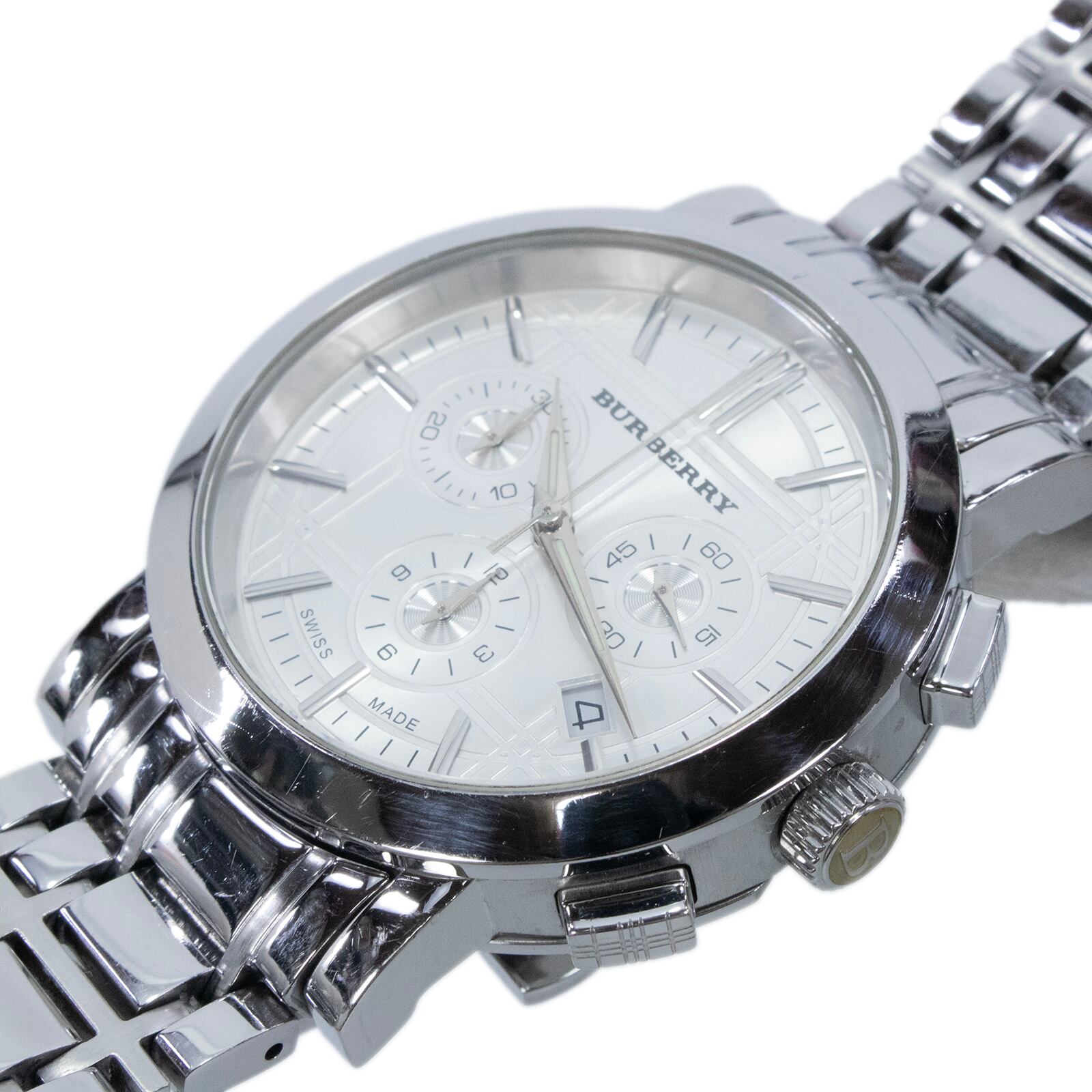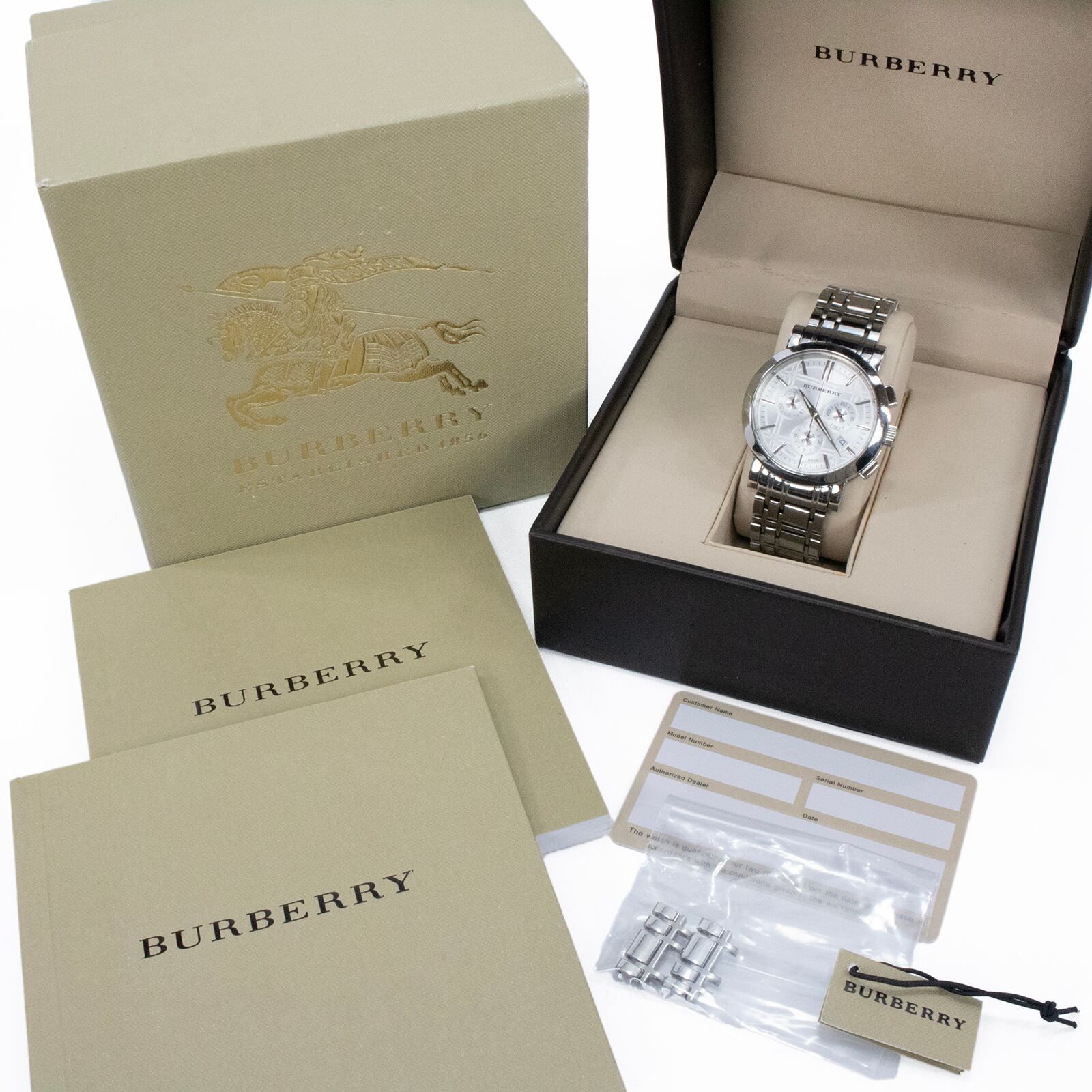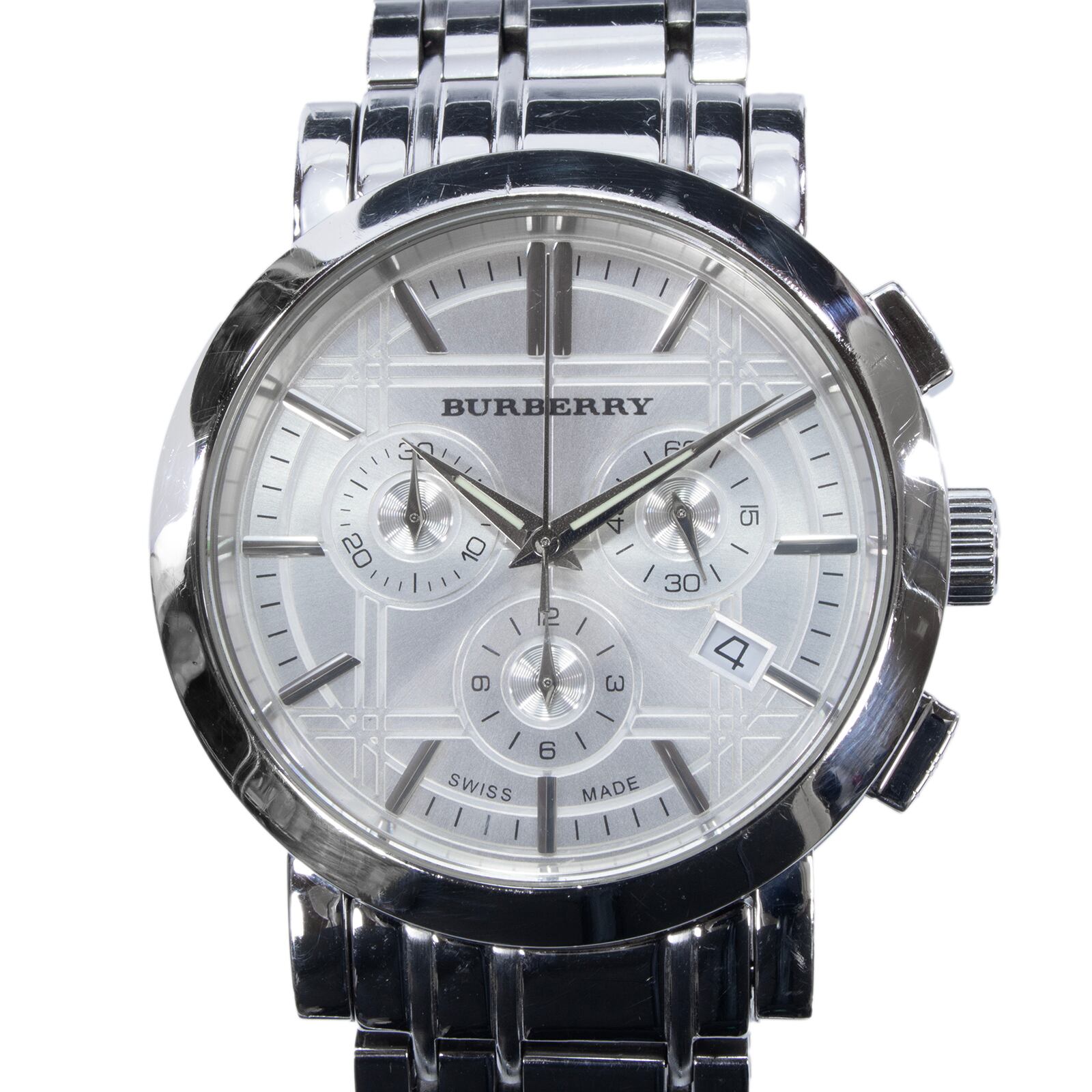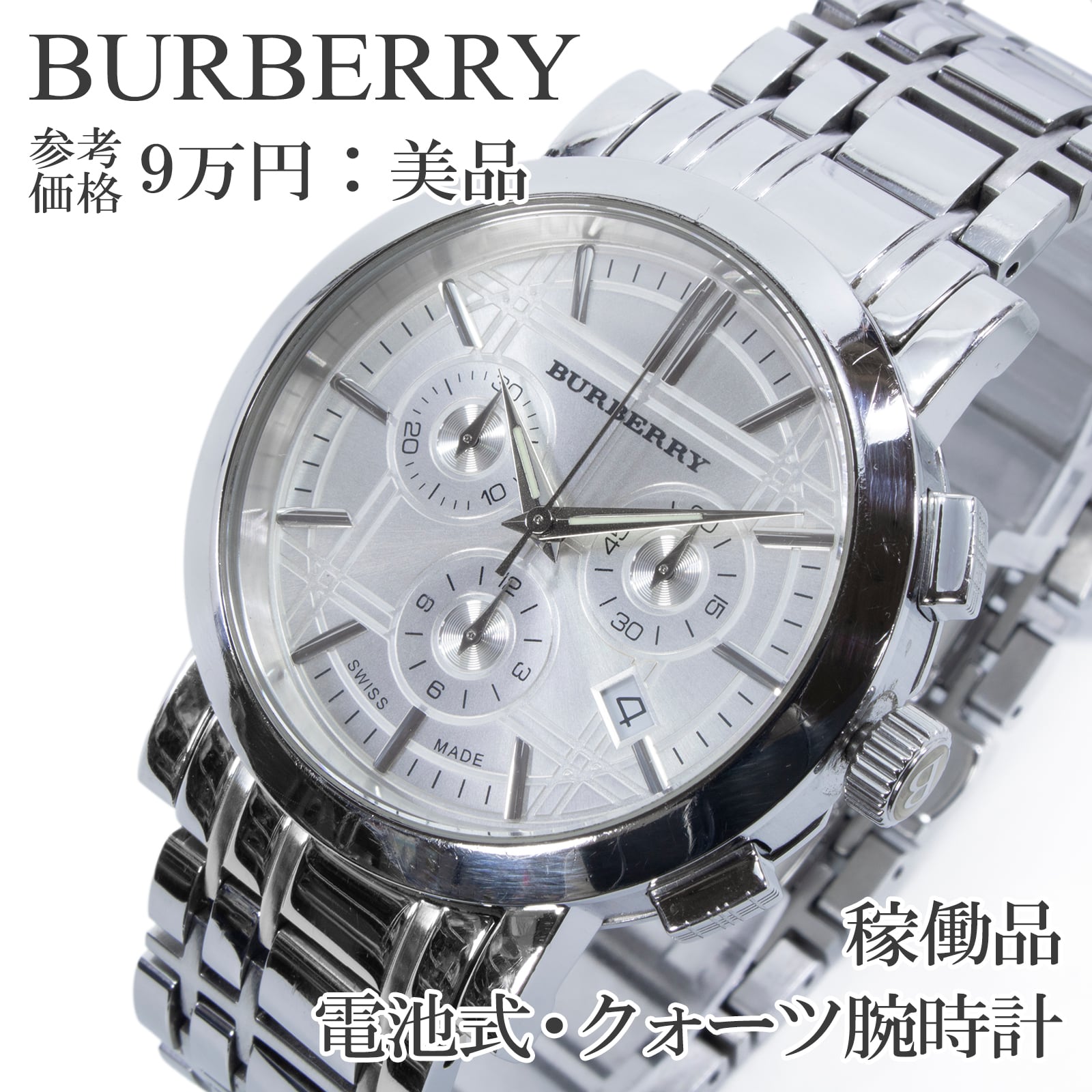 稼働品 送料無料 バーバリー 腕時計 クォーツ メンズ ヘリテージ BU1372 シルバー クロノグラフ 目立つ ロゴ ハイブランド 人気 綺麗 X485