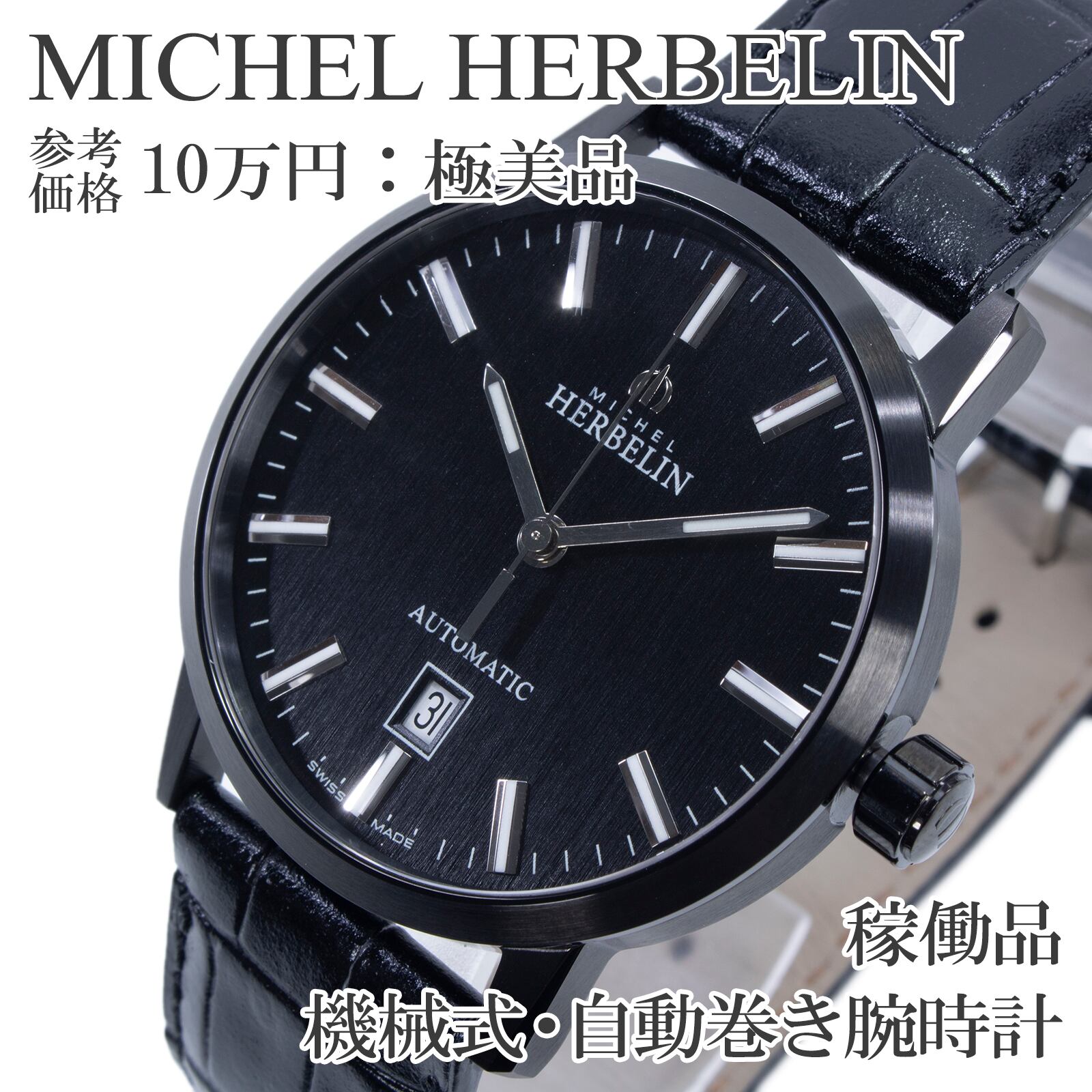 稼働品 送料無料 ミッシェルエルブラン 腕時計 自動巻き メンズ シティオートマティック 1669/14 黒 ブラック 裏スケルトン ロゴ 綺麗 X487