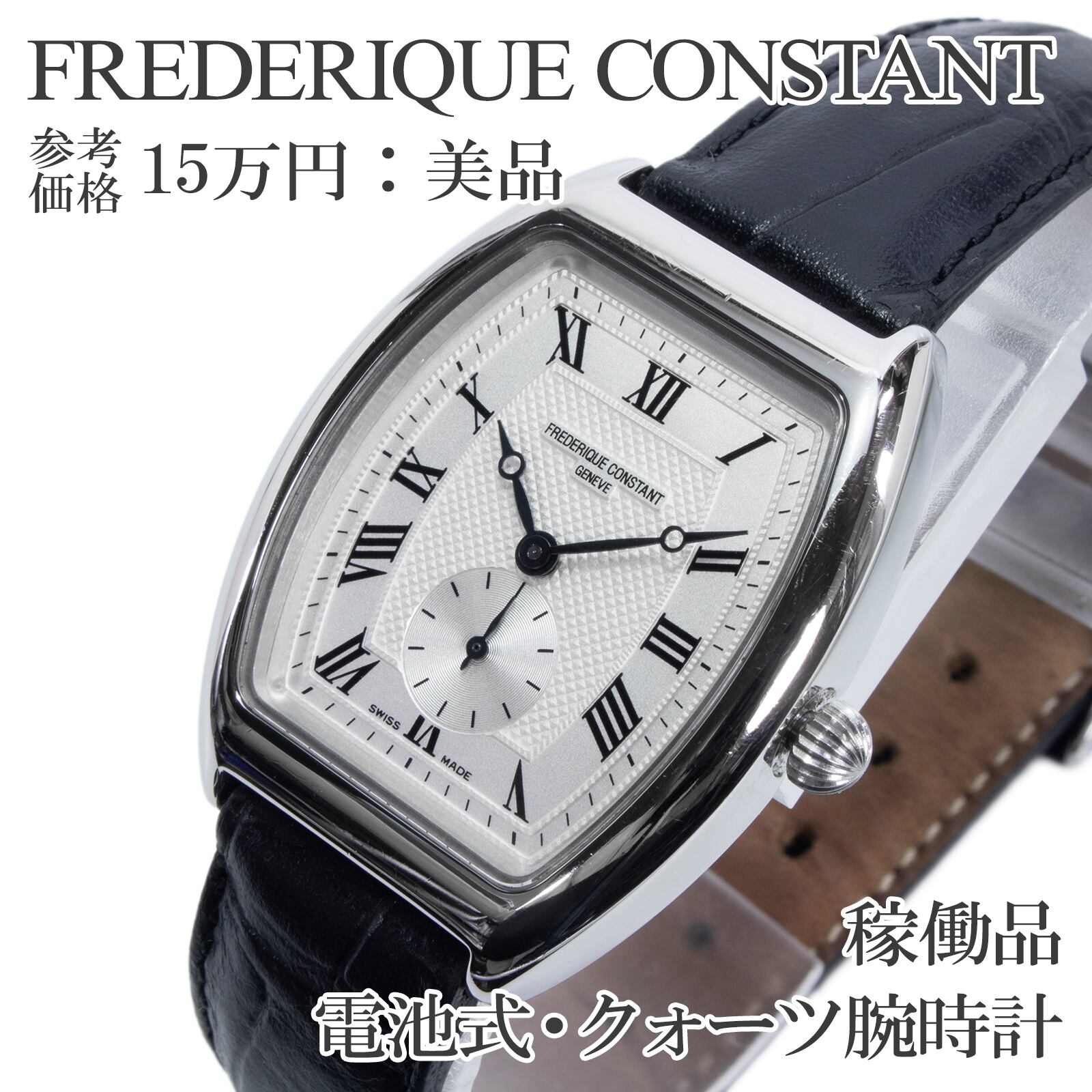 稼働品 送料無料 フレデリックコンスタント 腕時計 クォーツ メンズ クラシック アールデコ シルバー トノー型 ロゴ ビジネス 綺麗 Q214