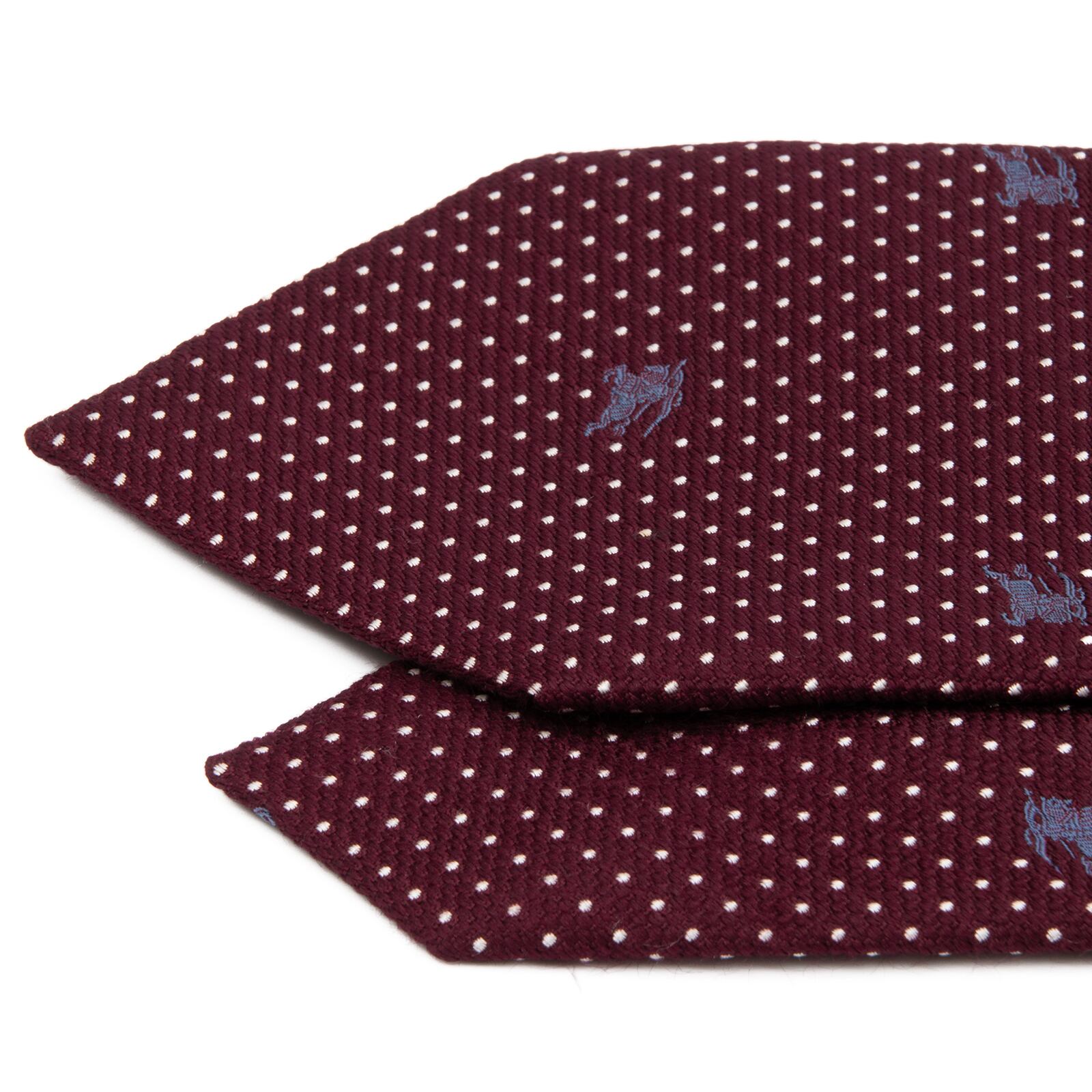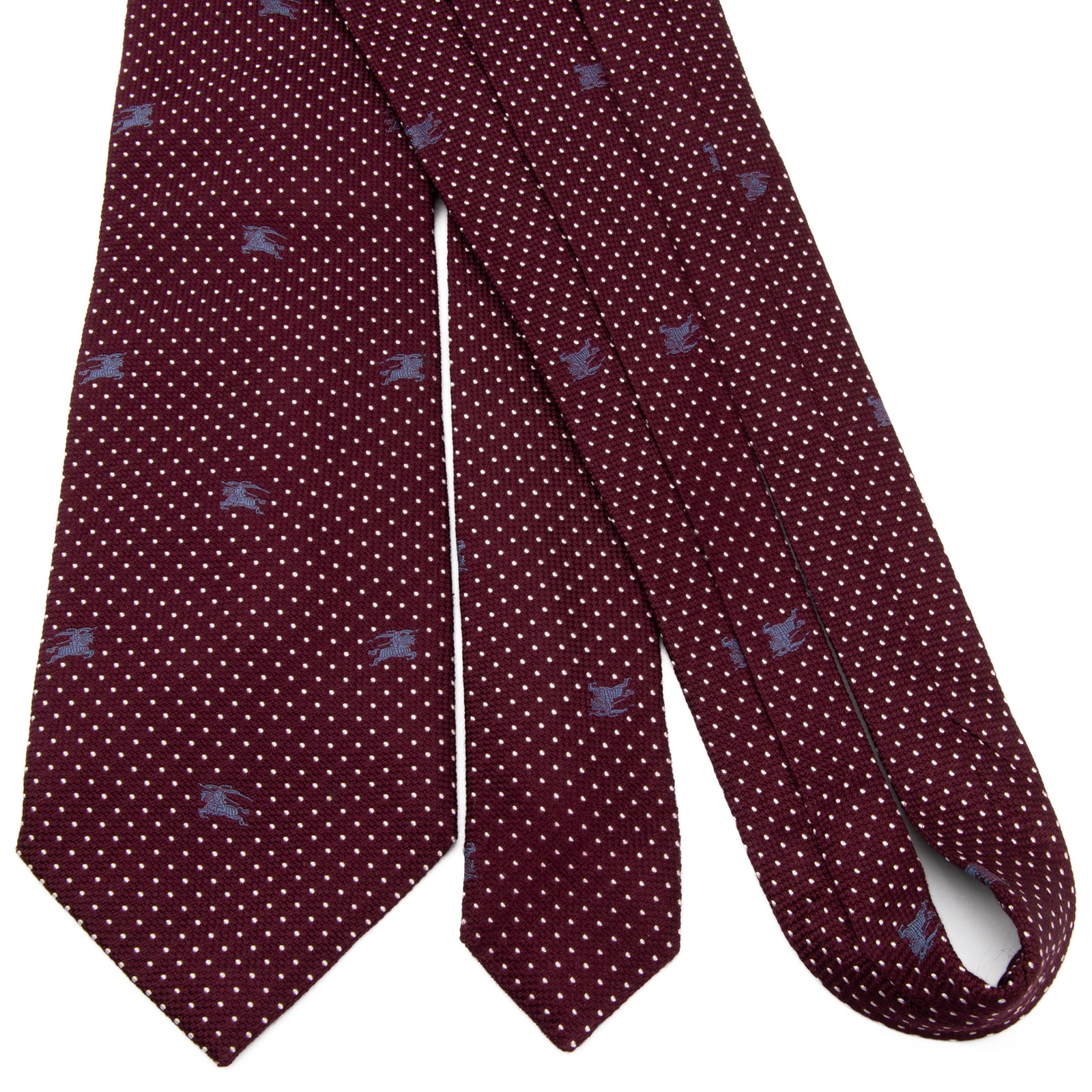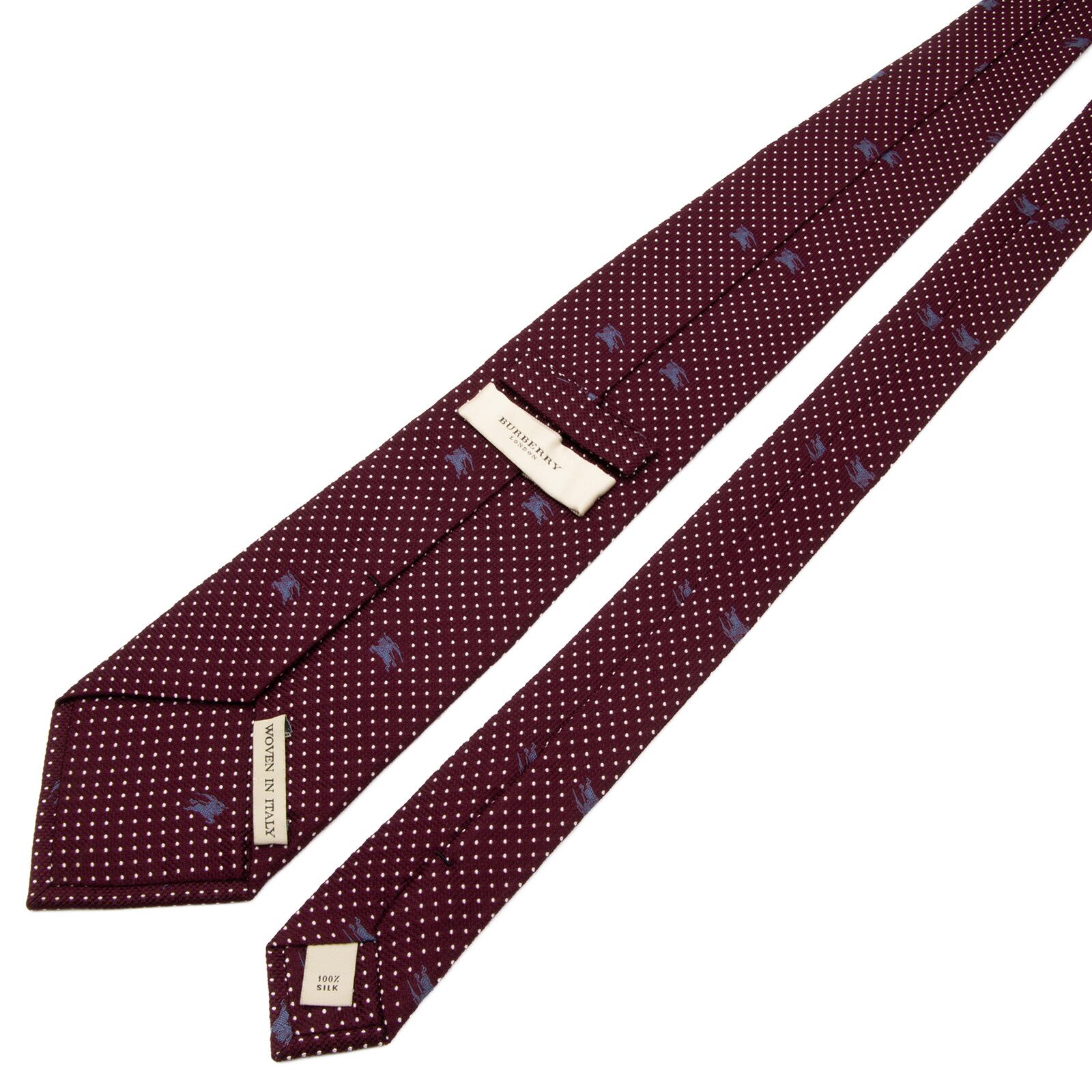 送料無料 バーバリー ネクタイ レギュラータイ ジャガード バーガンディー 白 小紋 ドット 光沢 馬 ホースロゴ ハイブランド イタリア P613