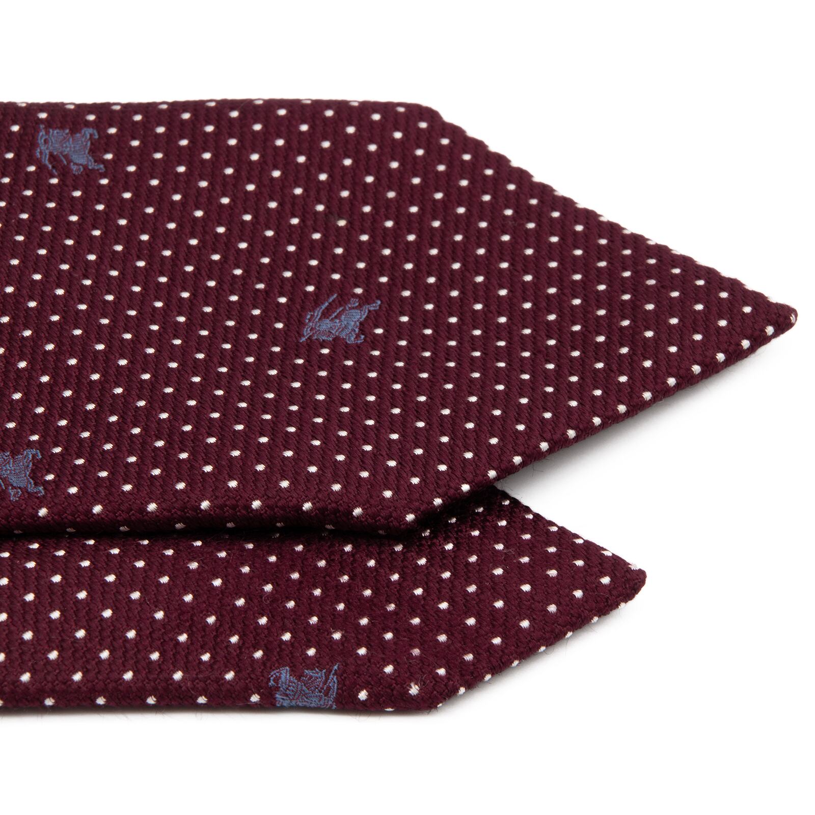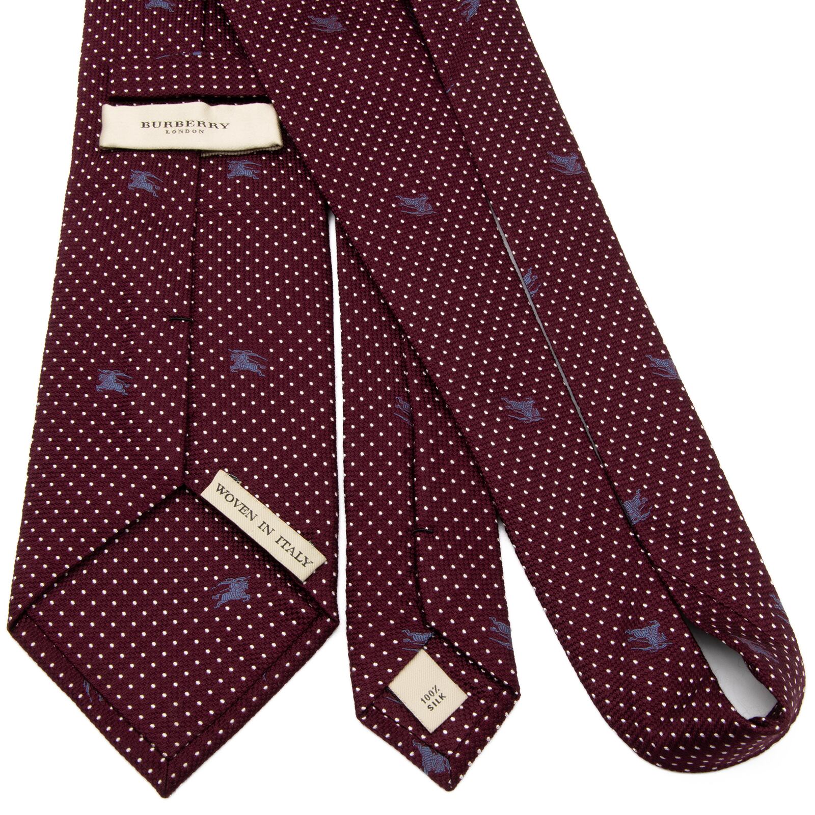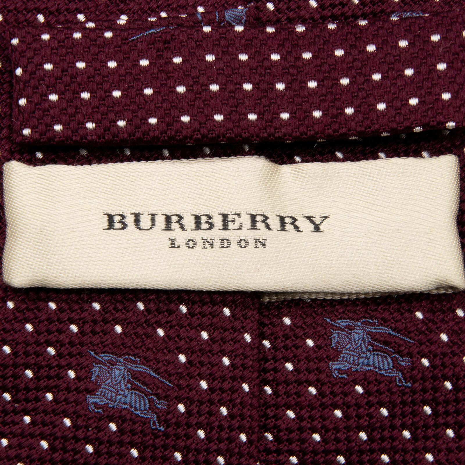送料無料 バーバリー ネクタイ レギュラータイ ジャガード バーガンディー 白 小紋 ドット 光沢 馬 ホースロゴ ハイブランド イタリア P613