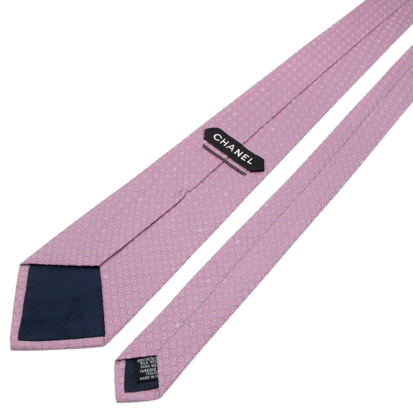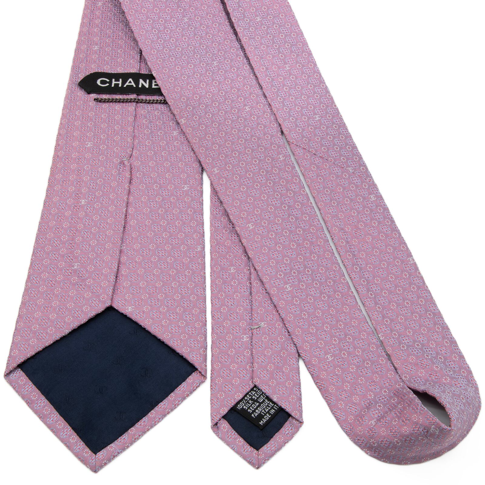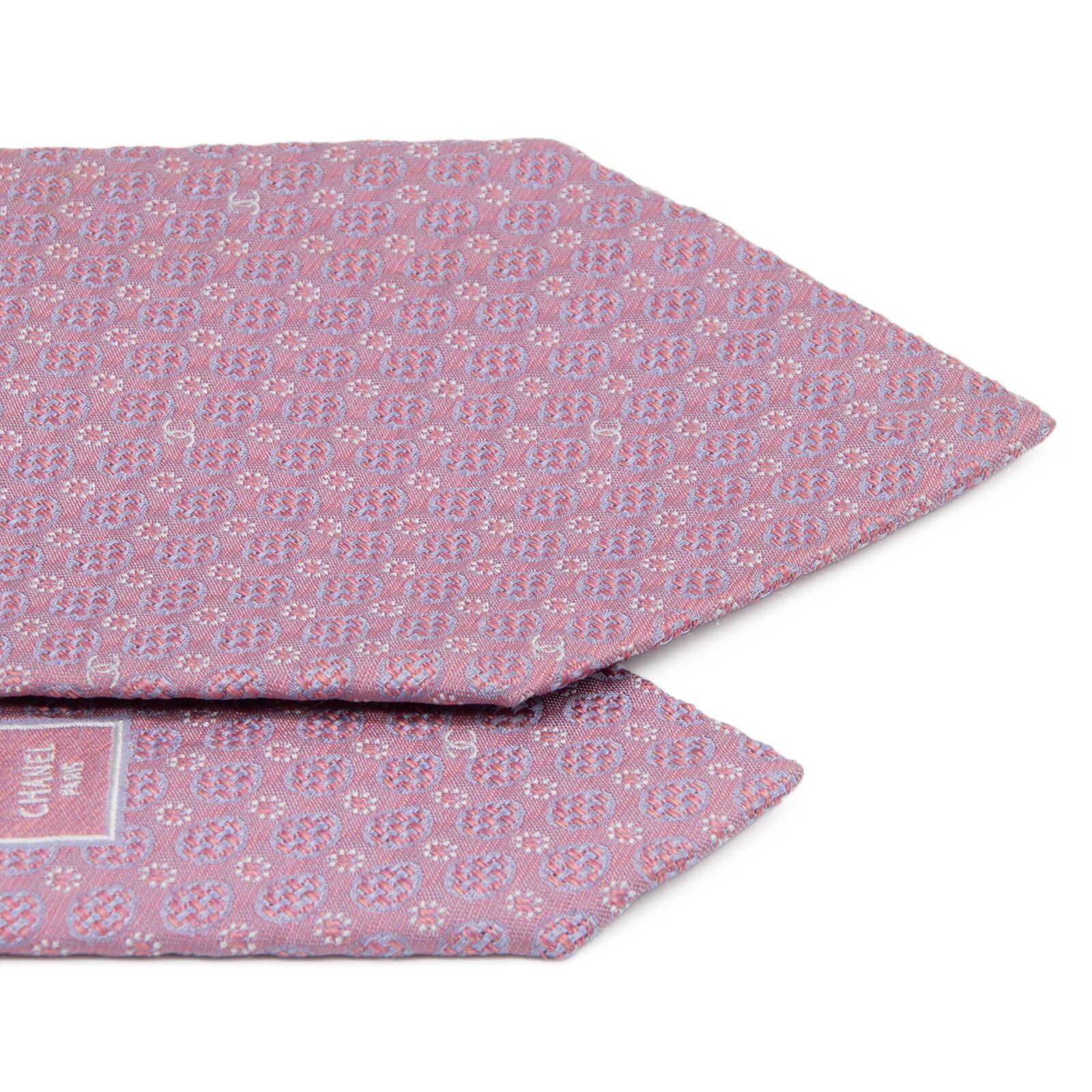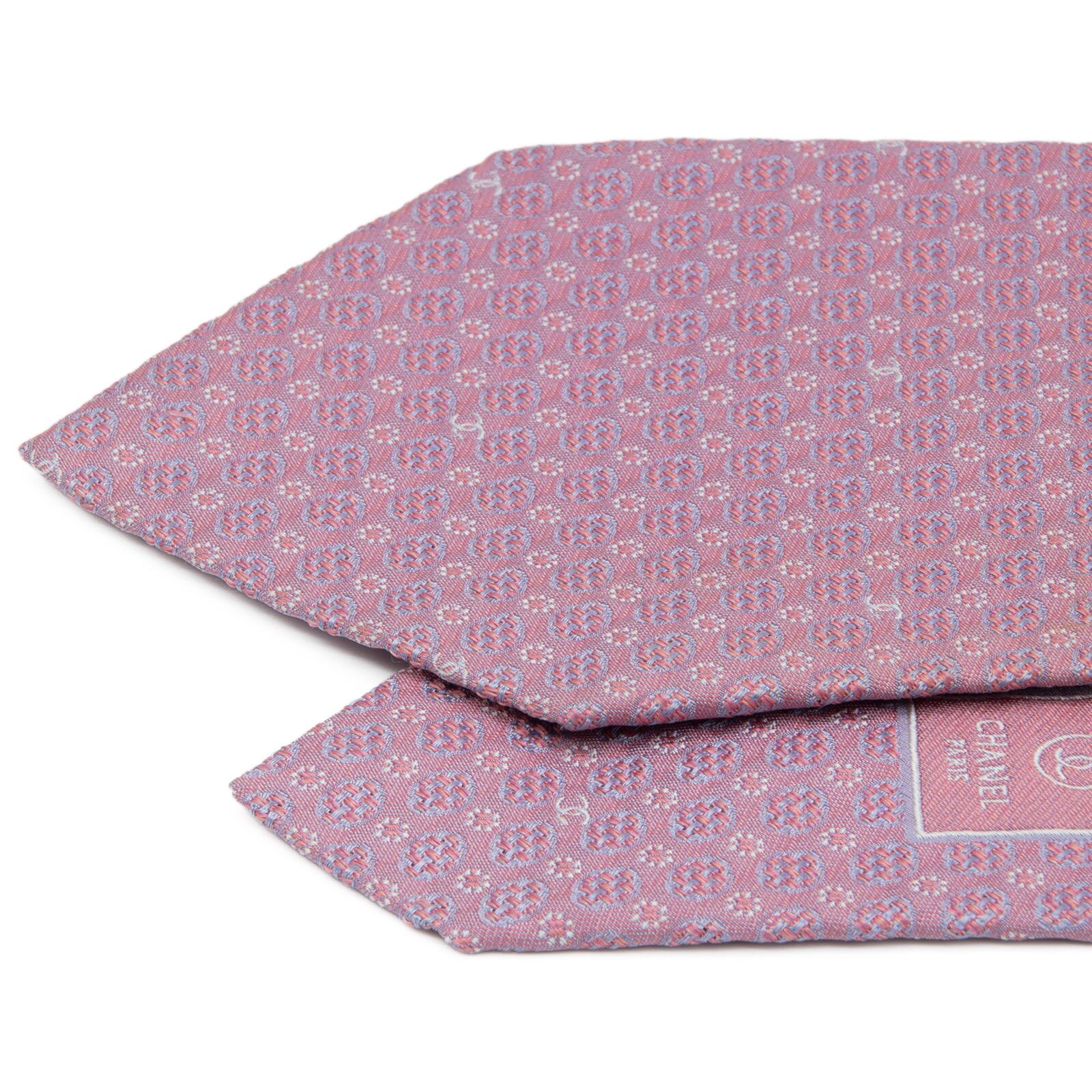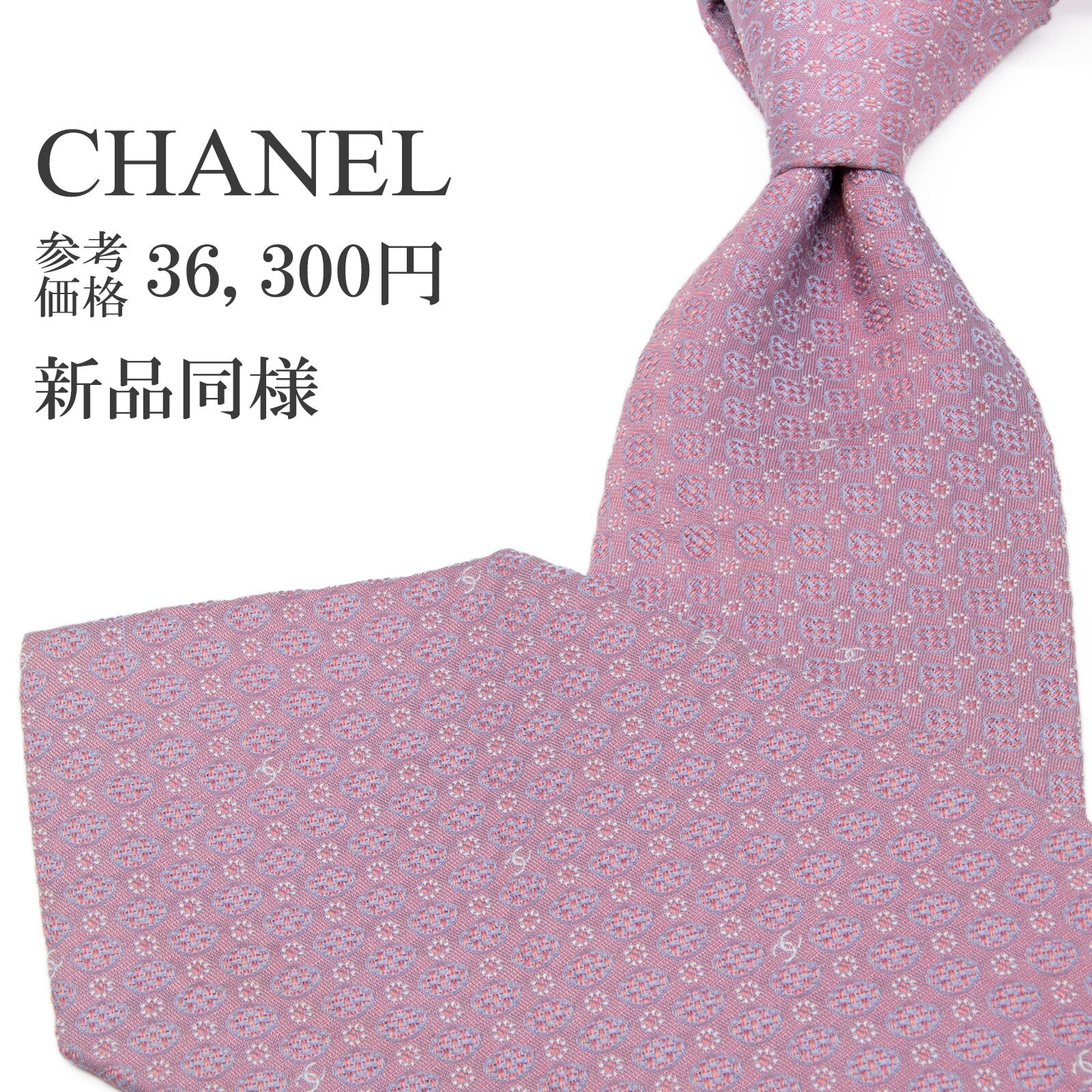新品同様 送料無料 シャネル ネクタイ ジャガード ピンク グレーブルー シルバー ドット Y2K 光沢 ココマーク チェーン ハイブランド P618
