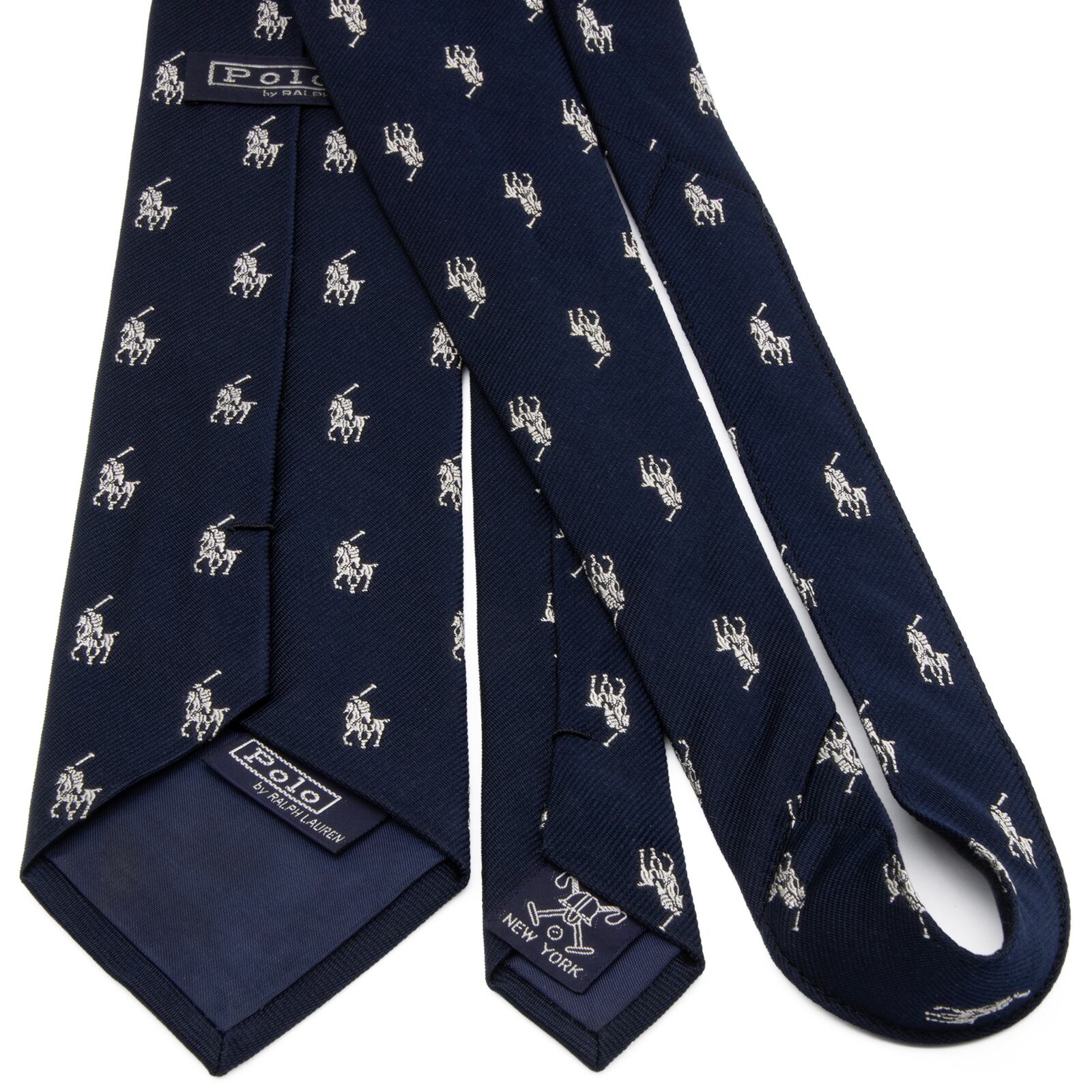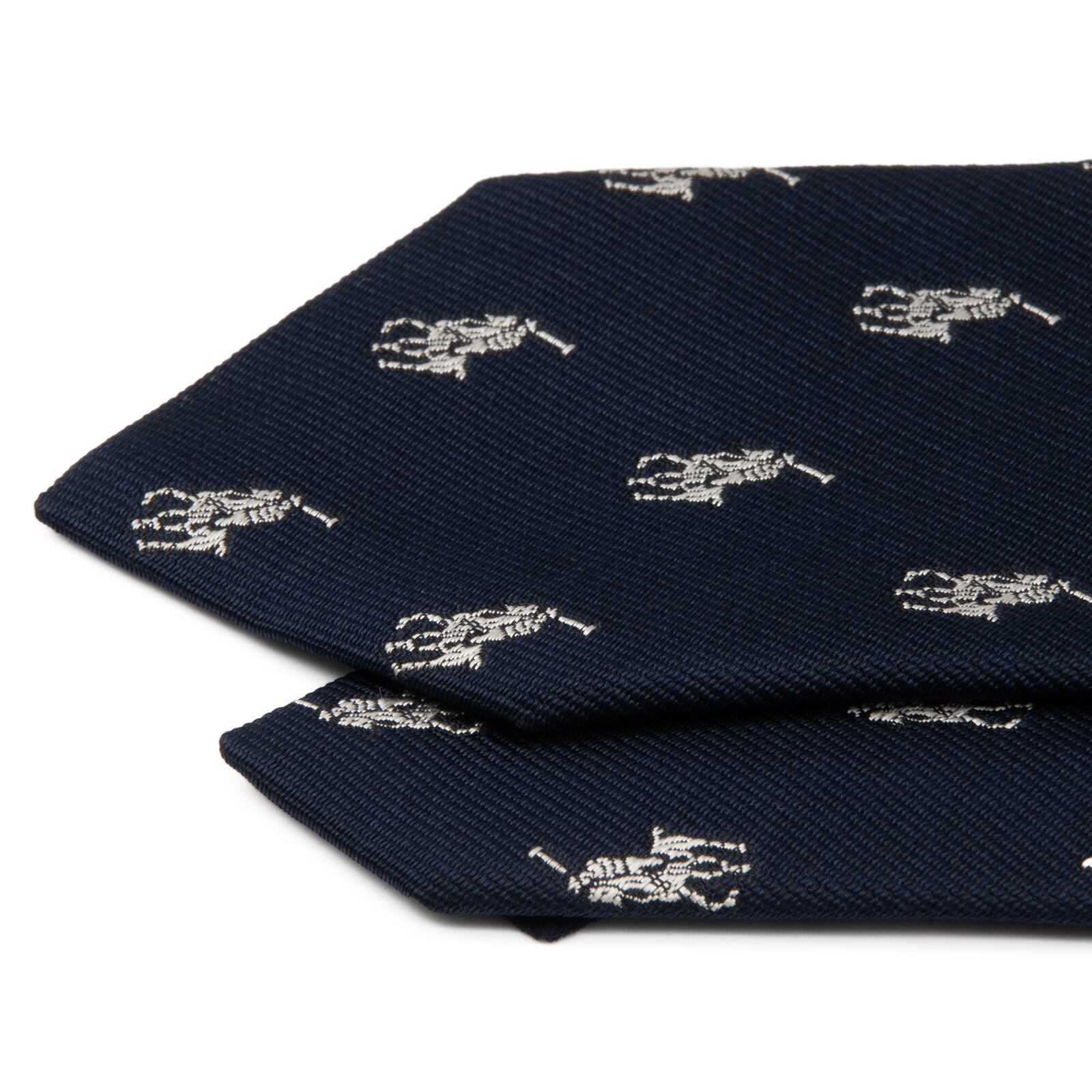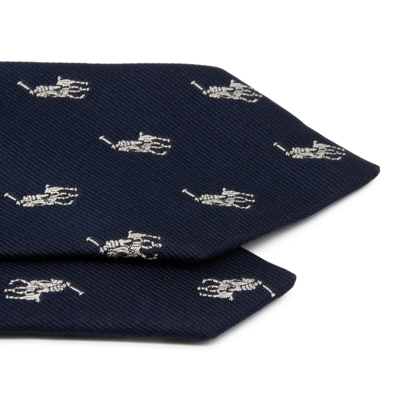 送料無料 ラルフローレン ネクタイ レギュラータイ ジャガード シルク ネイビーブルー シルバー 小紋 馬 ロゴ マーク ハイブランド P624