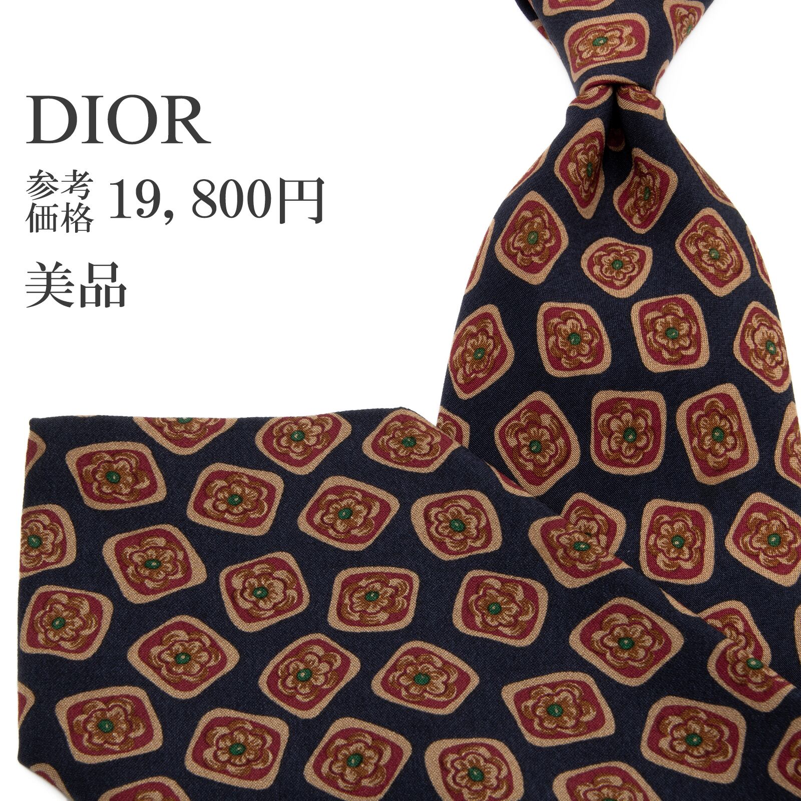 送料無料 ディオール ネクタイ レギュラータイ シルク ネイビーブルー 赤 ベージュ 茶色 緑 総柄 Y2K 花 フラワー ハイブランド 綺麗 P641