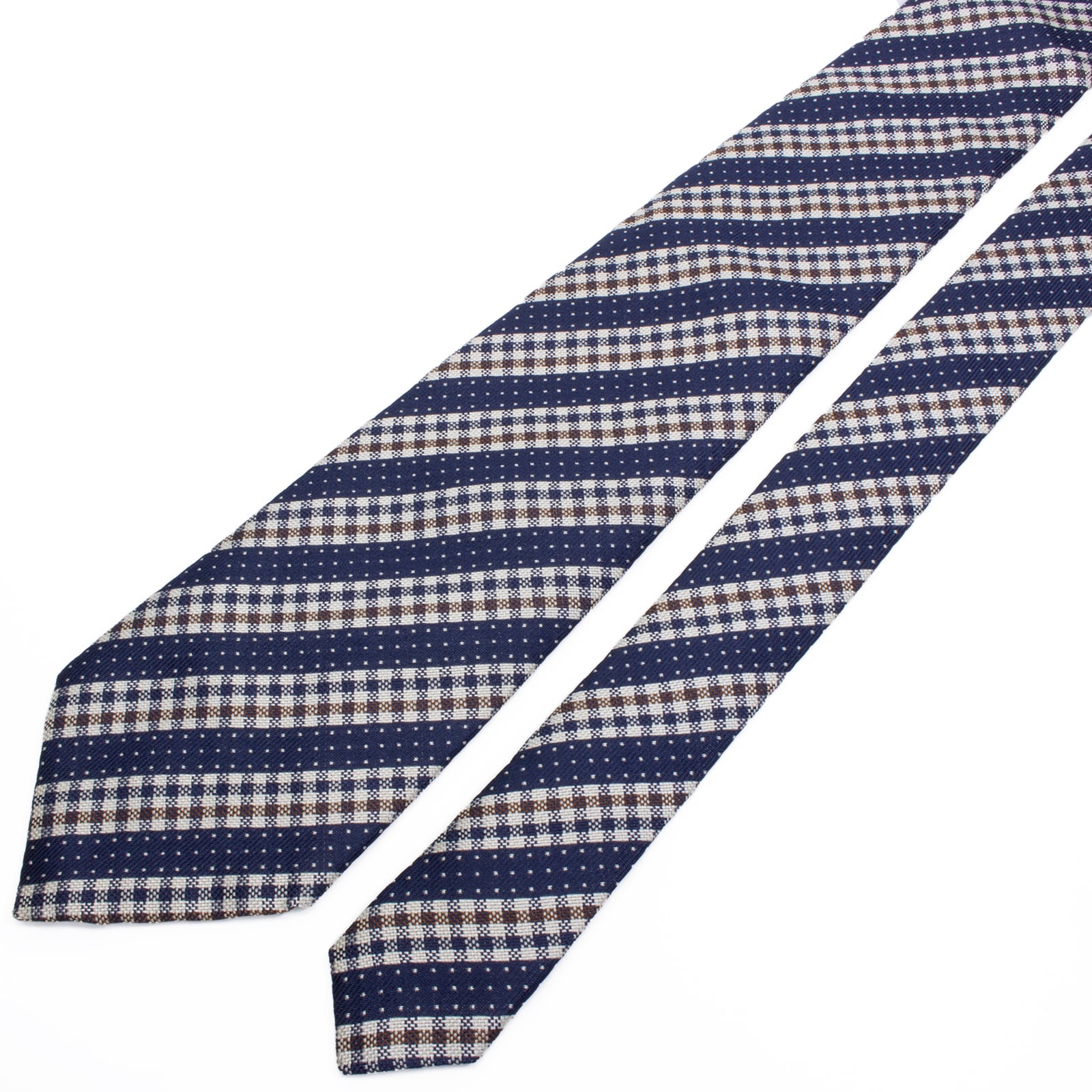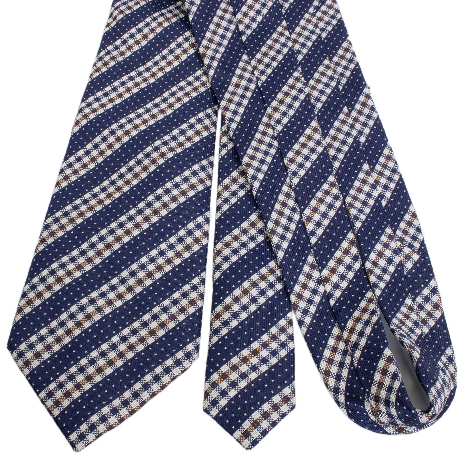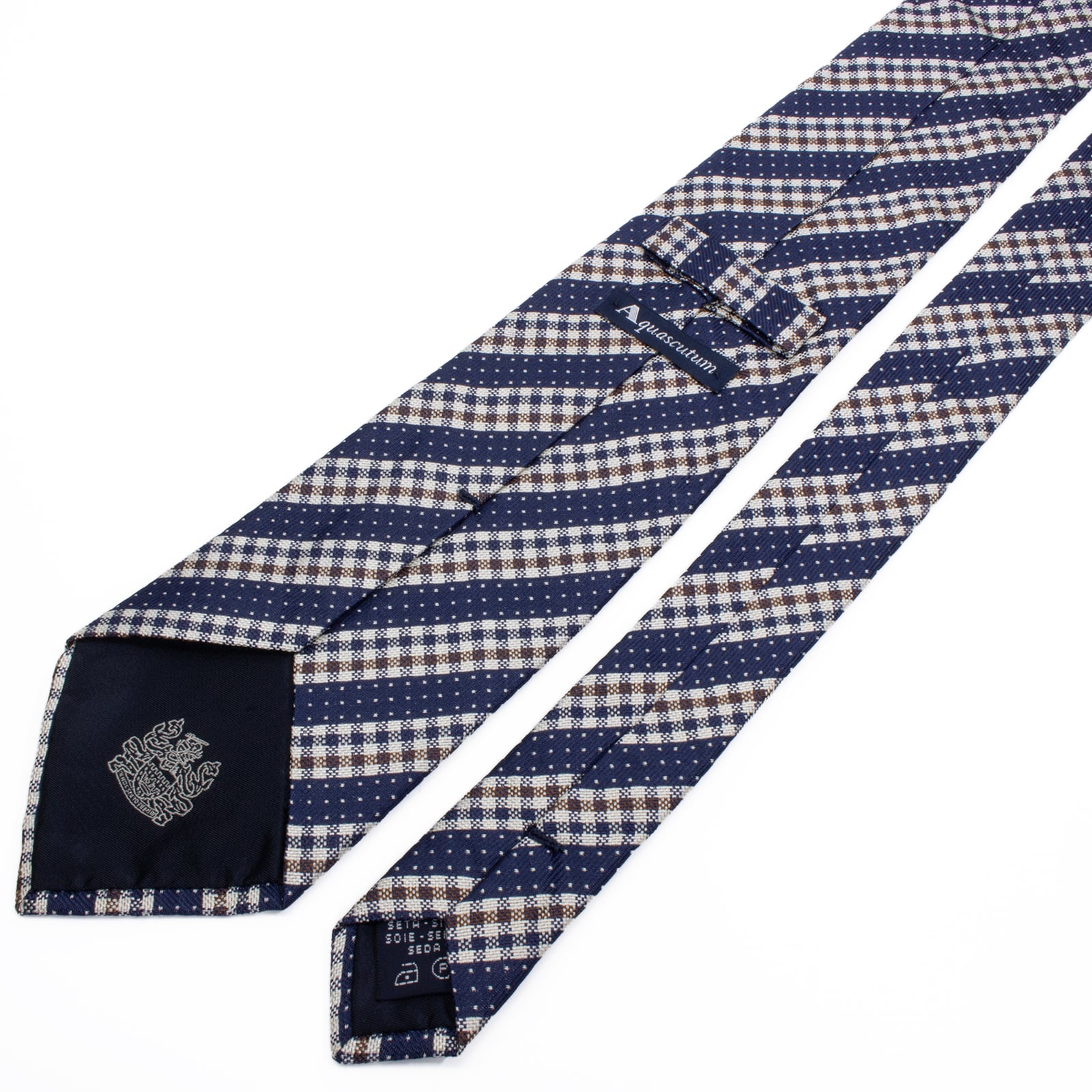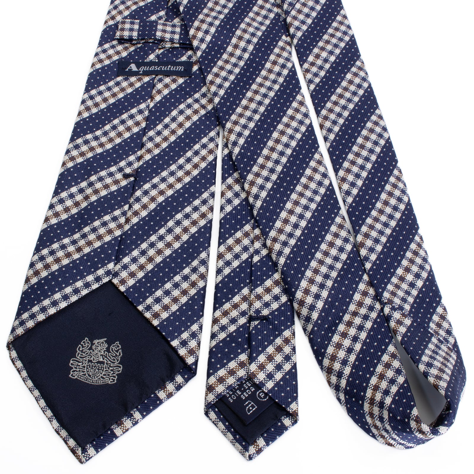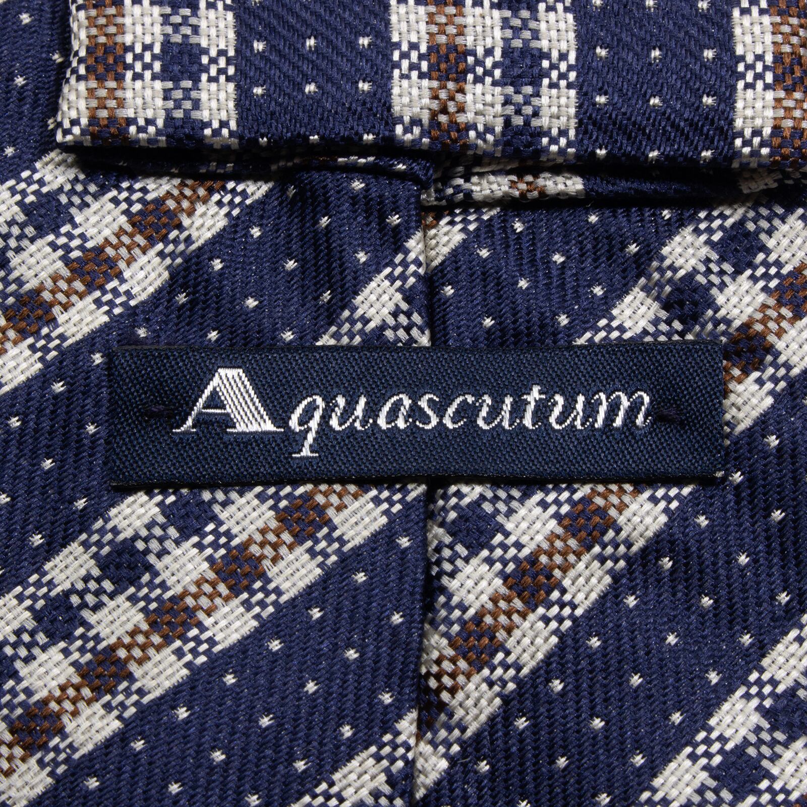 新品同様 送料無料 アクアスキュータム ネクタイ レギュラータイ ジャガード ネイビーブルー シルバー ストライプ ドット ブランド S592