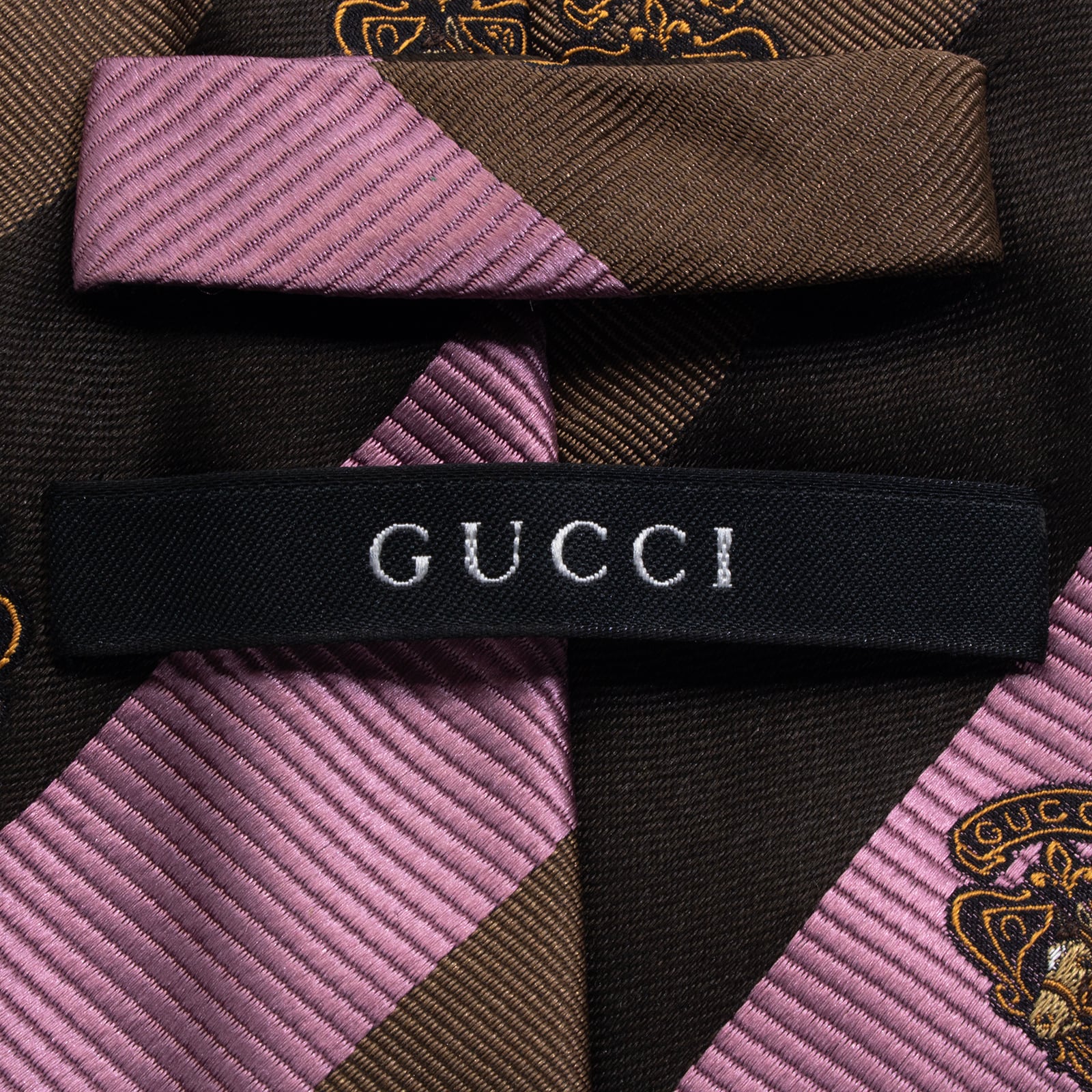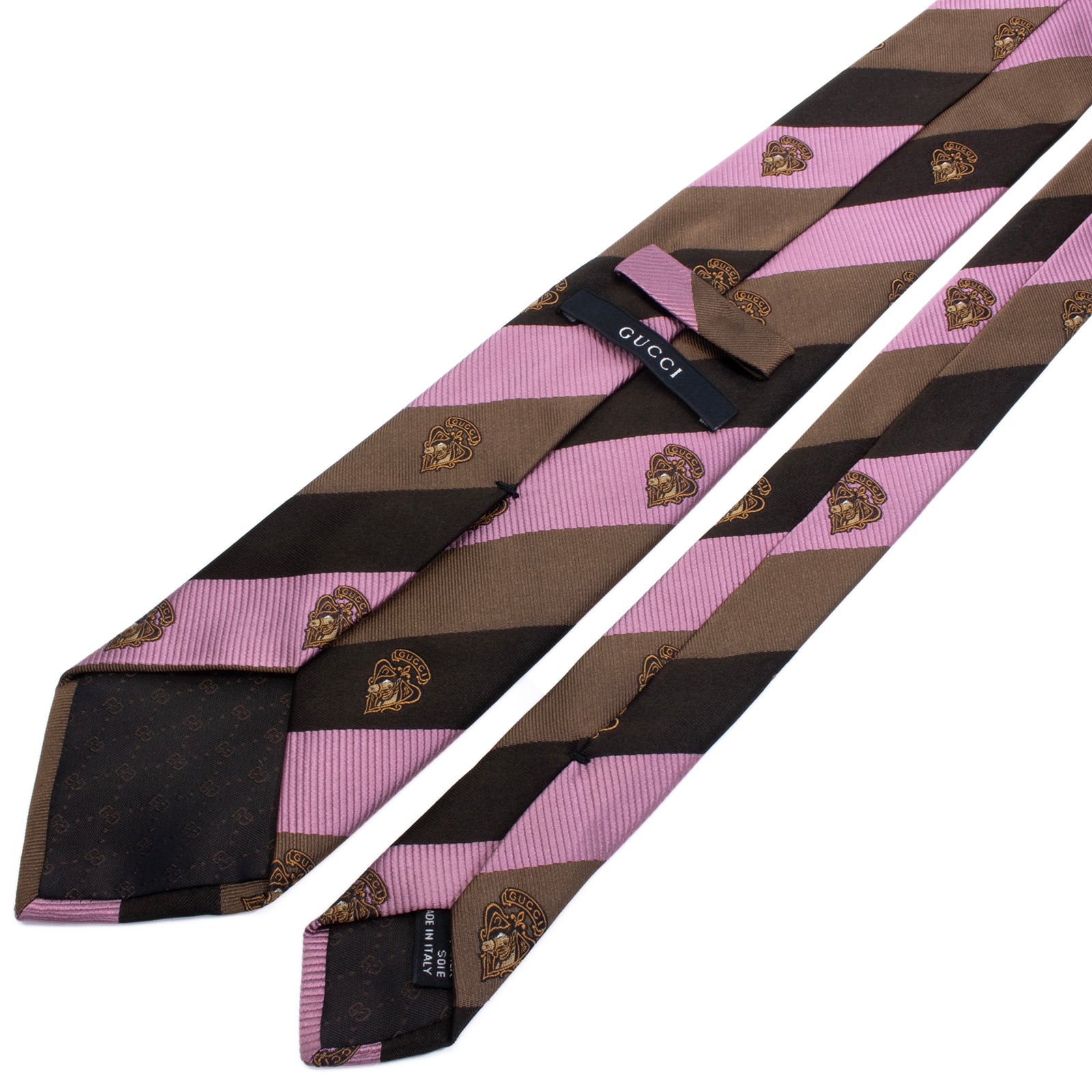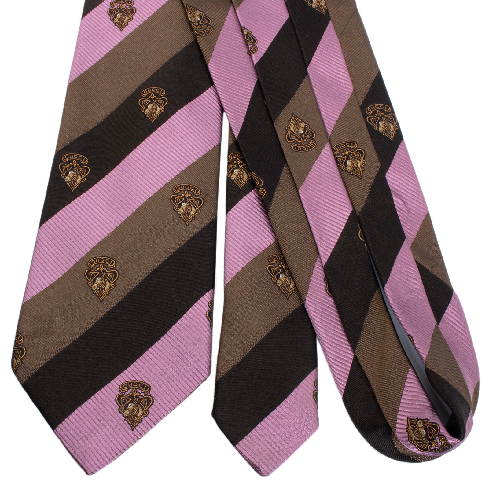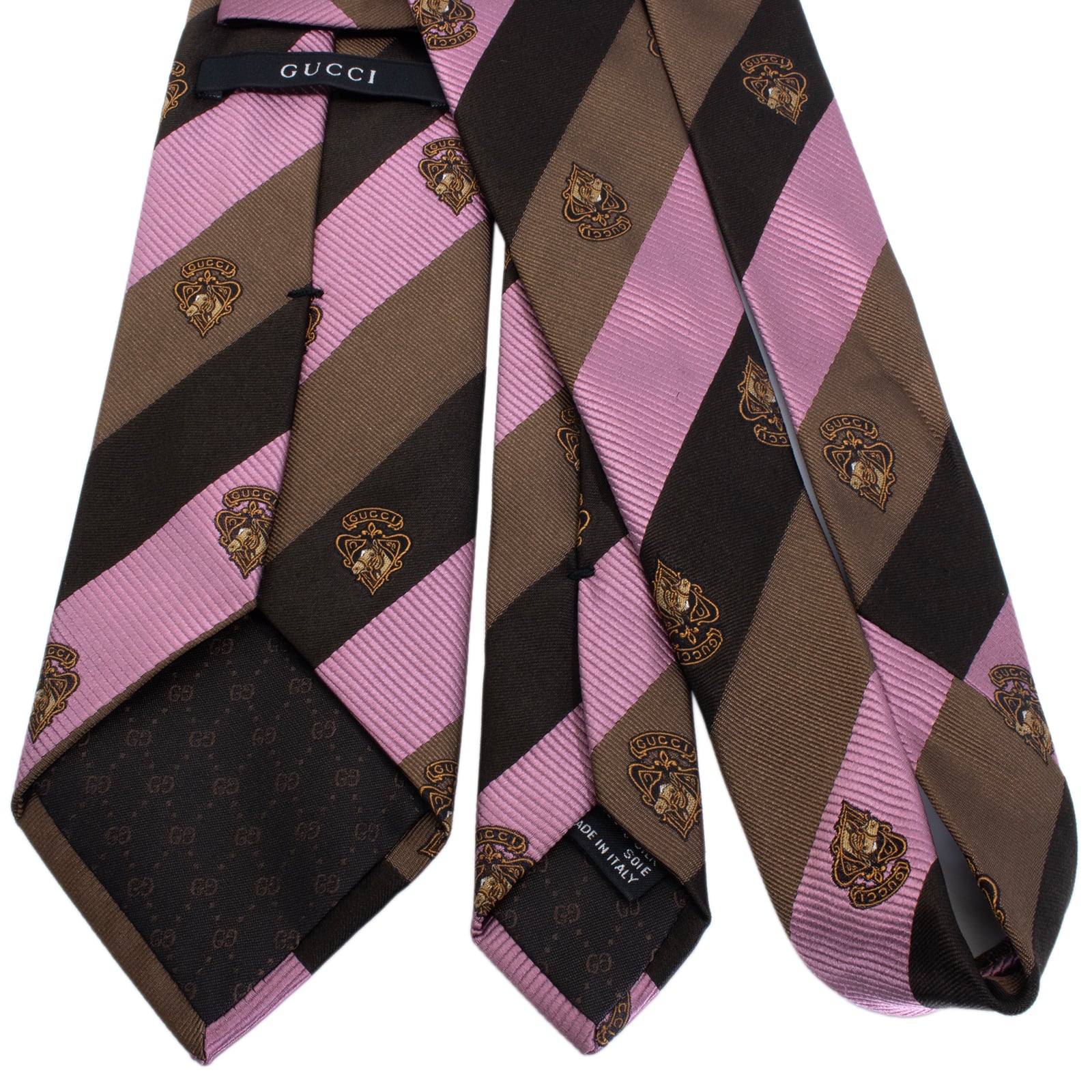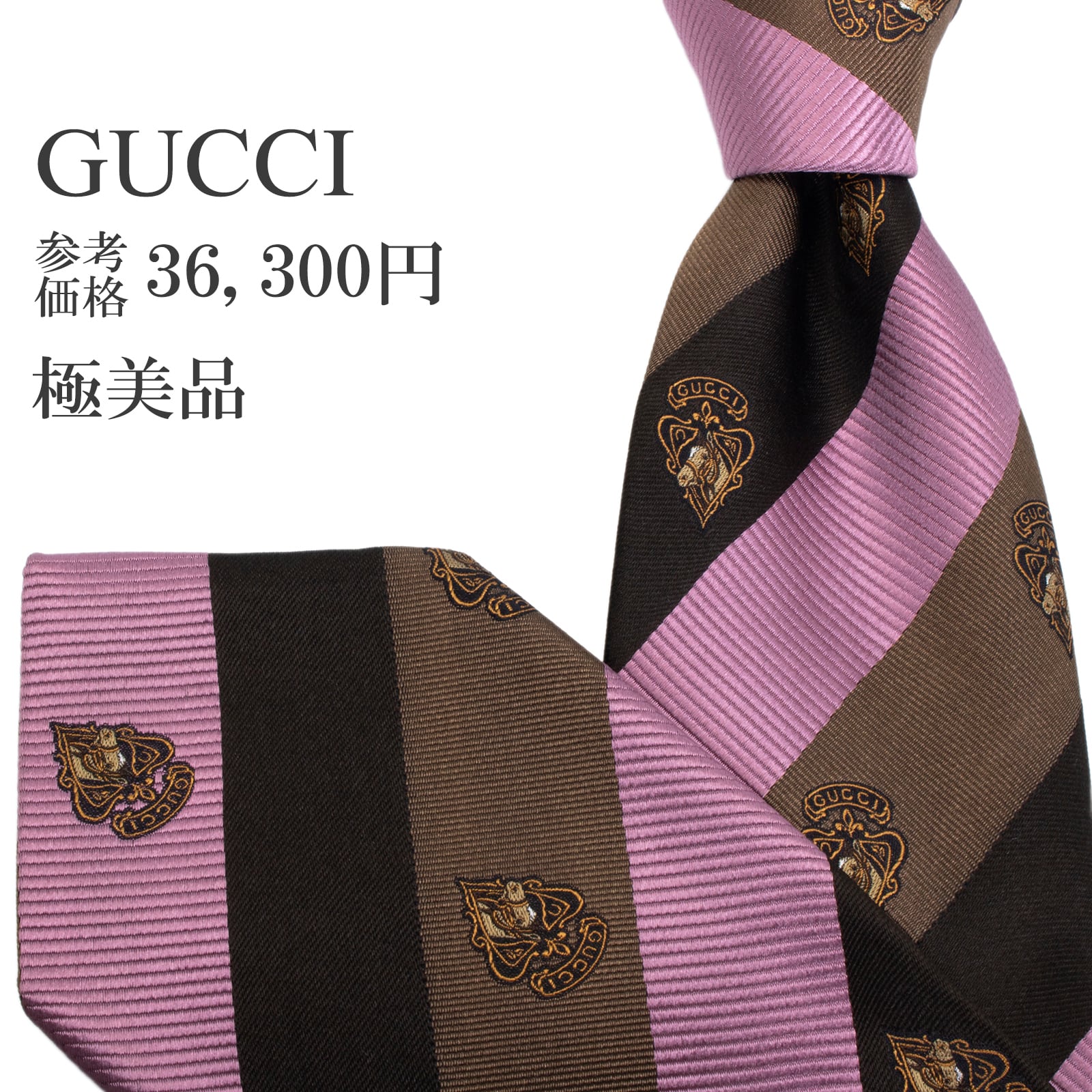 送料無料 グッチ ネクタイ レギュラータイ ジャガード ピンク 焦げ茶色 黒 ストライプ 小紋 ロゴ マーク クレスト ハイブランド 綺麗 S593