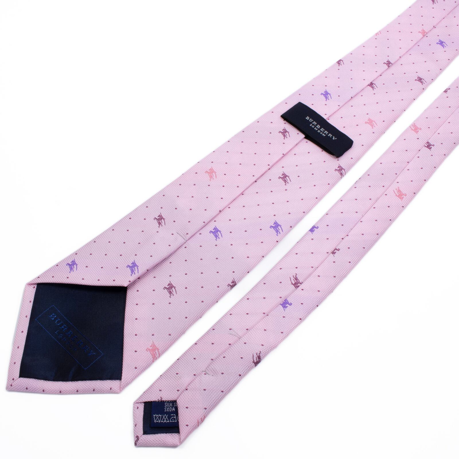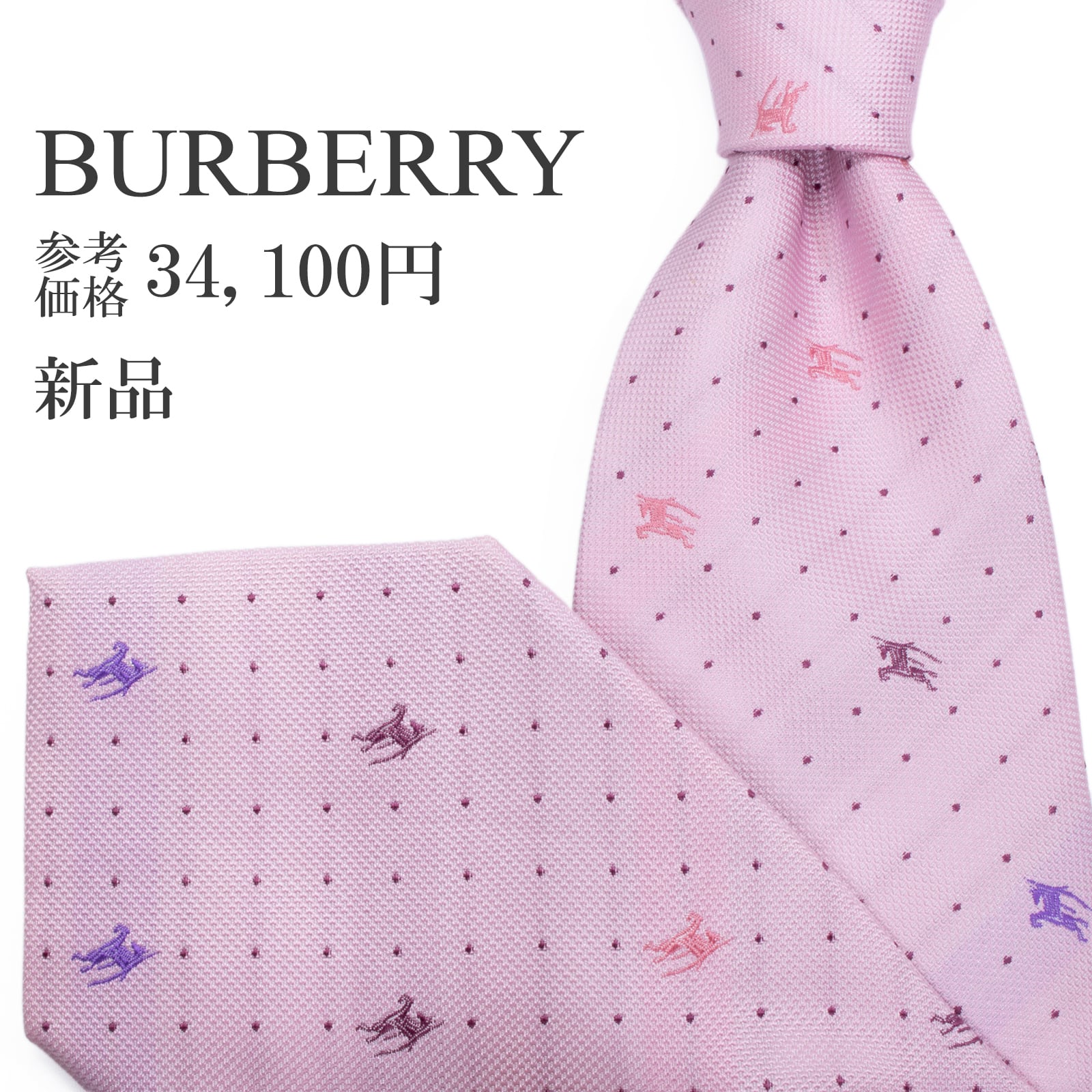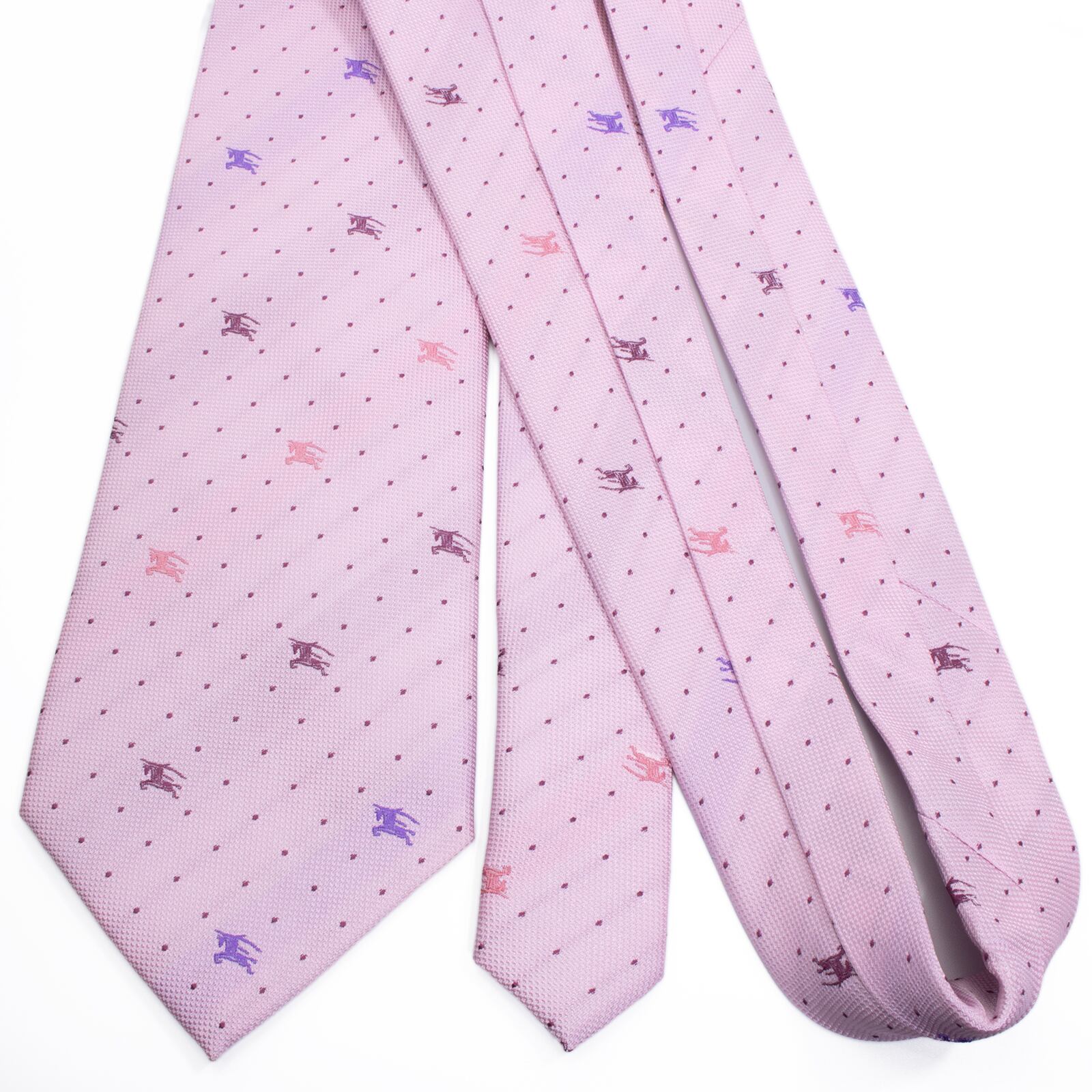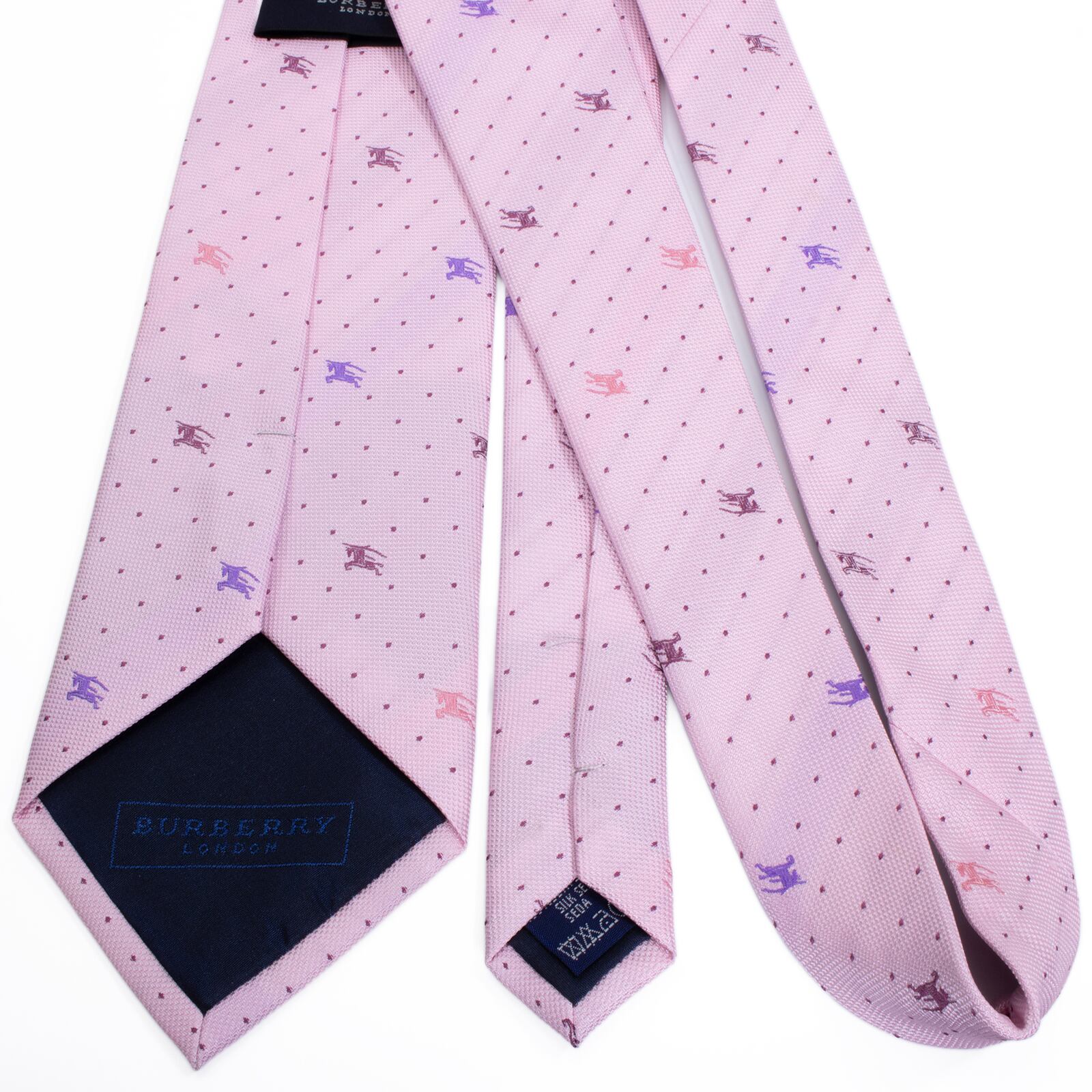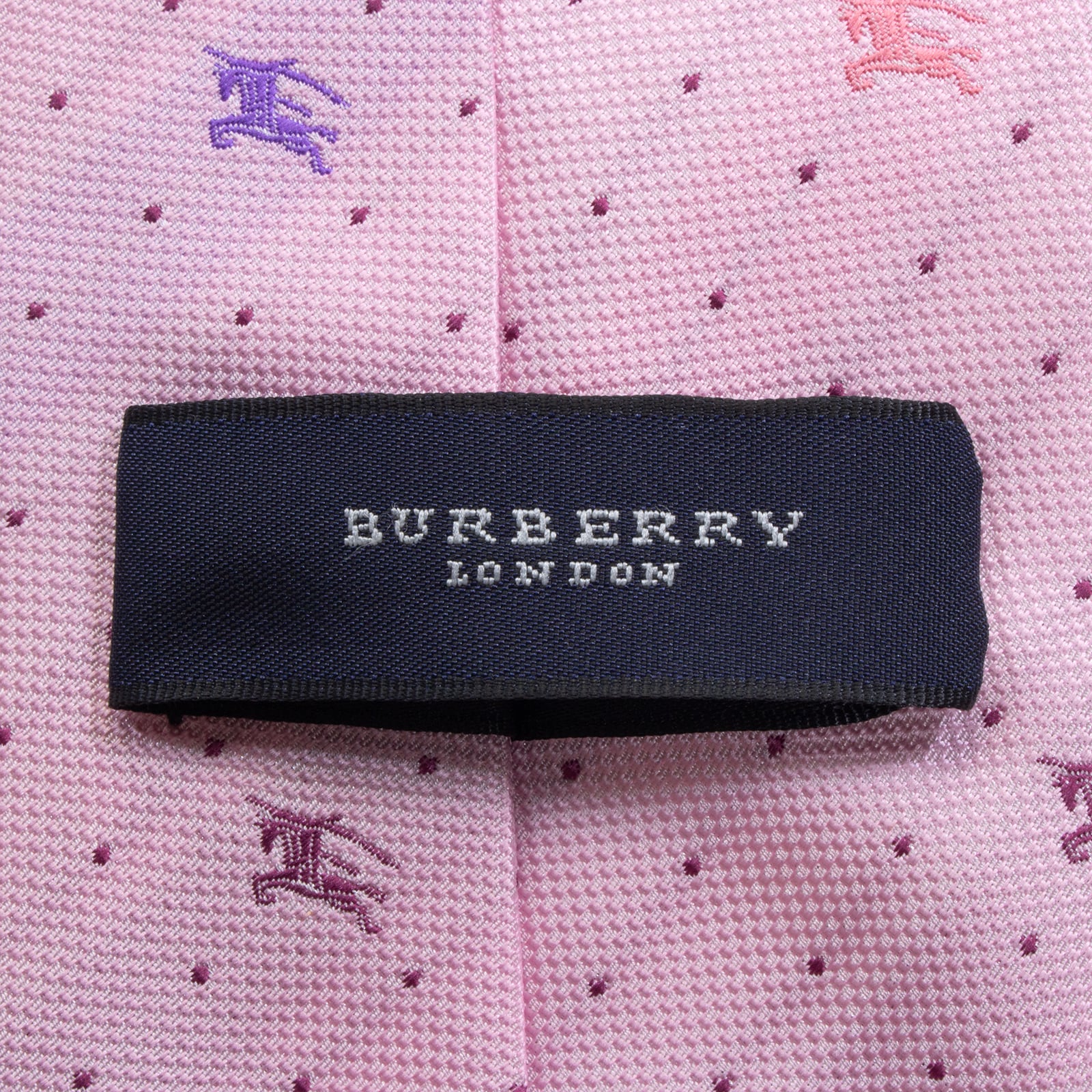新品 送料無料 バーバリー ネクタイ レギュラータイ ジャガード ピンク 紫 青 小紋 ドット 馬 ホースロゴ マーク ハイブランド 綺麗 S594