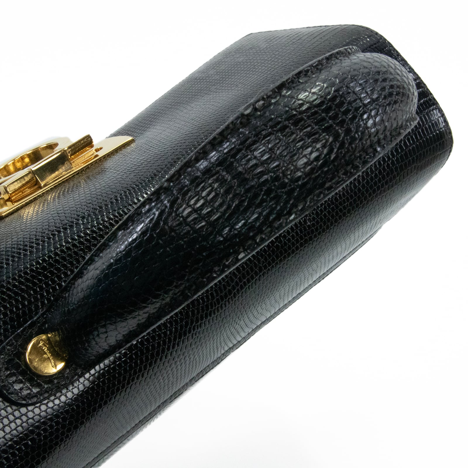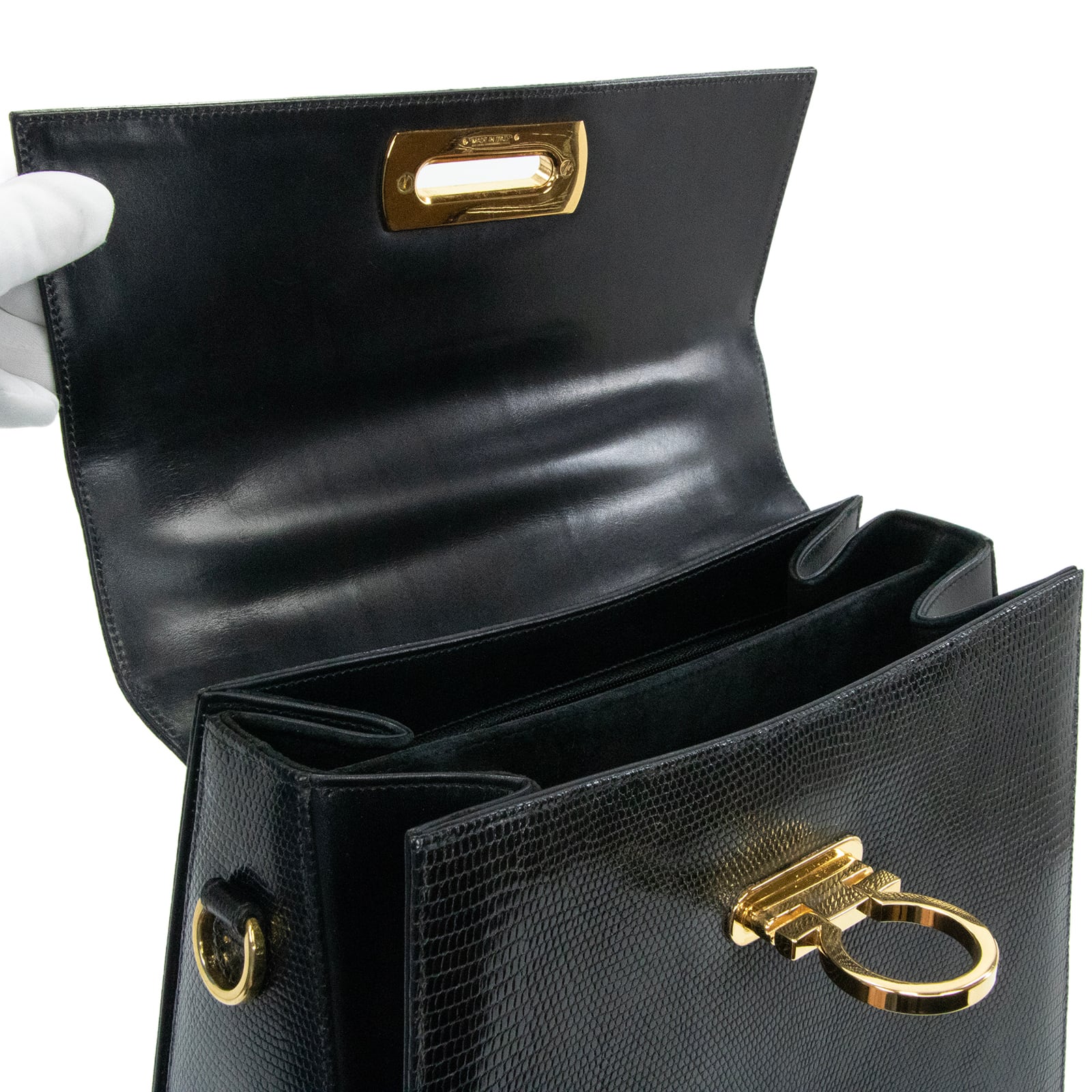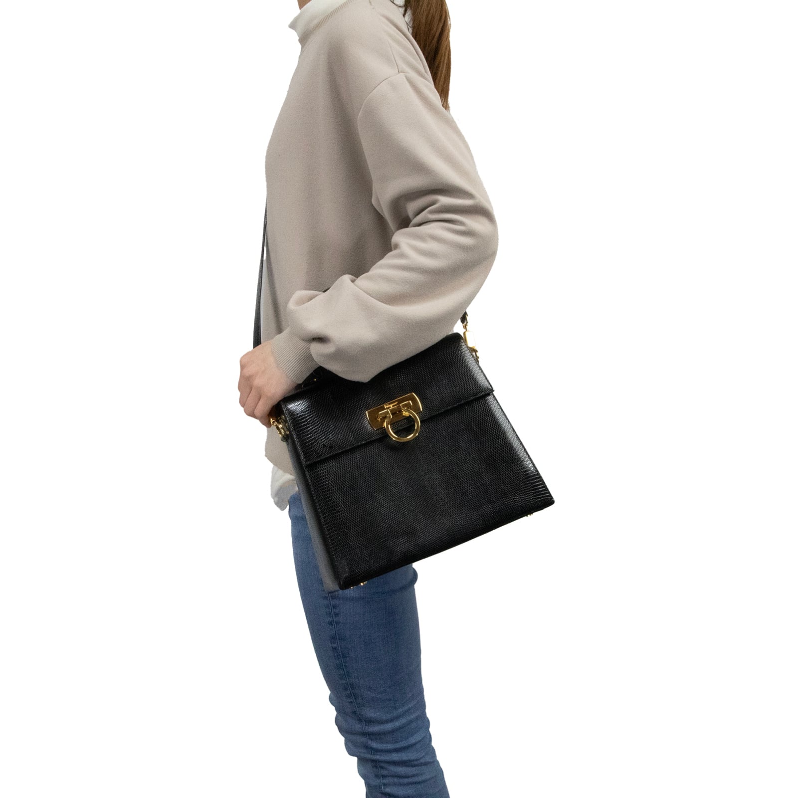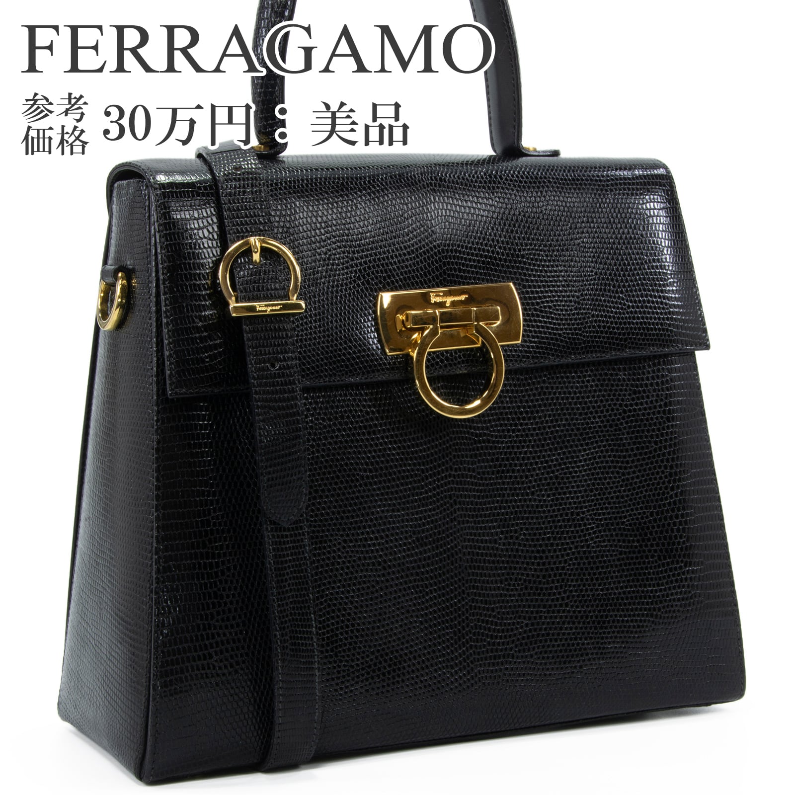 本物 送料無料 フェラガモ 2WAYショルダーバッグ ハンドバッグ レディース リザード ガンチーニ 黒 トカゲの本革 斜め掛け 鞄 バック A872