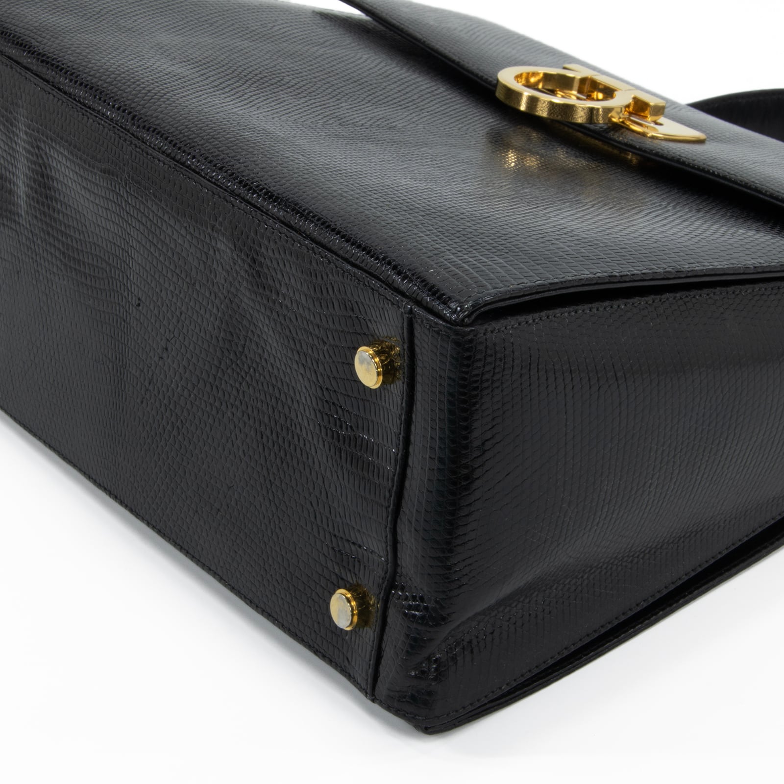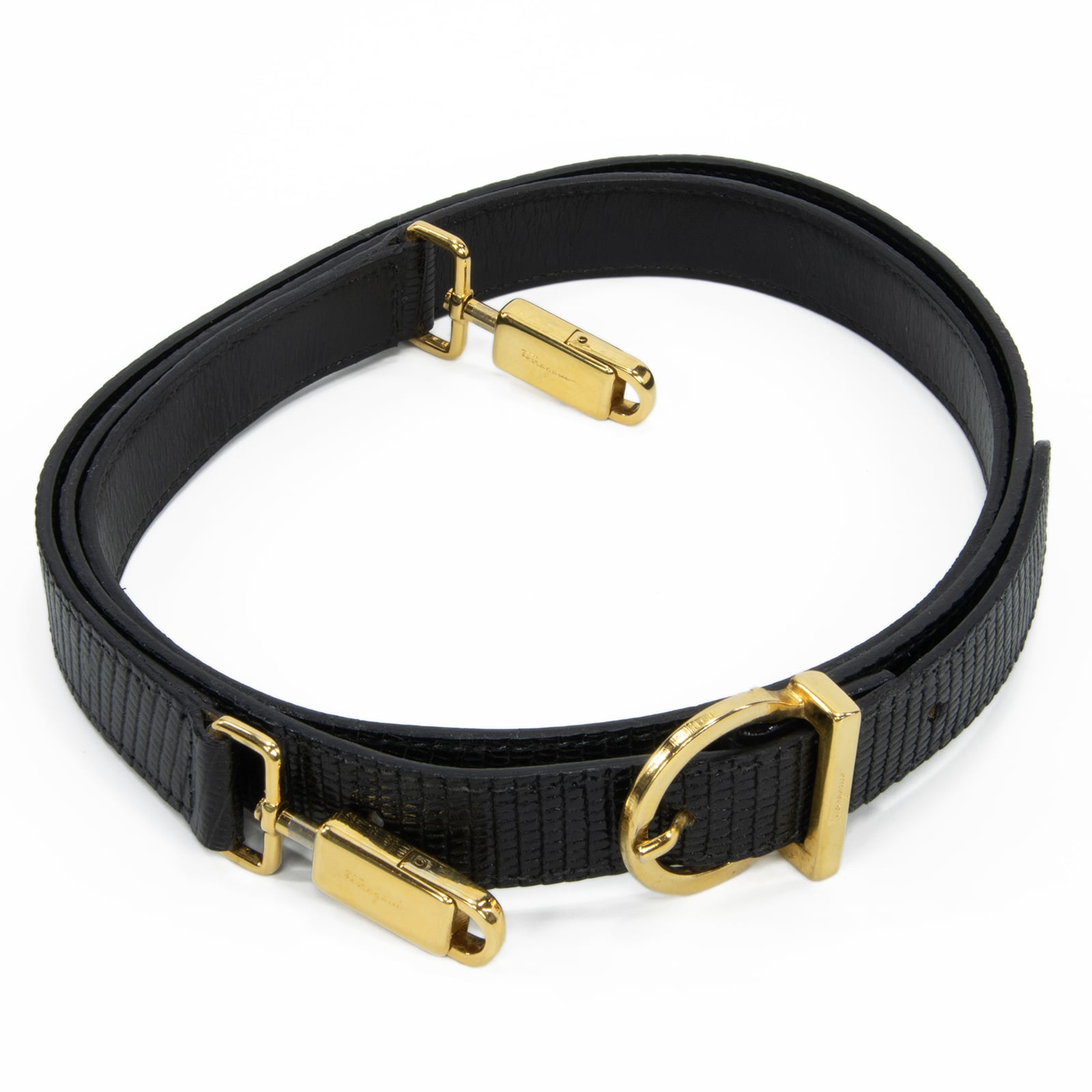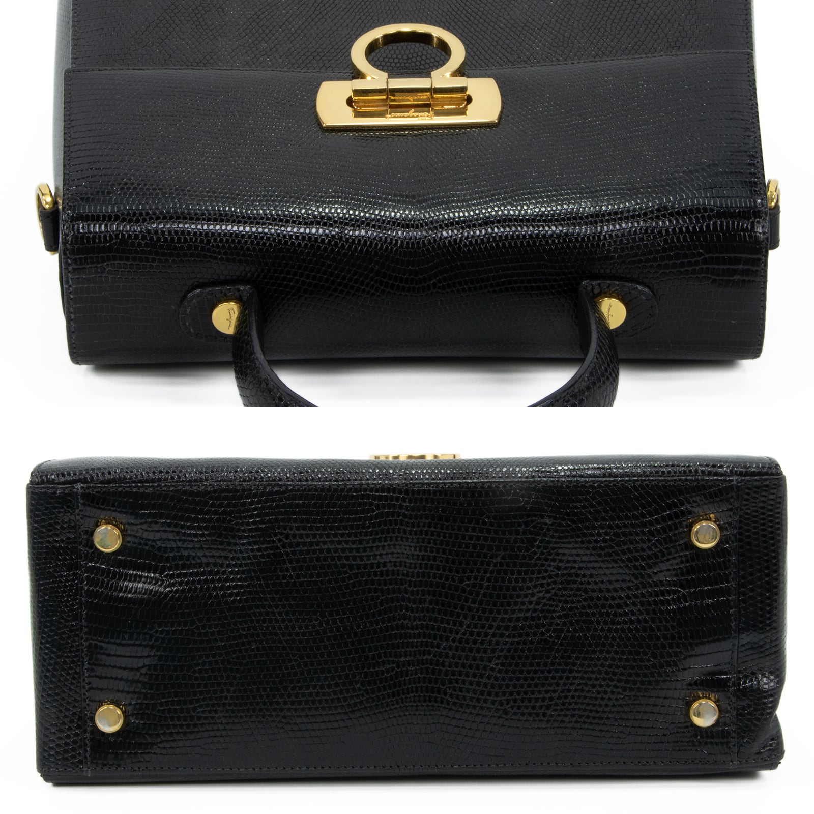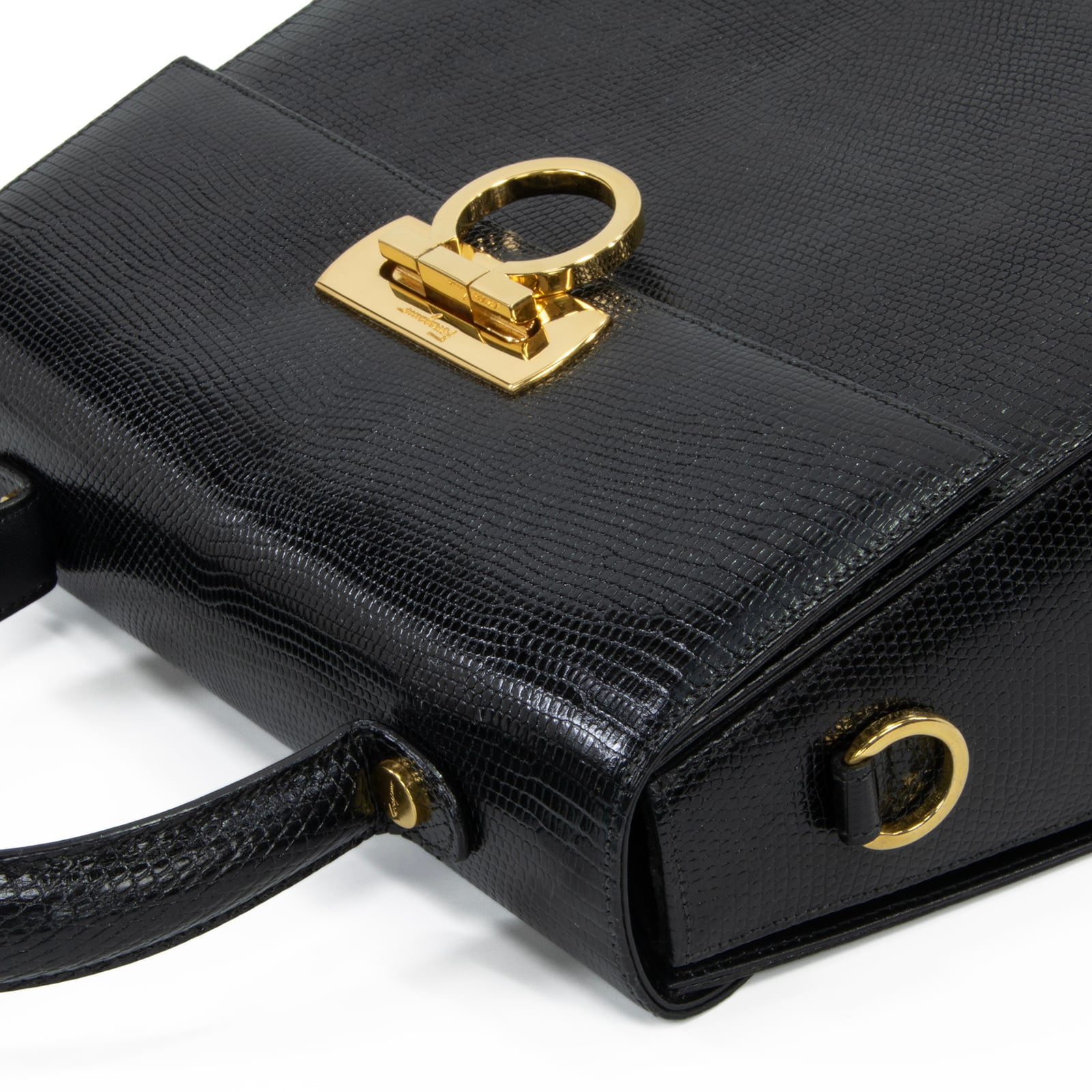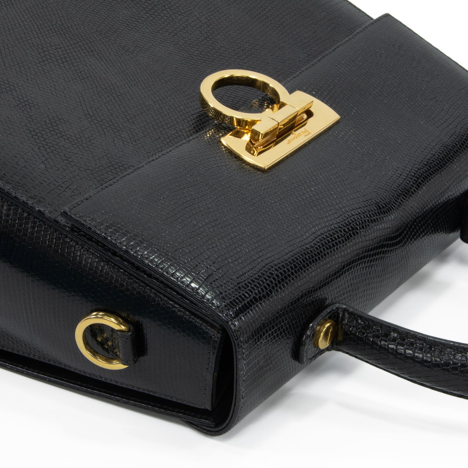 本物 送料無料 フェラガモ 2WAYショルダーバッグ ハンドバッグ レディース リザード ガンチーニ 黒 トカゲの本革 斜め掛け 鞄 バック A872