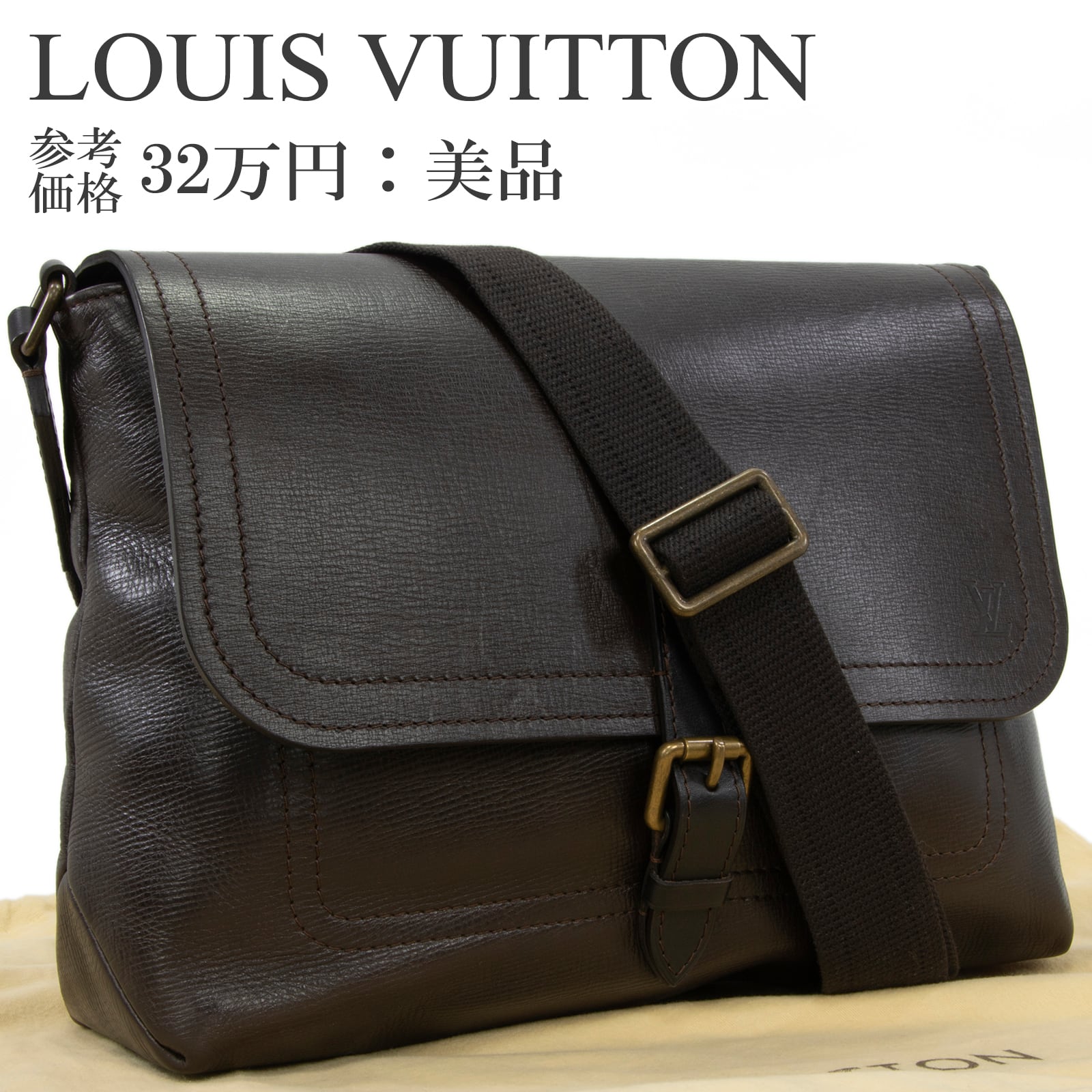 本物 送料無料 ヴィトン ショルダーバッグ メッセンジャーバッグ メンズ オマハ ユタ カフェ 焦げ茶色 斜め掛け 革 レザー 鞄 バック E466