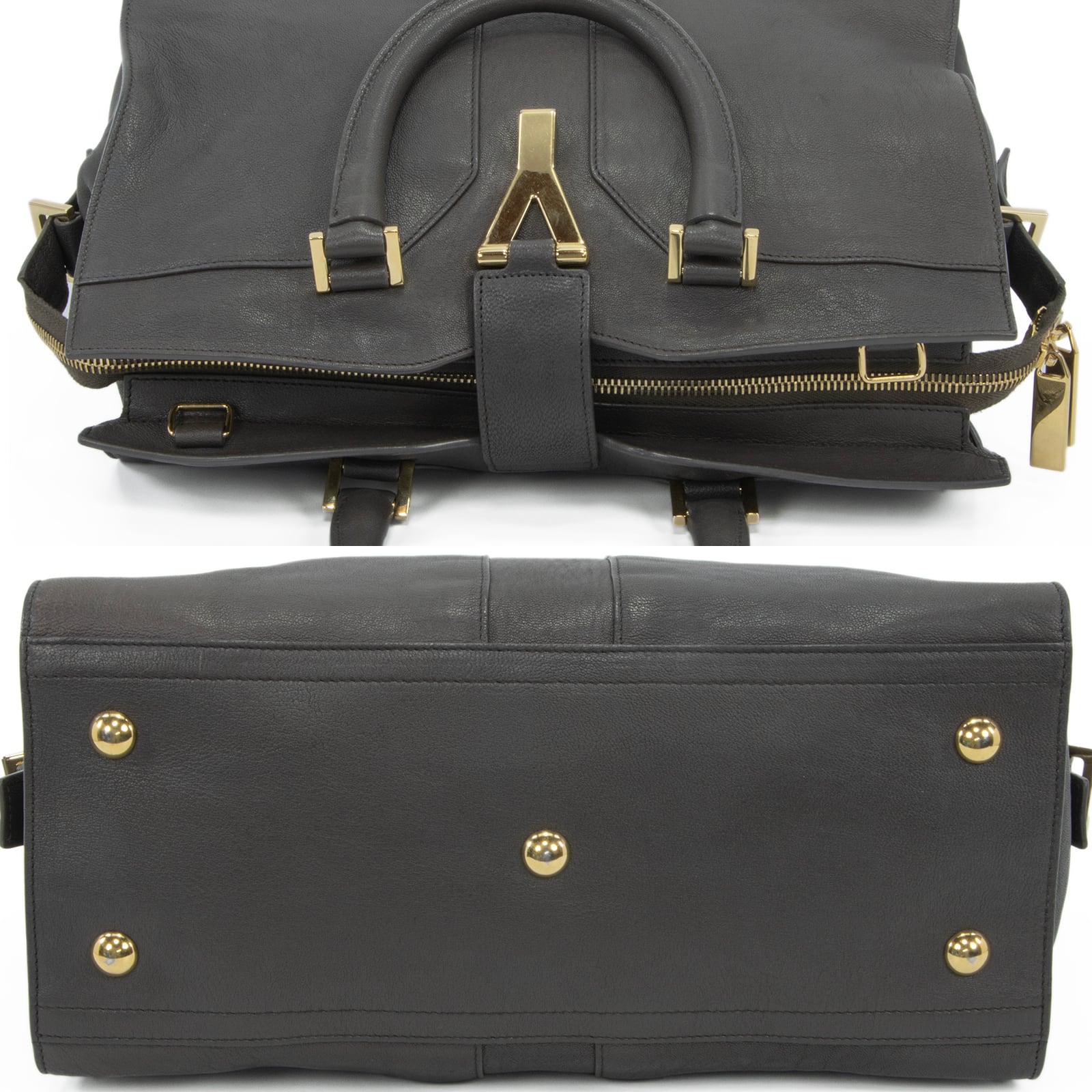 本物 送料無料 サンローラン 2WAYショルダーバッグ ハンドバッグ レディース カバス シック ミニ グレー 肩掛け ロゴ 本革 鞄 バック E468