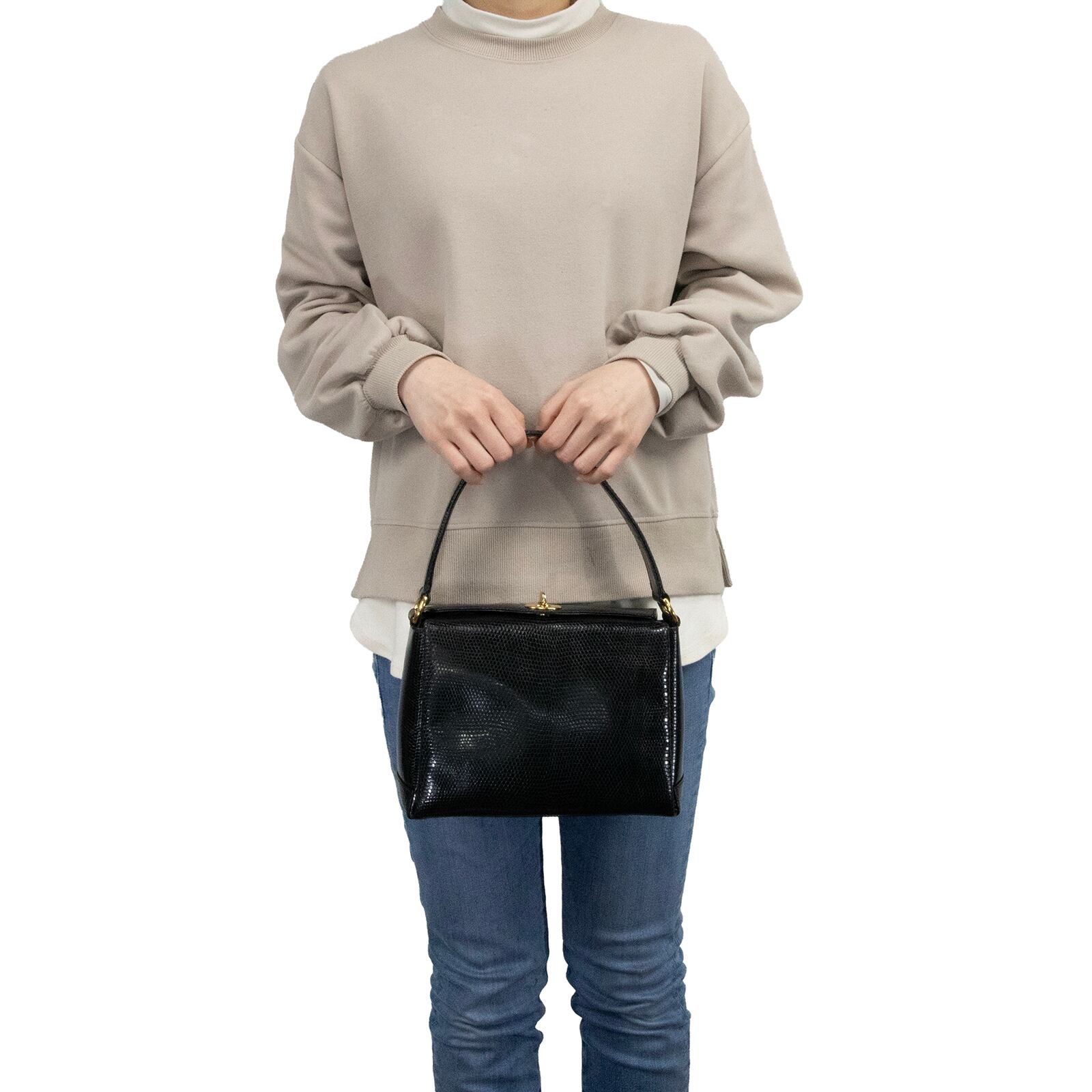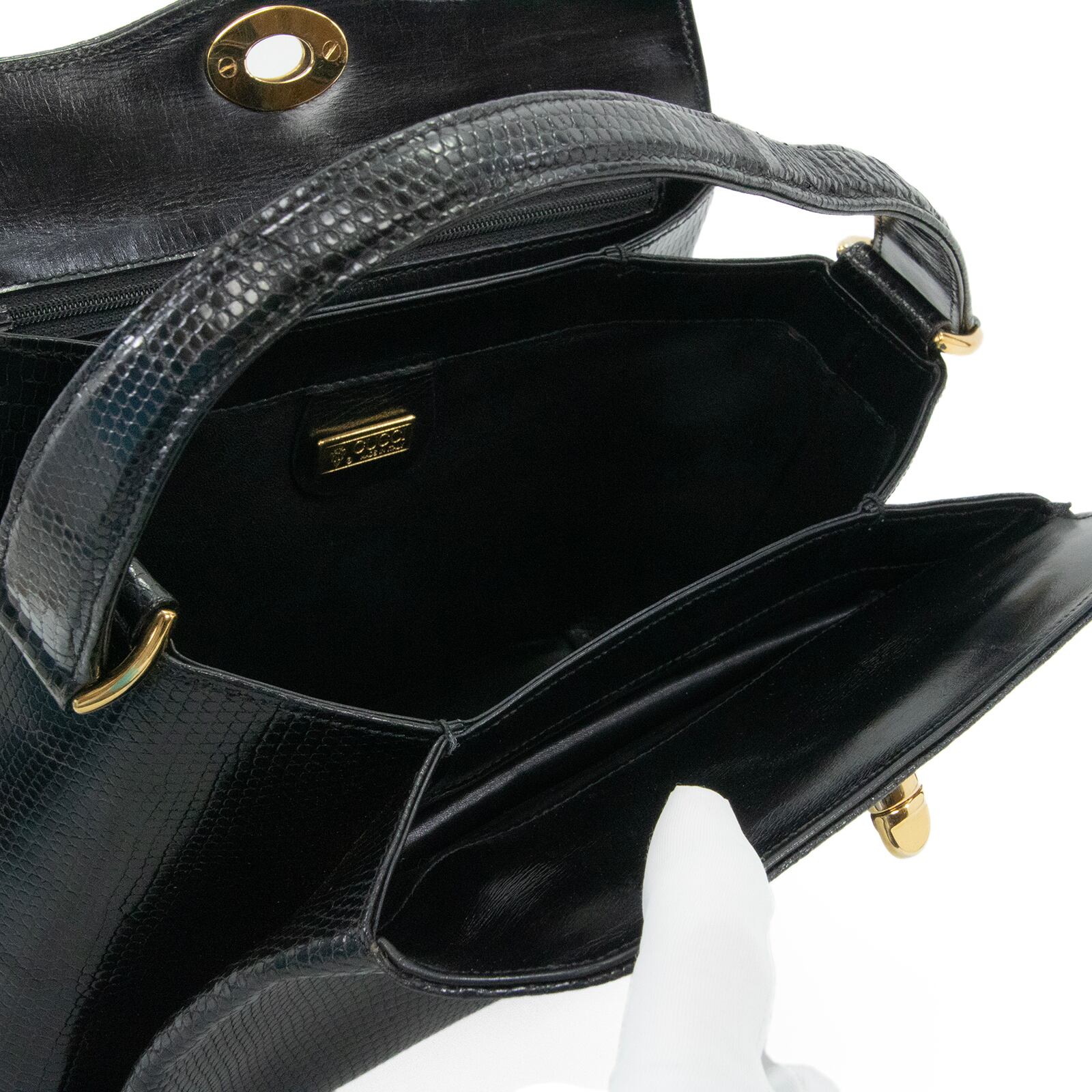 本物 送料無料 オールドグッチ ハンドバッグ レディース リザード 黒 ブラック 珍しい トカゲの革 パーティーバッグ GGロゴ 鞄 バック E469