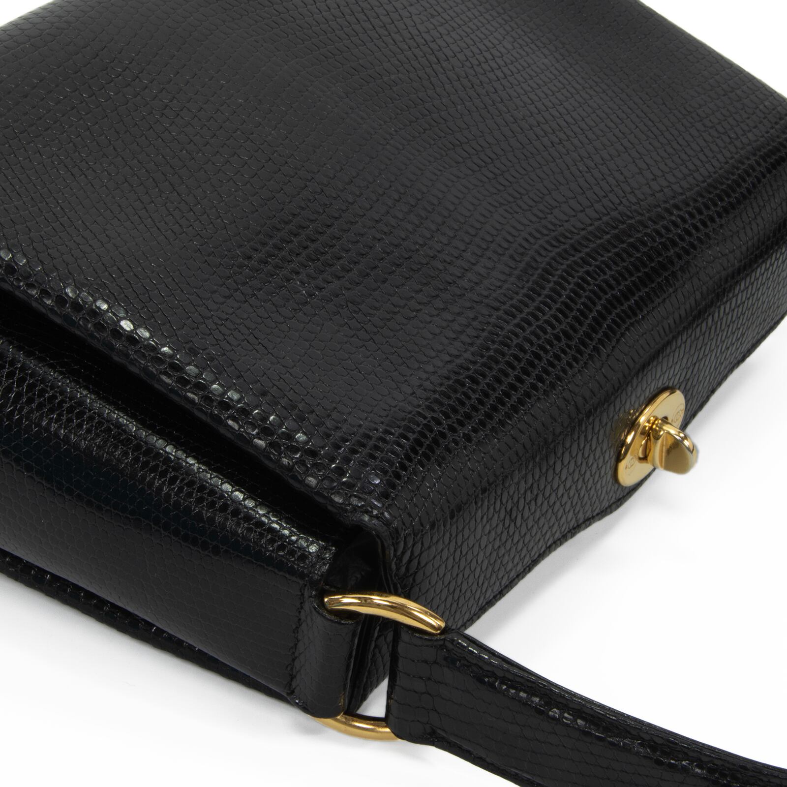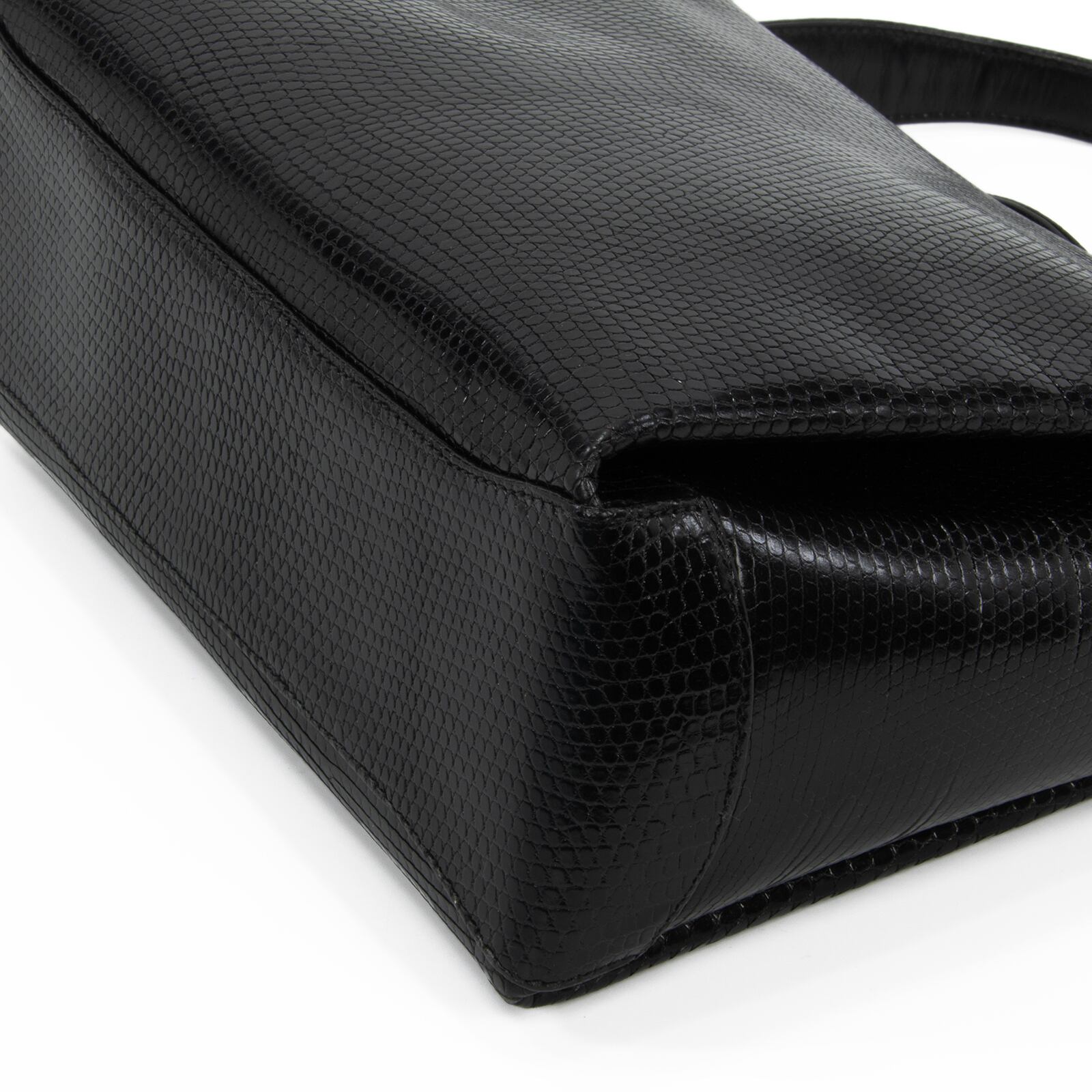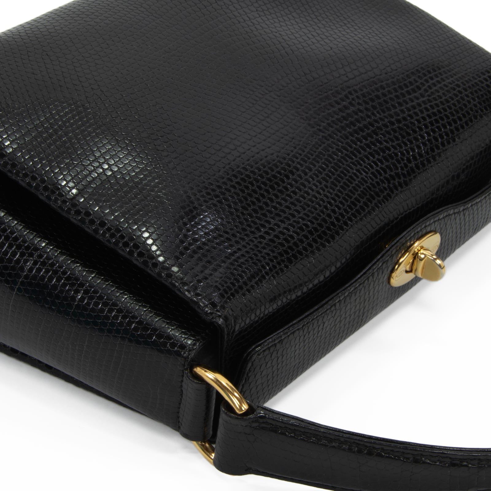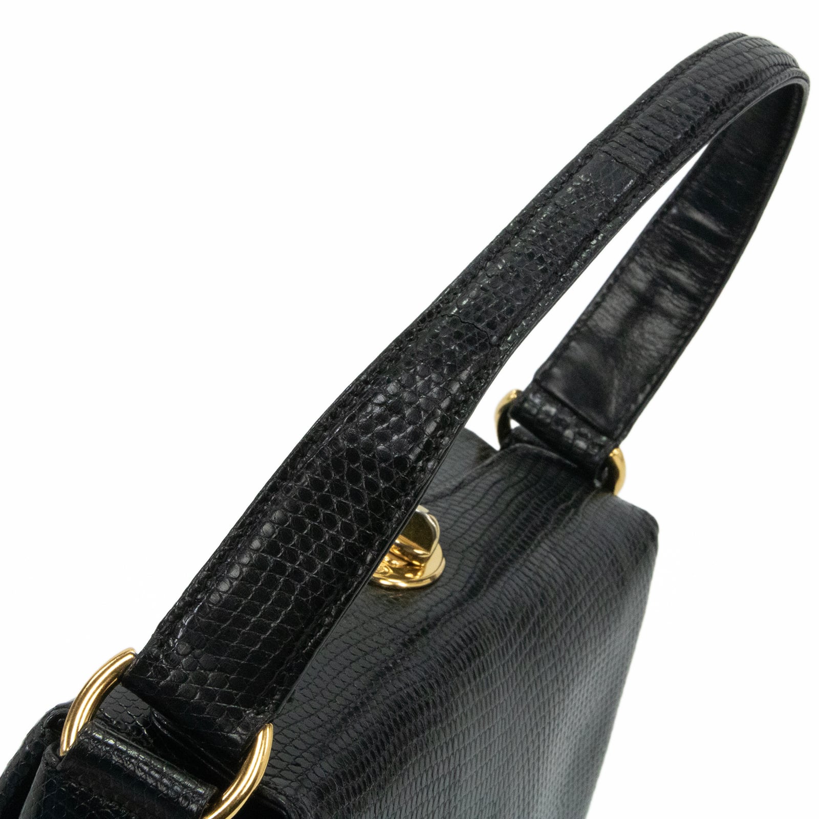 こちらは、洗練されたブラックリザードの輝きが装いを格上げしてくれる、オールドグッチ・ハンドバッグでございます。