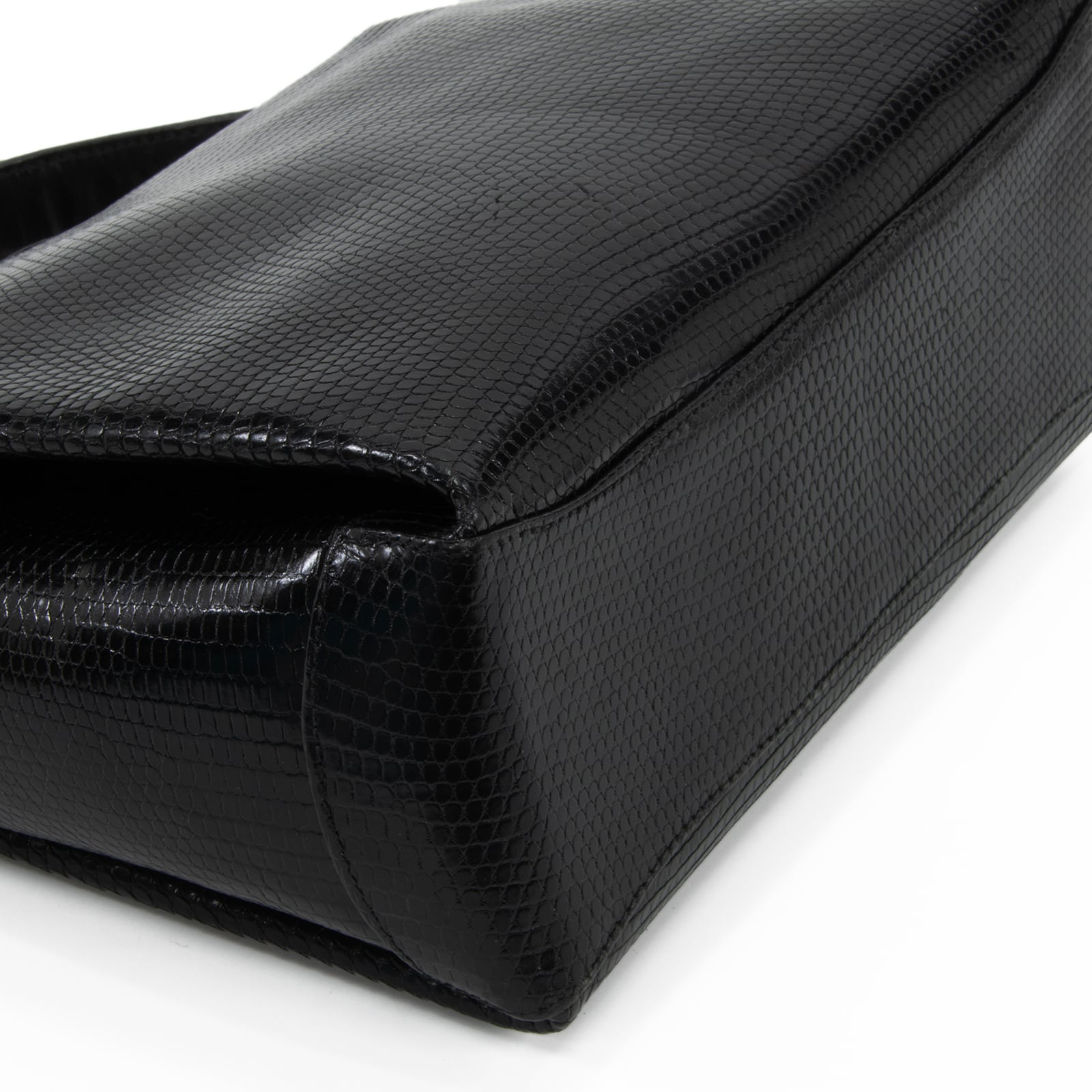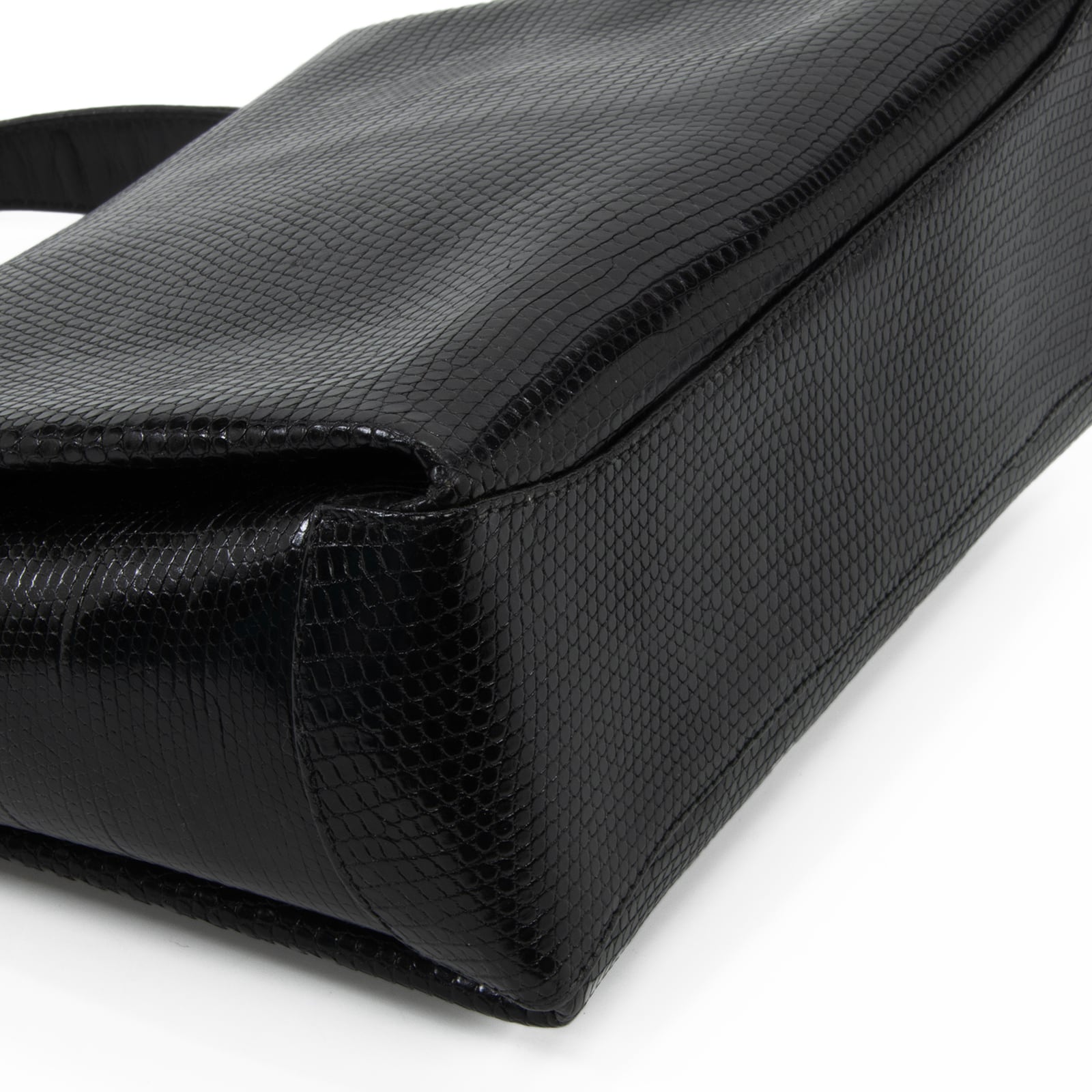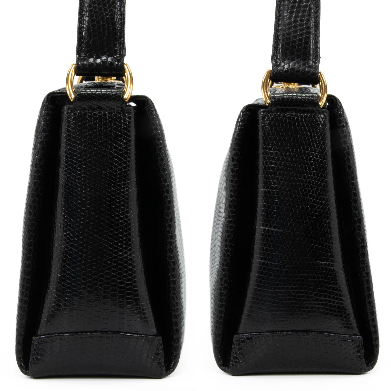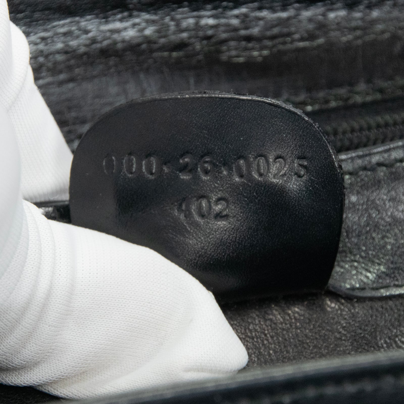 こちらは、洗練されたブラックリザードの輝きが装いを格上げしてくれる、オールドグッチ・ハンドバッグでございます。