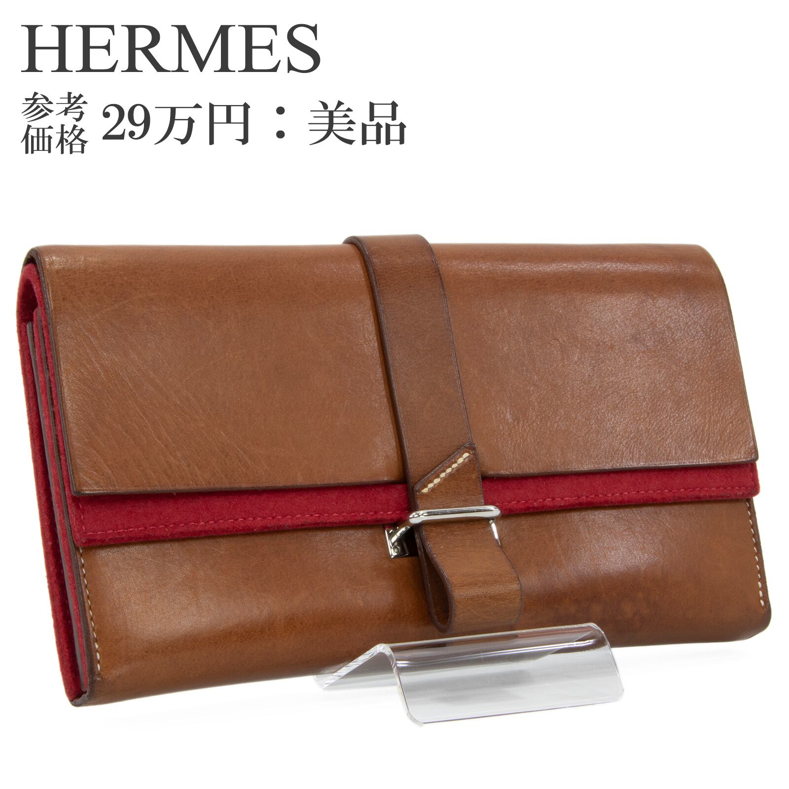 本物 送料無料 エルメス 長財布 二つ折り財布 メンズ レディース ヴォーバレニア 雄仔牛革 オノレ 茶色 赤 レッド 珍しい レザー 綺麗 C246