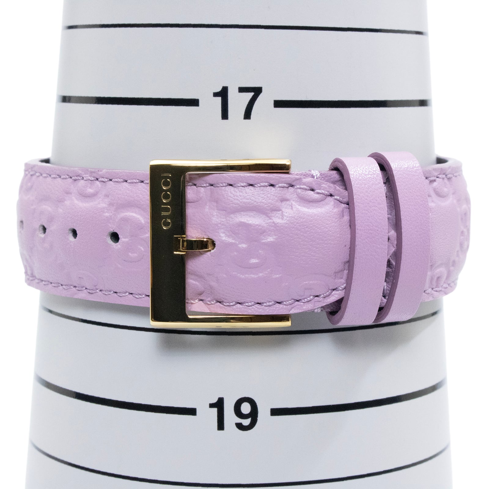 文字盤一面に施されたグッチシマの意匠が、ハイブランドならではの圧倒的な存在感を物語っております。