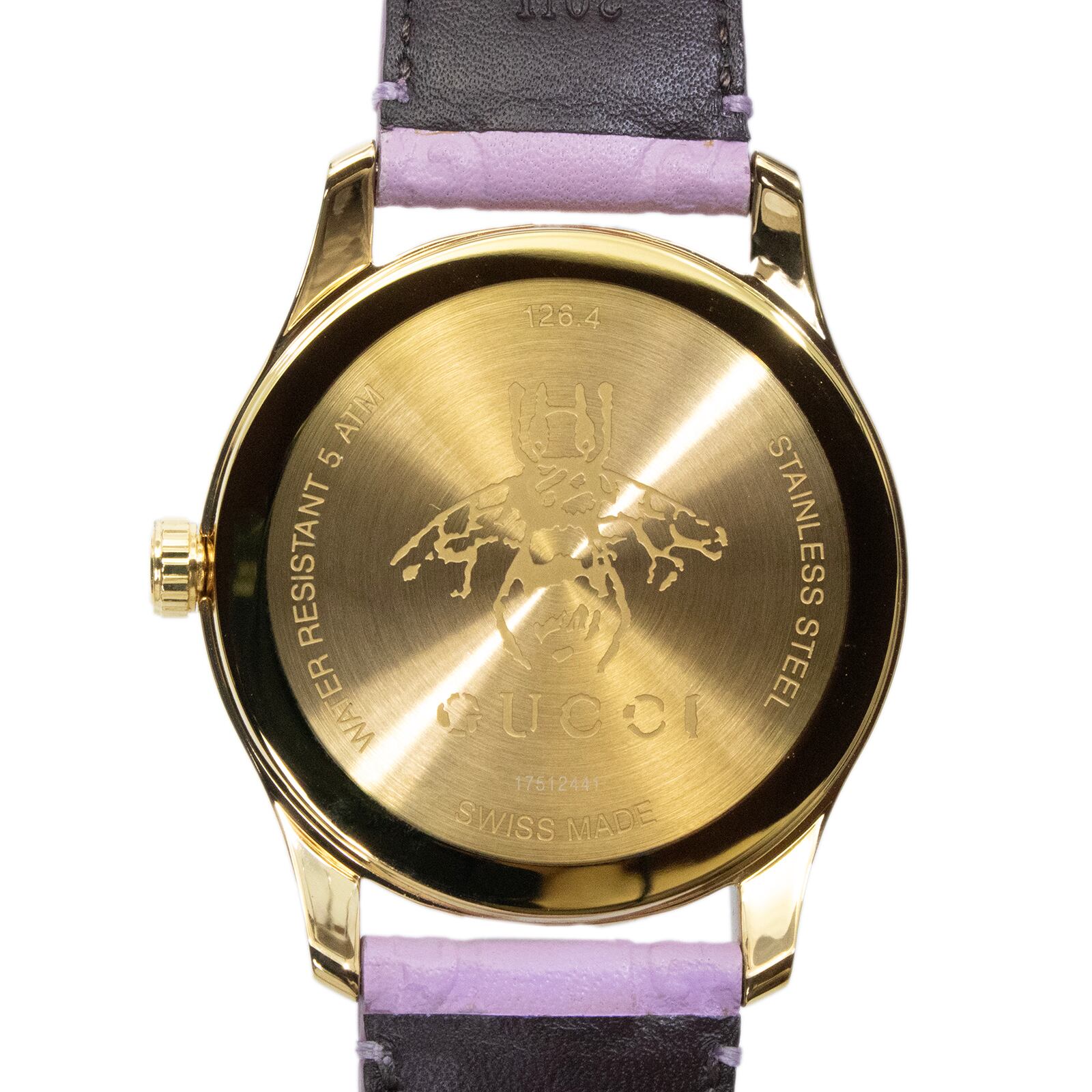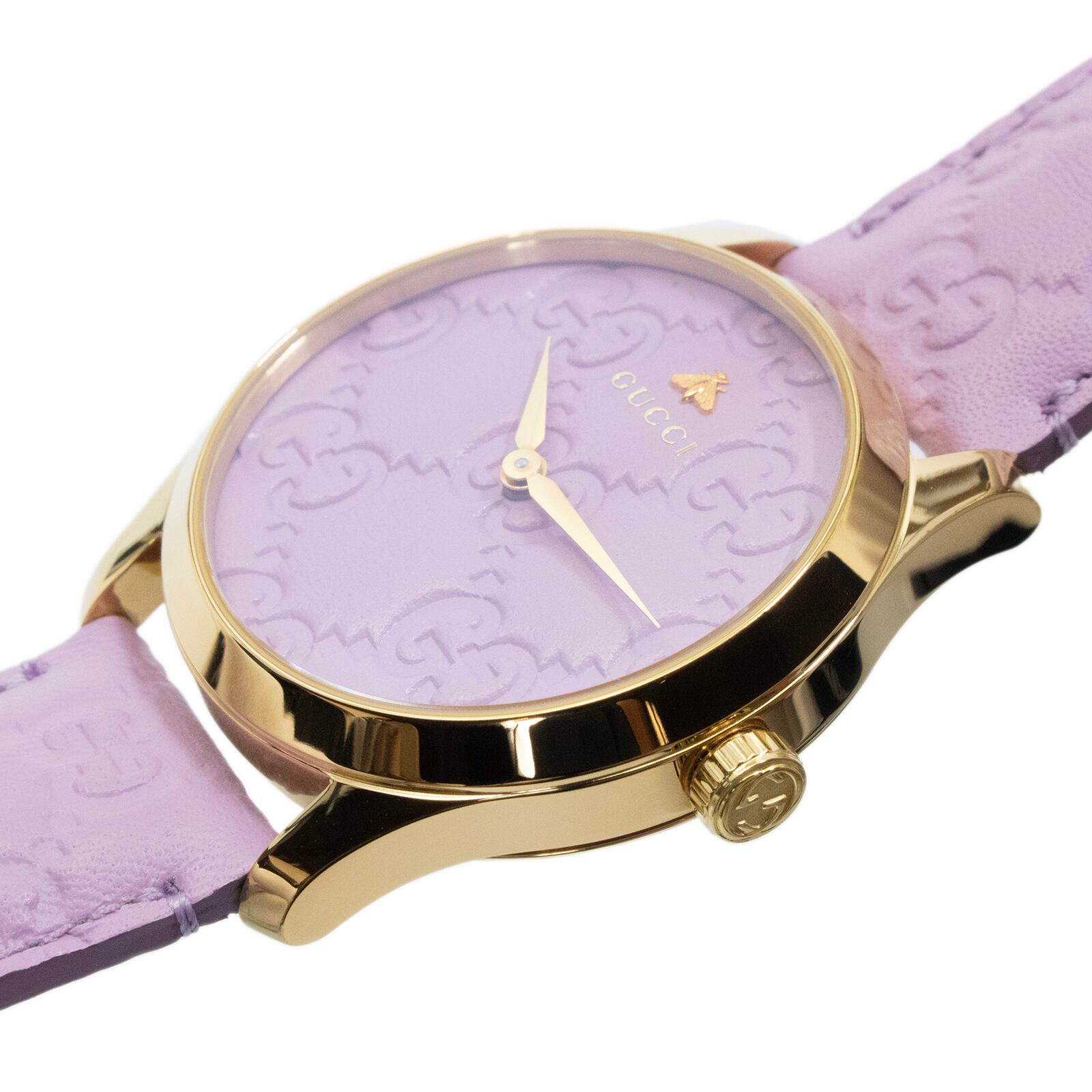 新品 グッチ 腕時計 クォーツ 2針 レディース Gタイムレス 126.4 YA1264098 紫 ゴールド グッチシマ ビー ロゴ マーク ハイブランド X492