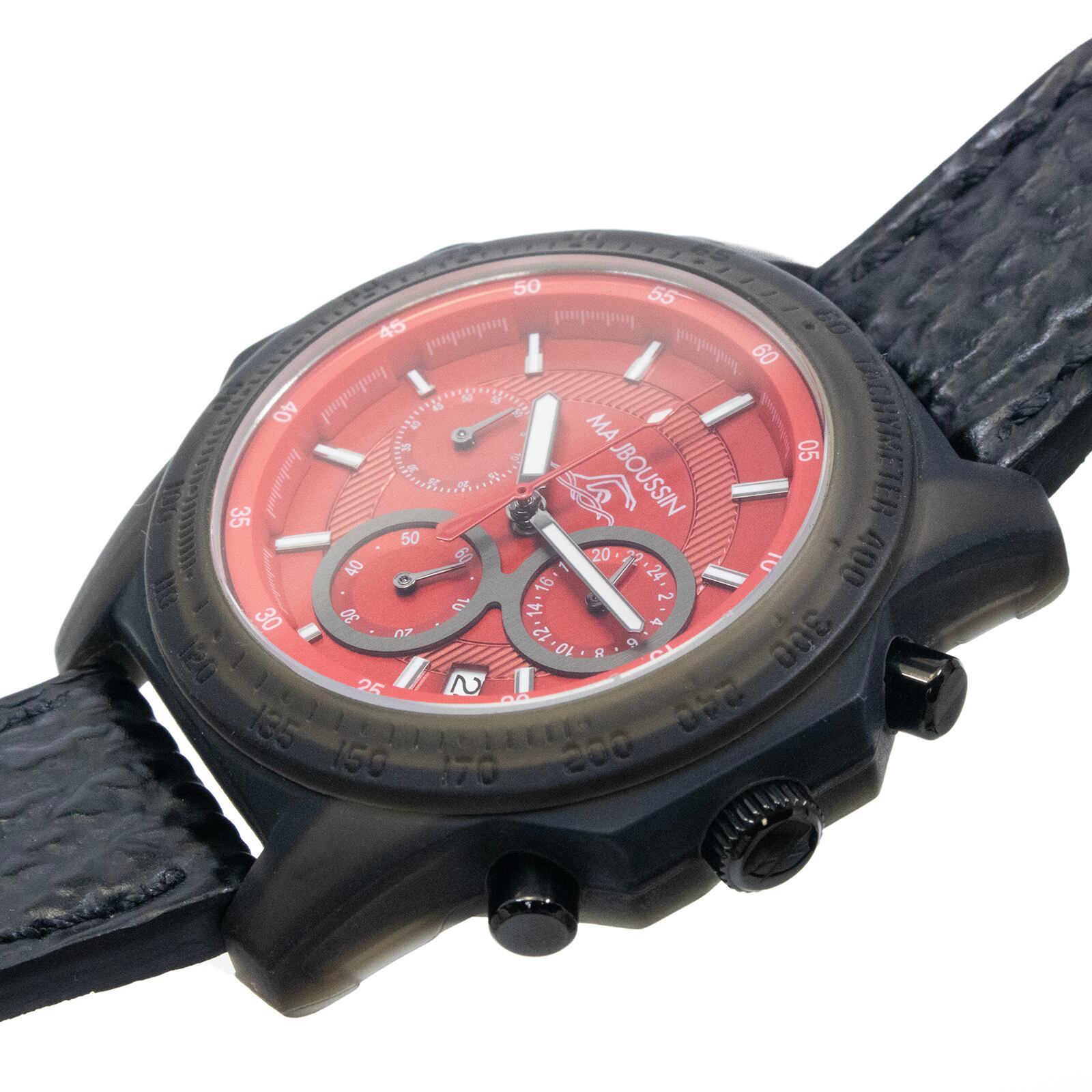 稼働品 送料無料 モーブッサン 腕時計 クォーツ メンズ ザ スイマー 赤 クロノグラフ ロゴ マーク カジュアル スポーツウォッチ 綺麗 X493