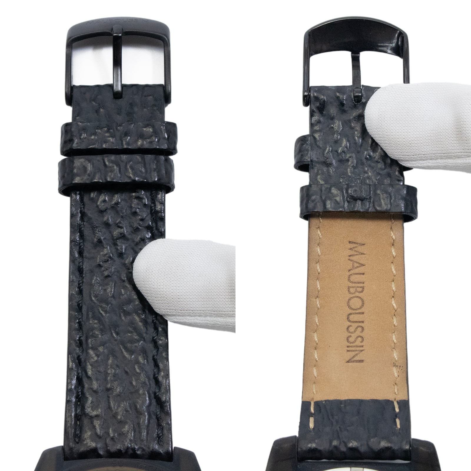 こちらは、情熱的な赤が手元で圧倒的な存在感を放たれる、モーブッサンの腕時計でございます。