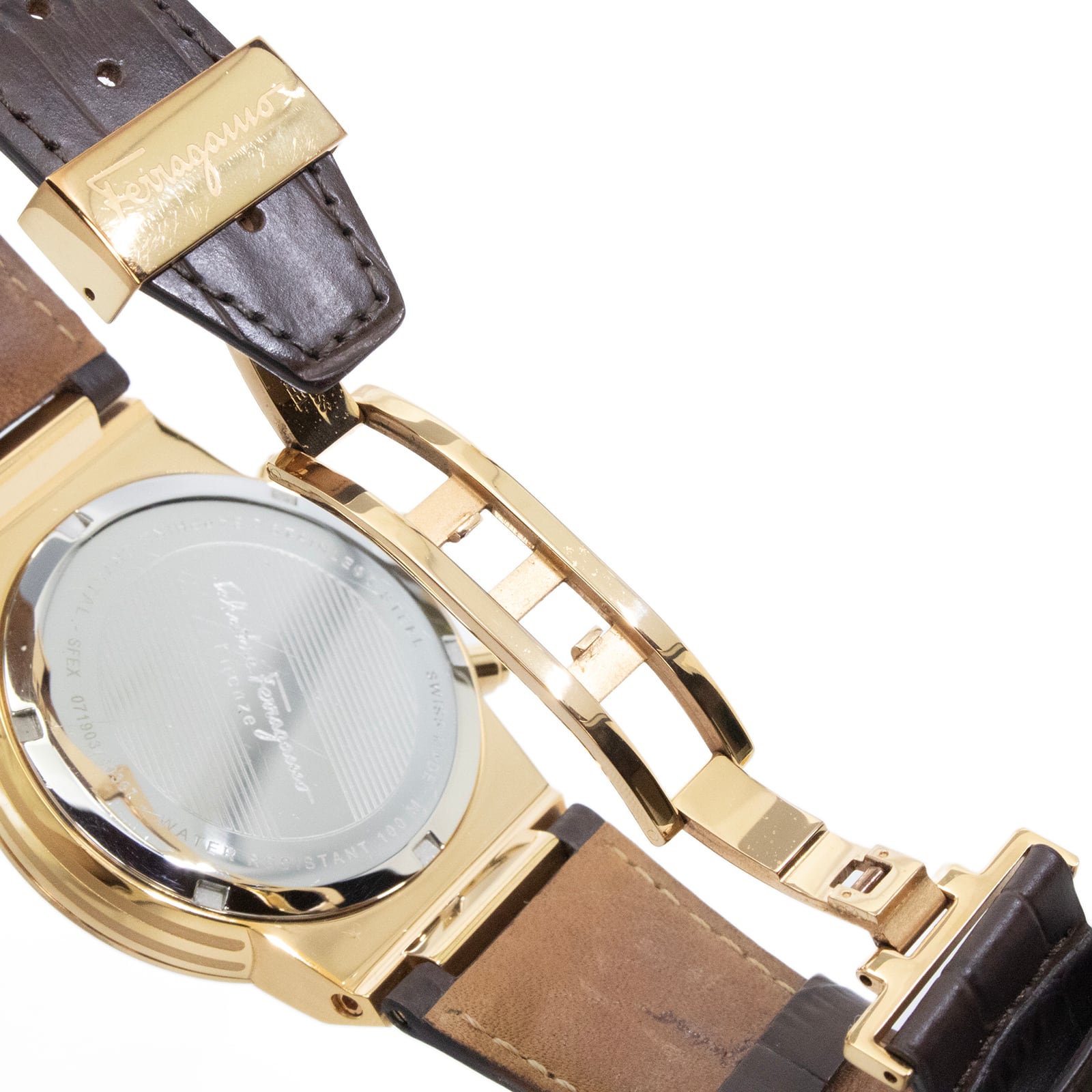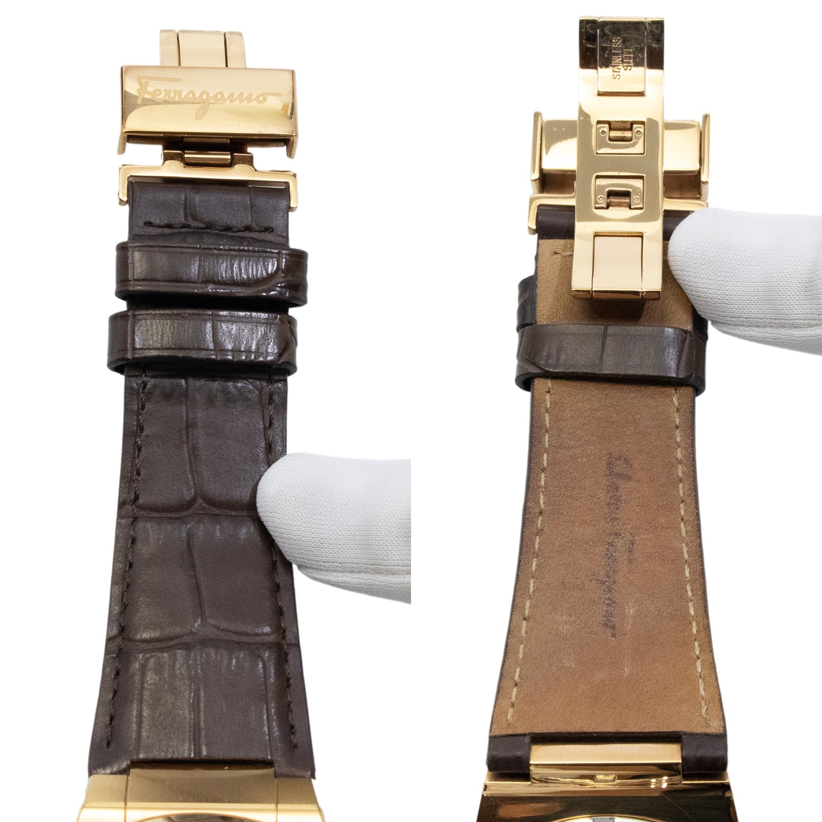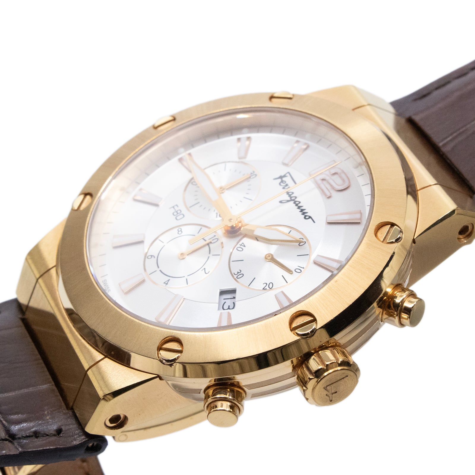こちらは、ピンクゴールドの輝きが圧倒的な存在感を放つ、フェラガモのF-80・腕時計でございます。