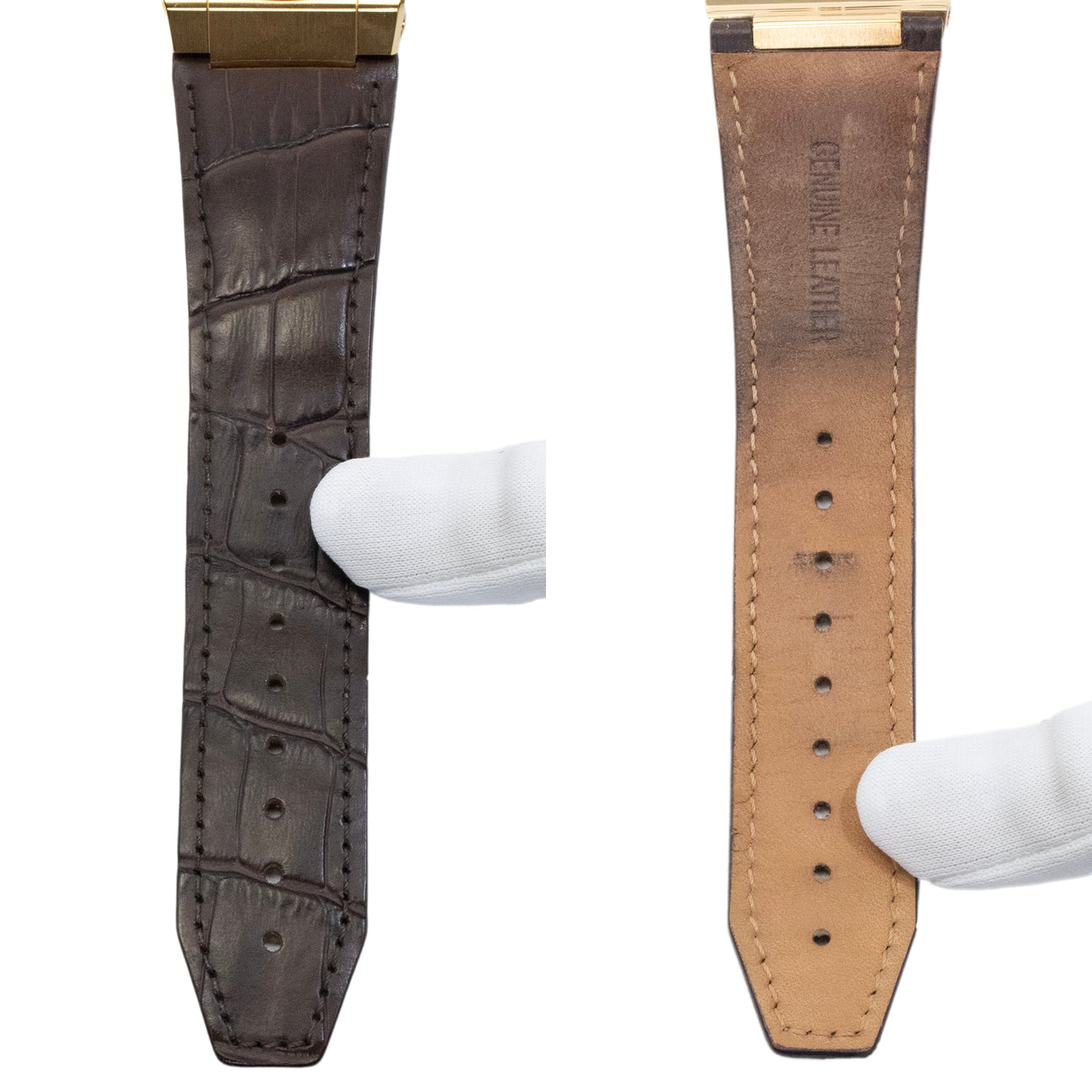 シルバーの文字盤に配されたクロコグラフの意匠が、知性と躍動感を同時に演出いたします。