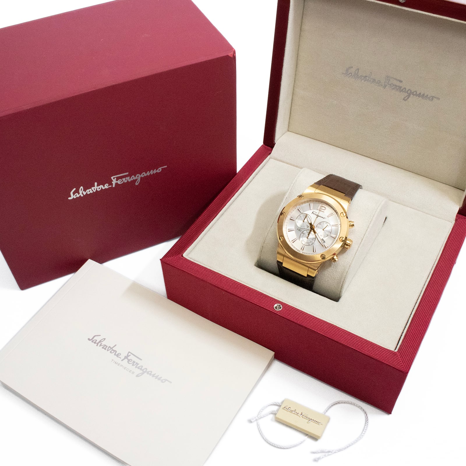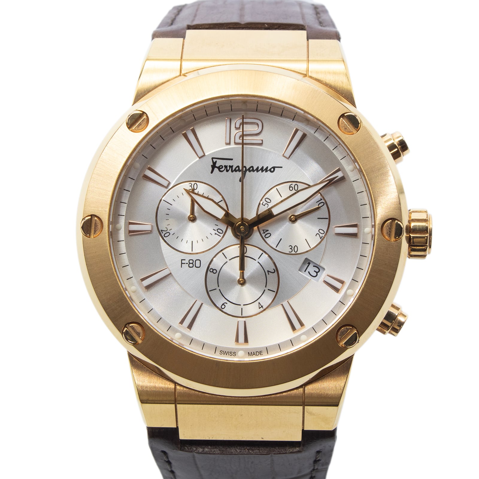 稼働品 送料無料 フェラガモ 腕時計 クォーツ メンズ F-80 SFEX00419 シルバー ピンクゴールド クロノグラフ ロゴ ハイブランド 綺麗 X496