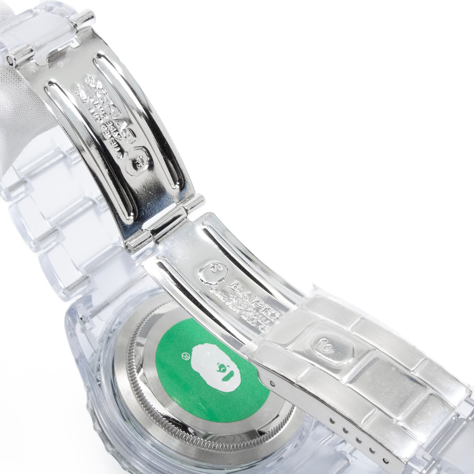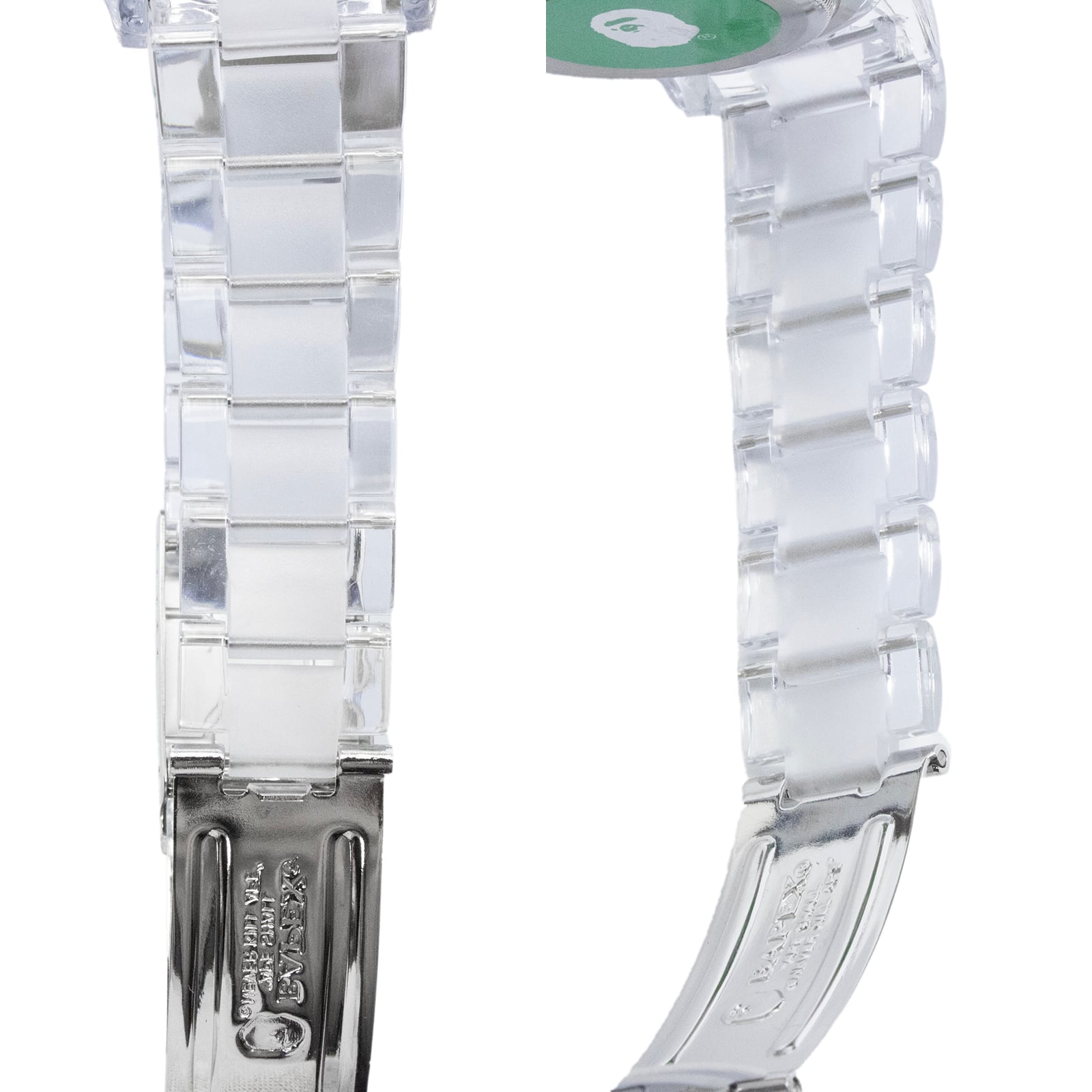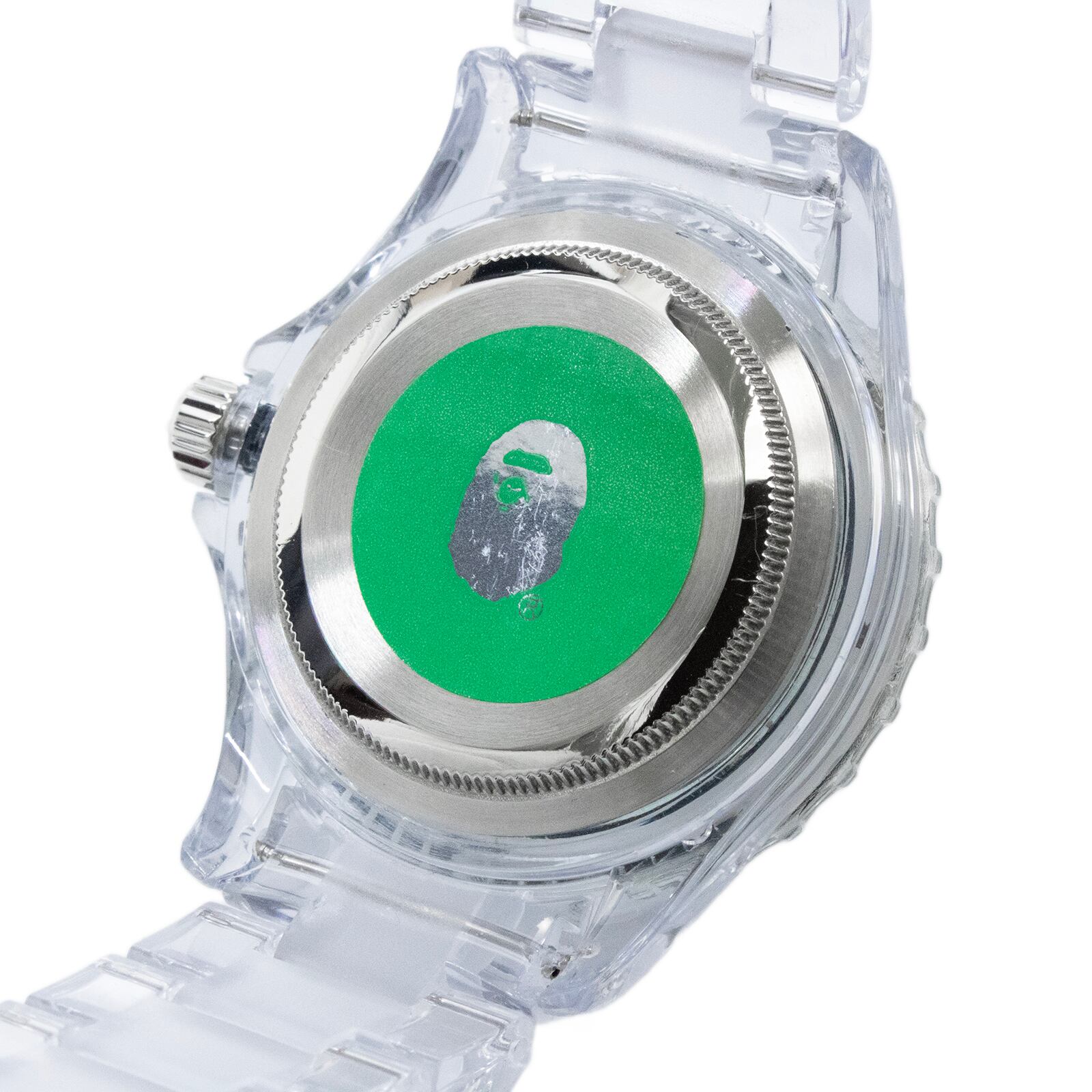 こちらは、透明なクリア素材が都会的な遊び心を演出する、ア ベイシング エイプの腕時計でございます。