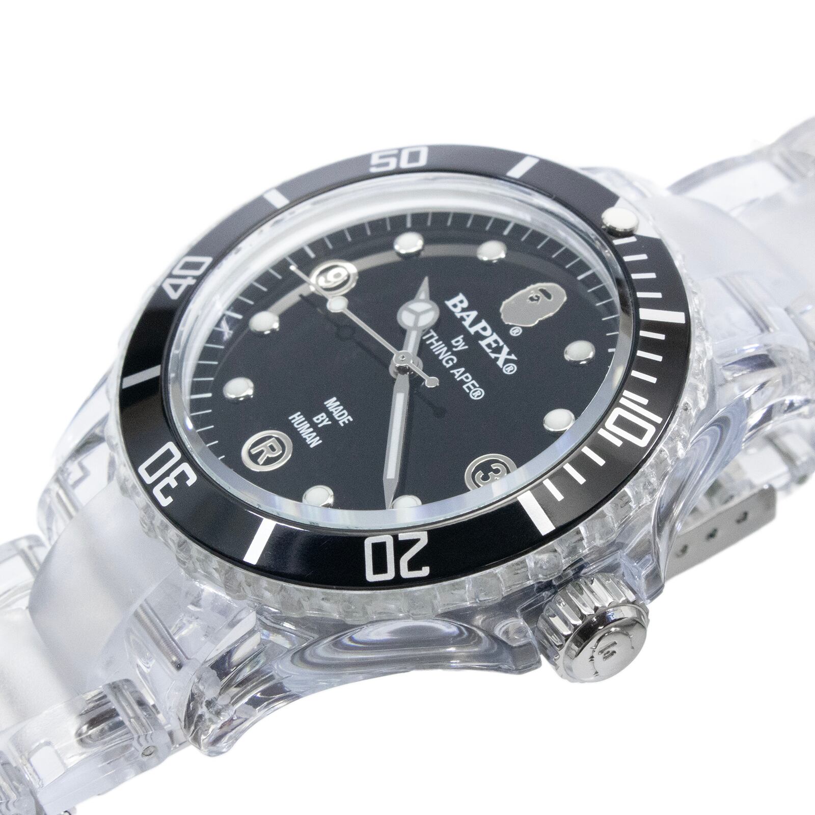 稼働品 送料無料 ベイプ 腕時計 クォーツ 3針 メンズ BAPEX 黒 珍しい レアモデル Y2K 透明 スケルトン クリア ロゴ マーク 人気 綺麗 Q217