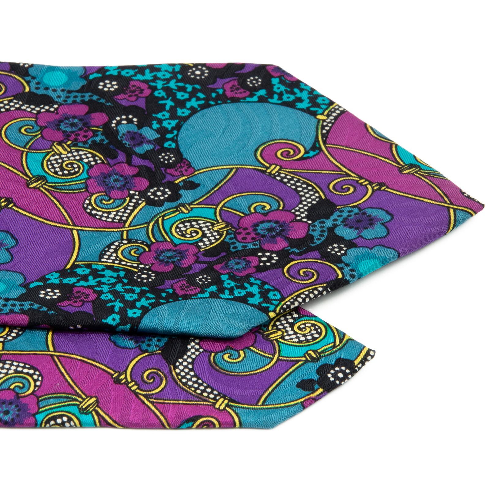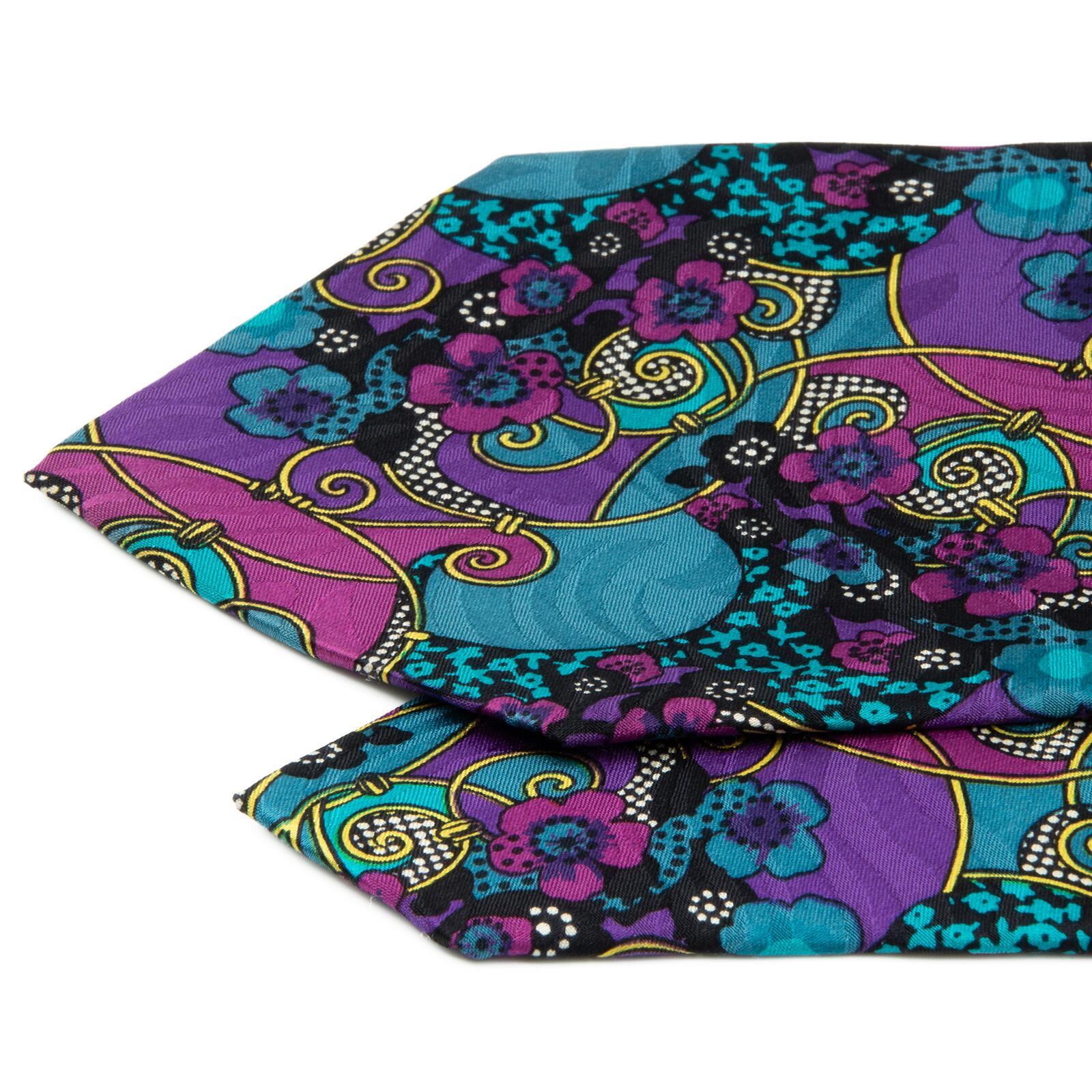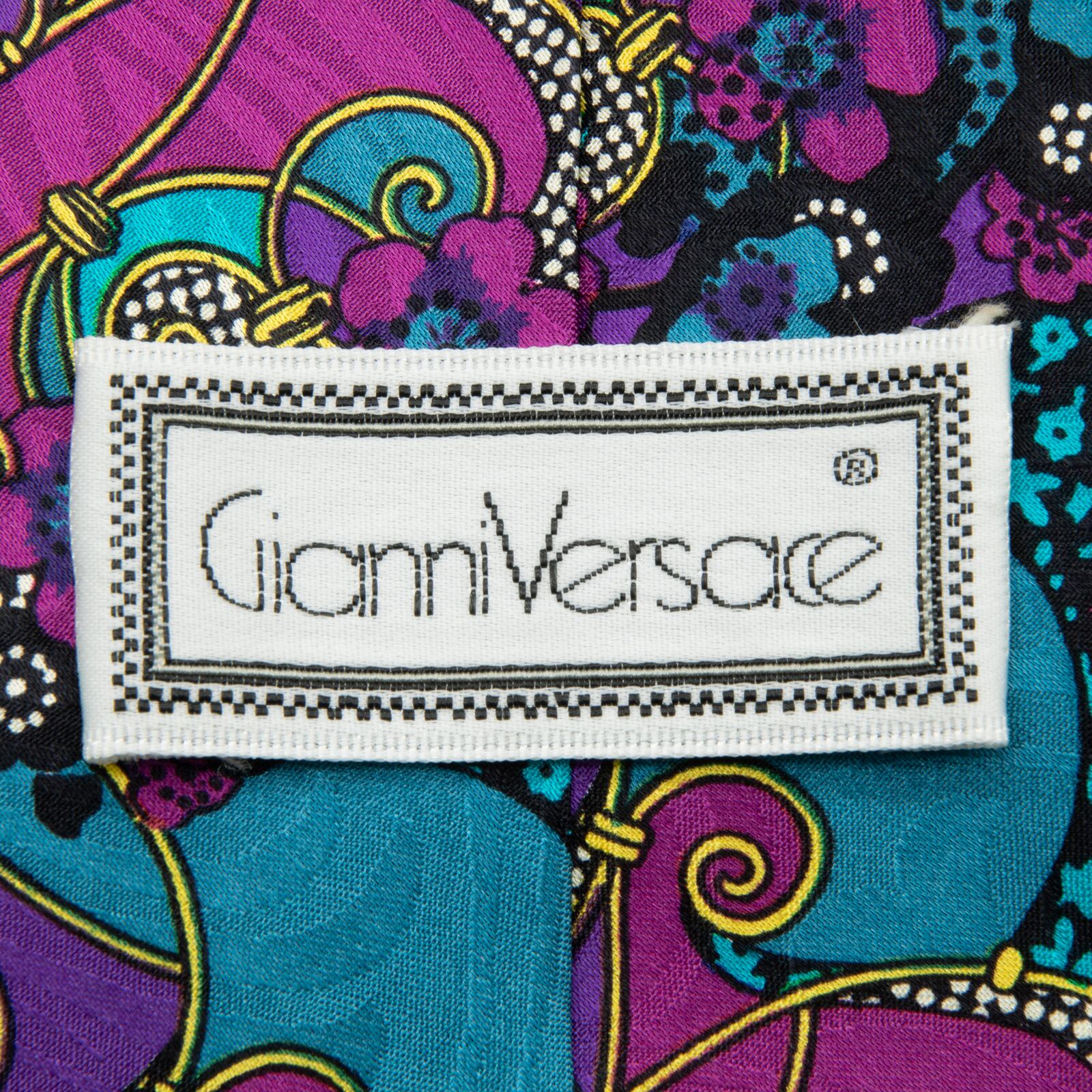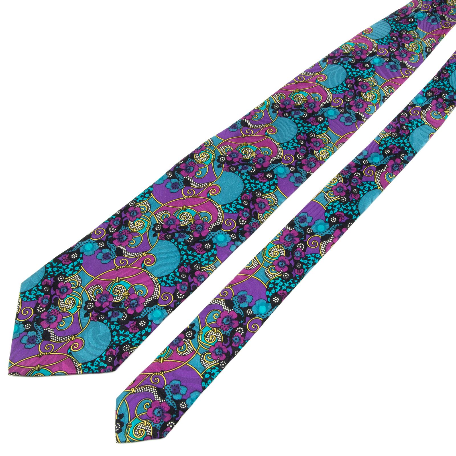 送料無料 ジャンニヴェルサーチェ ネクタイ レギュラータイ シルク 青緑色 パープル 赤紫色 黒 総柄 Y2K 光沢 花 派手 ハイブランド P308
