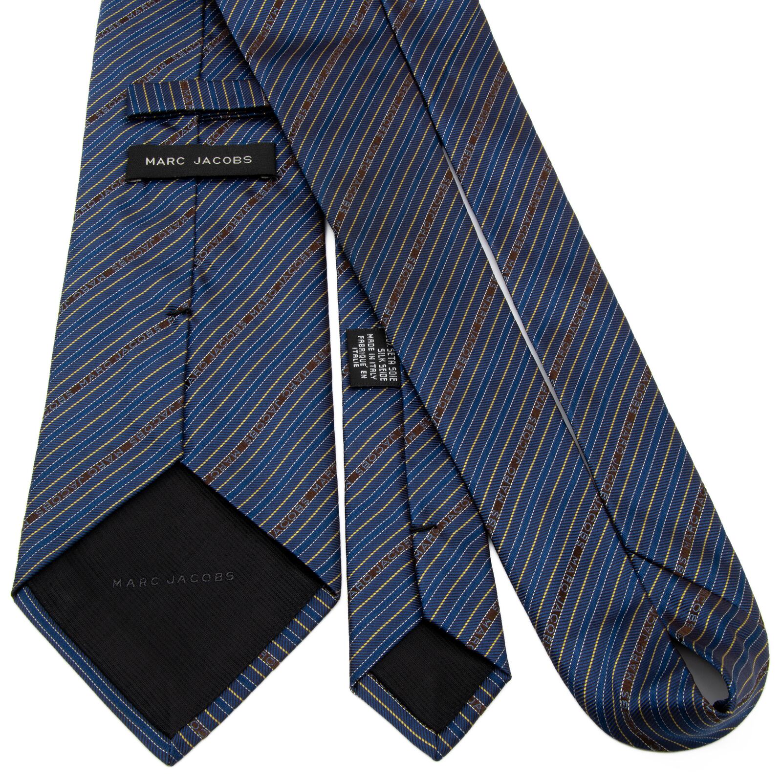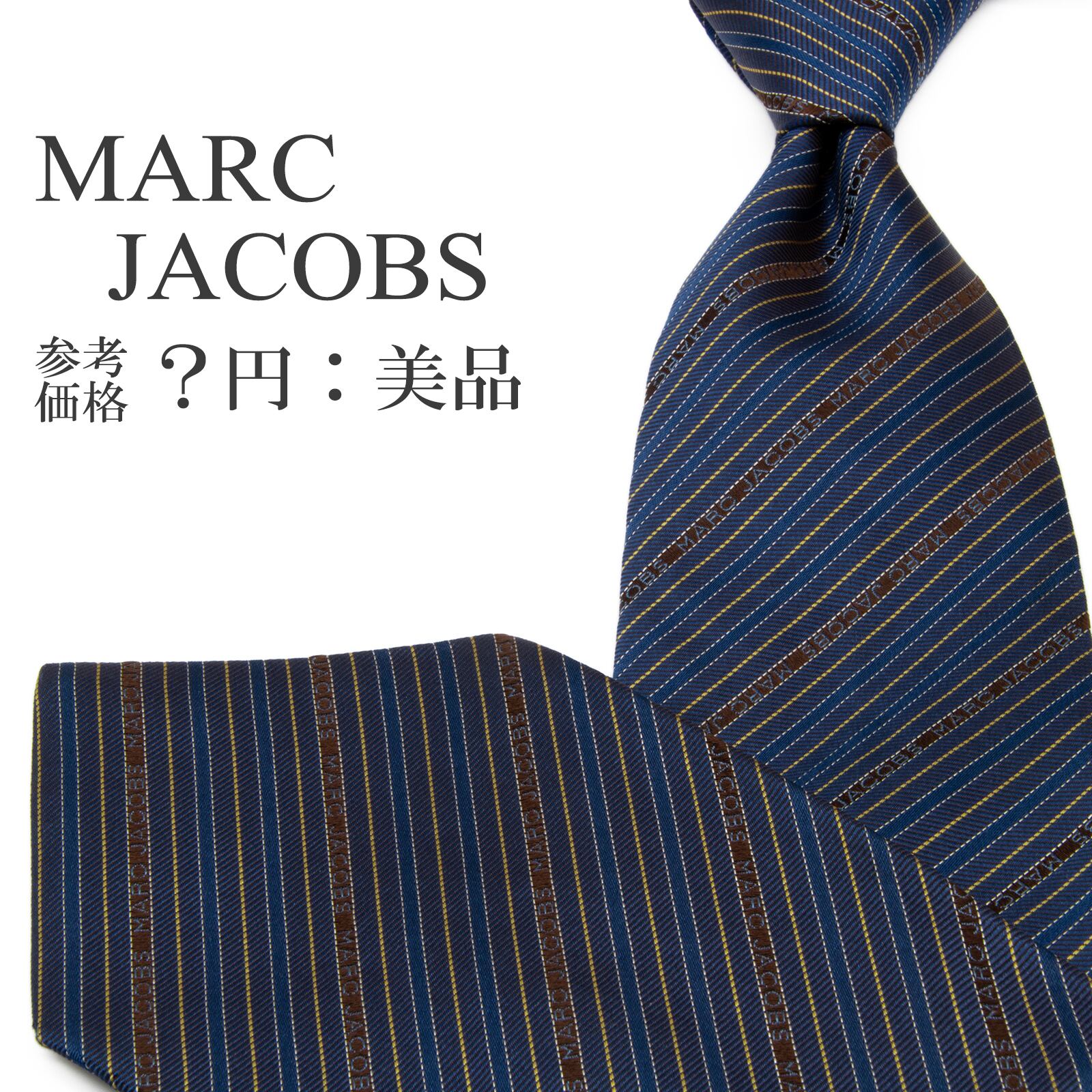 送料無料 マークジェイコブス ネクタイ ジャガード ネイビーブルー 焦げ茶色 ゴールド シルバー ストライプ ロゴ ブランド イタリア P555