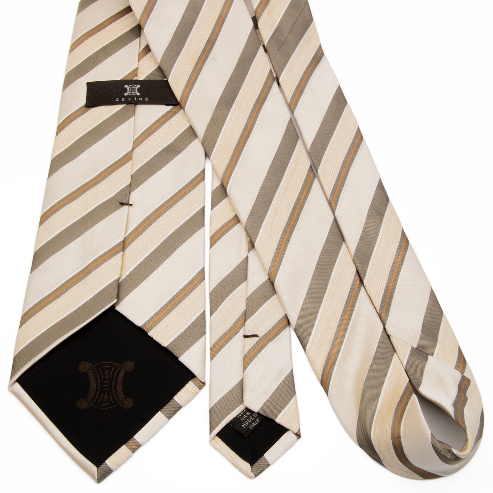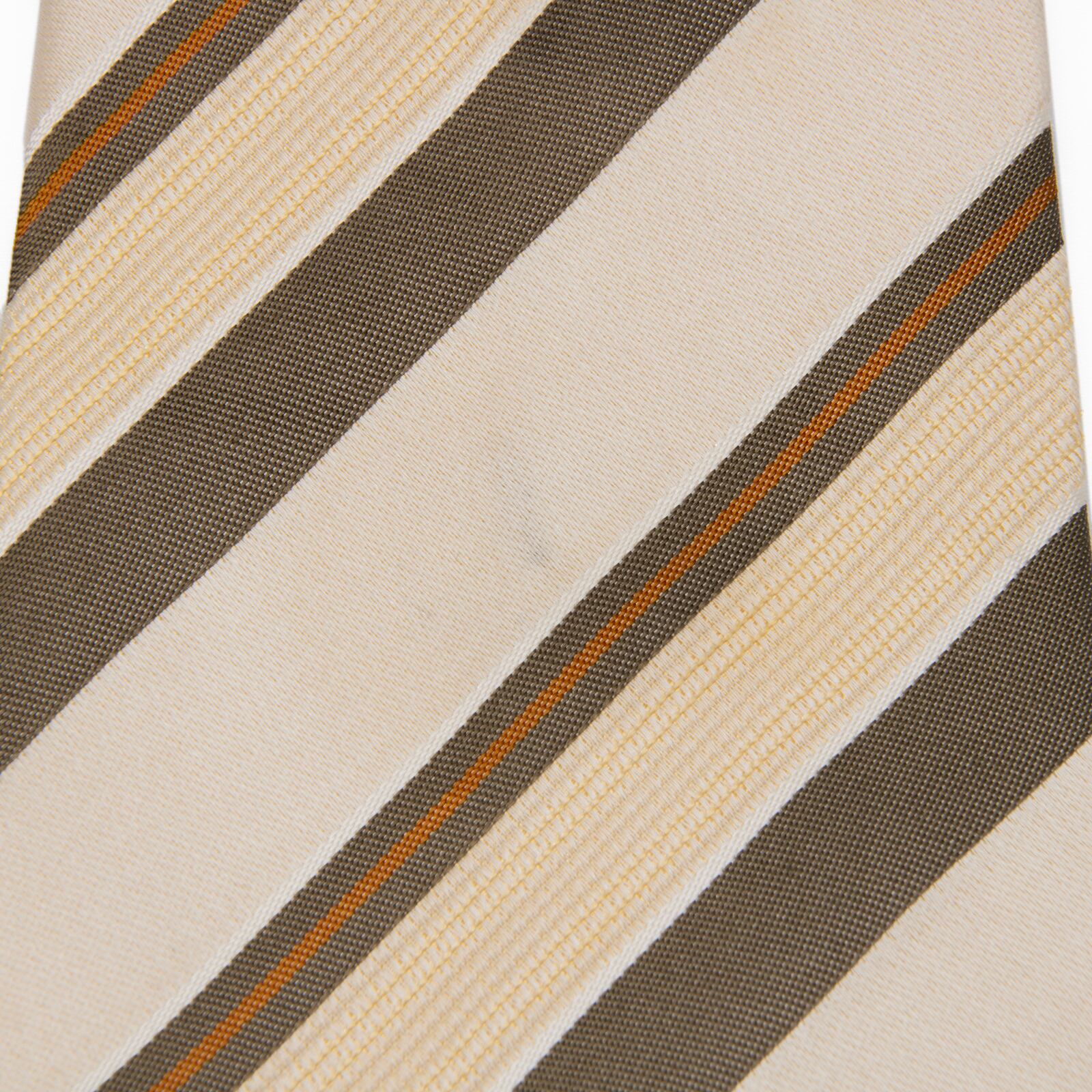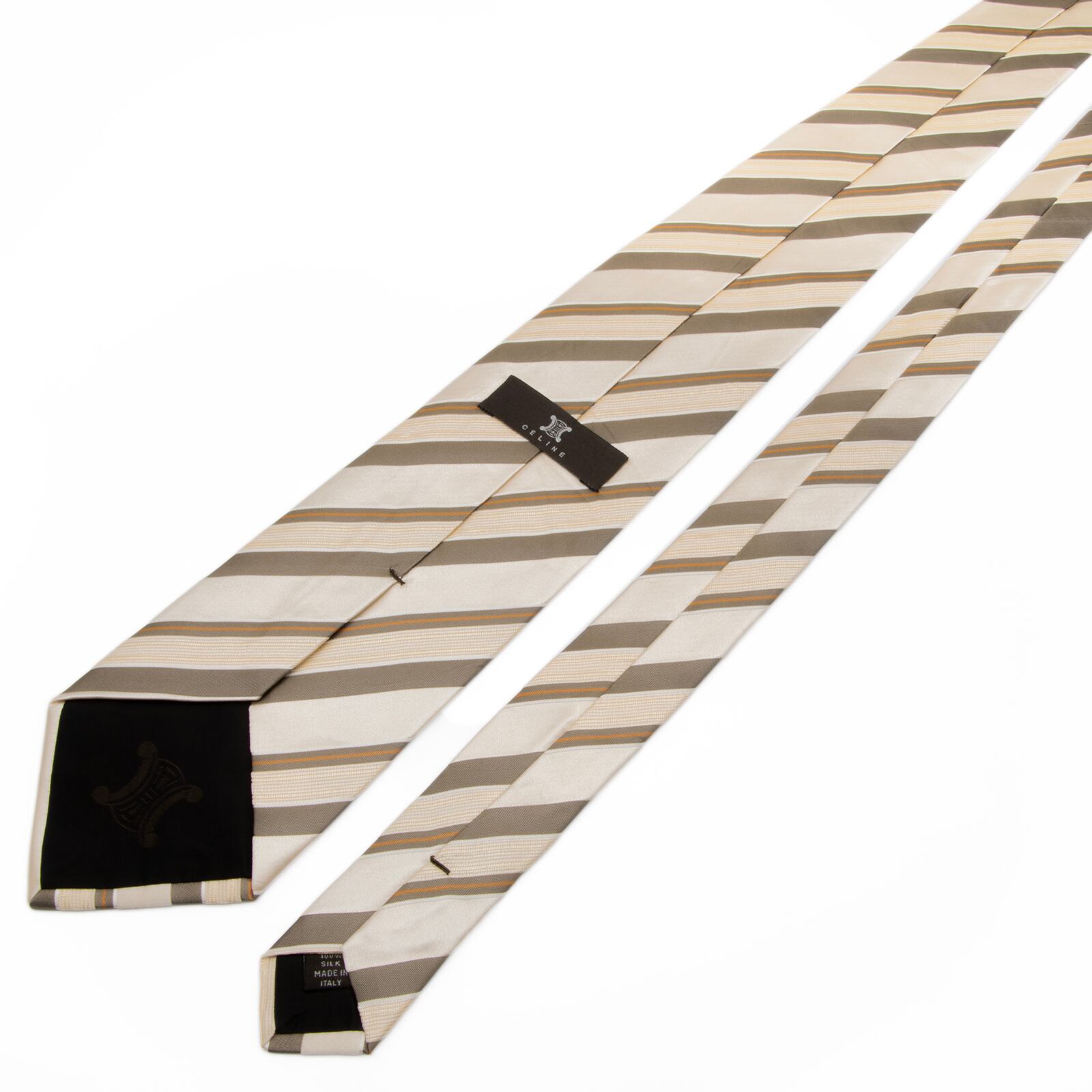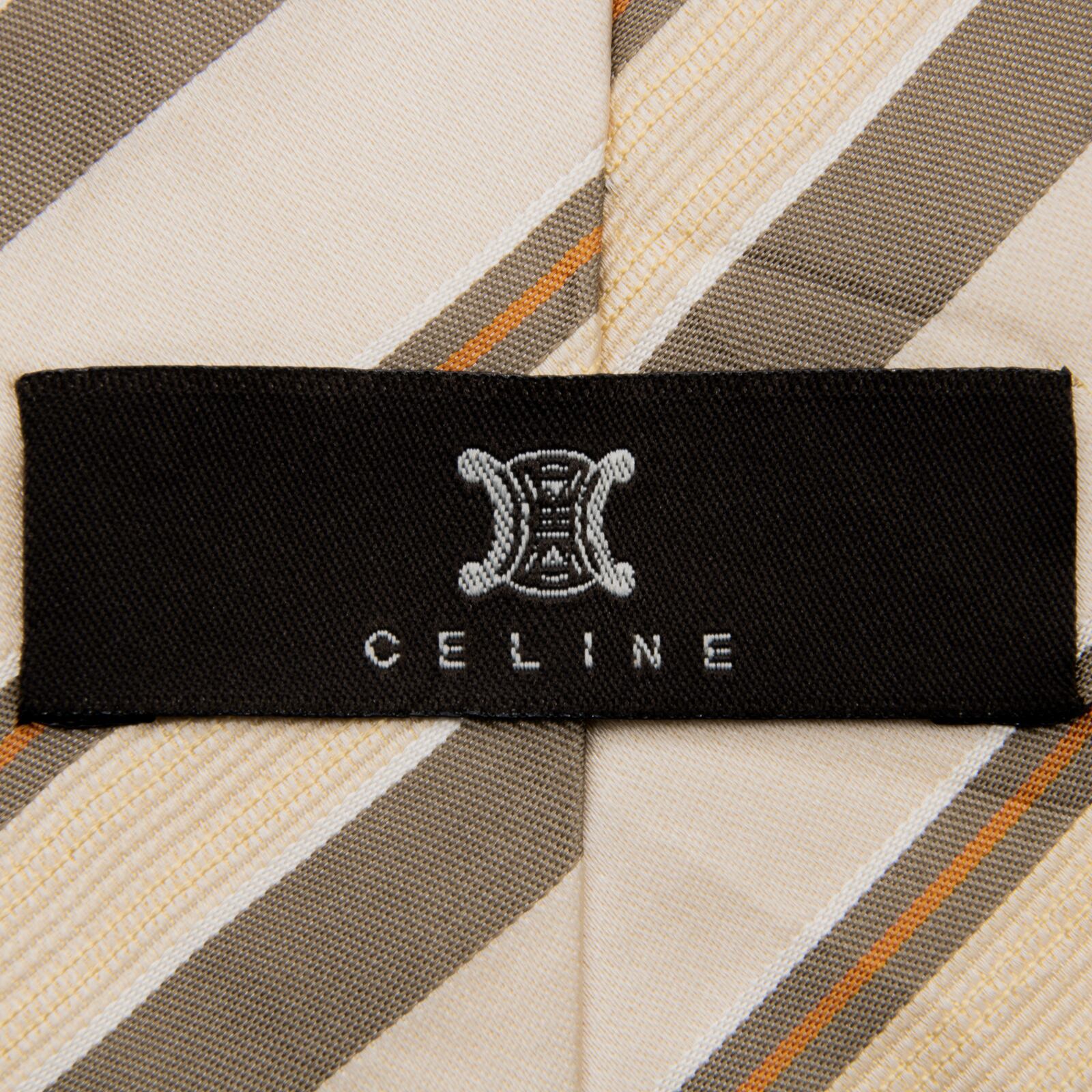 送料無料 セリーヌ ネクタイ ジャガードタイ シルク ベージュ グリーングレー オレンジ ストライプ 光沢 シンプル ハイブランド 綺麗 P583
