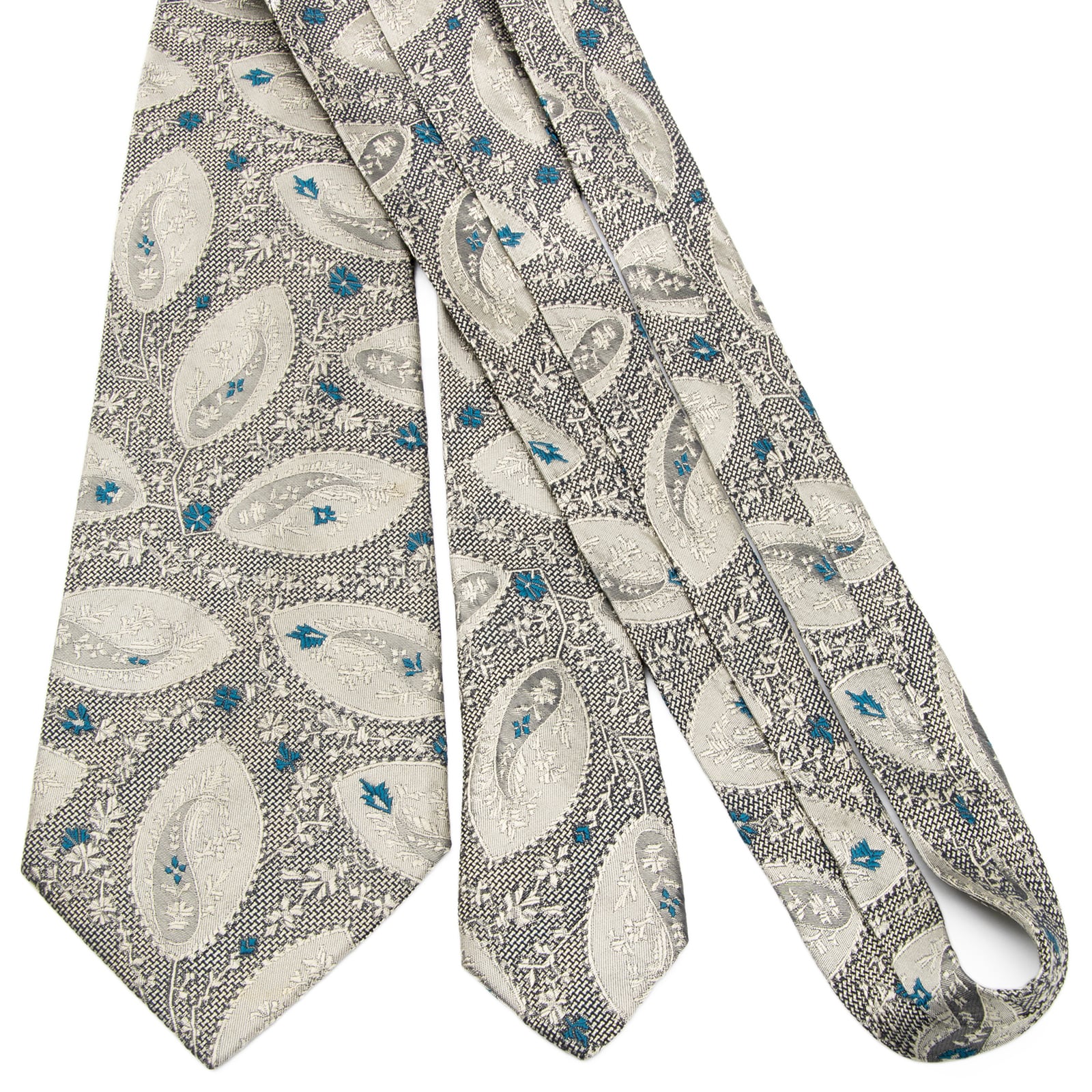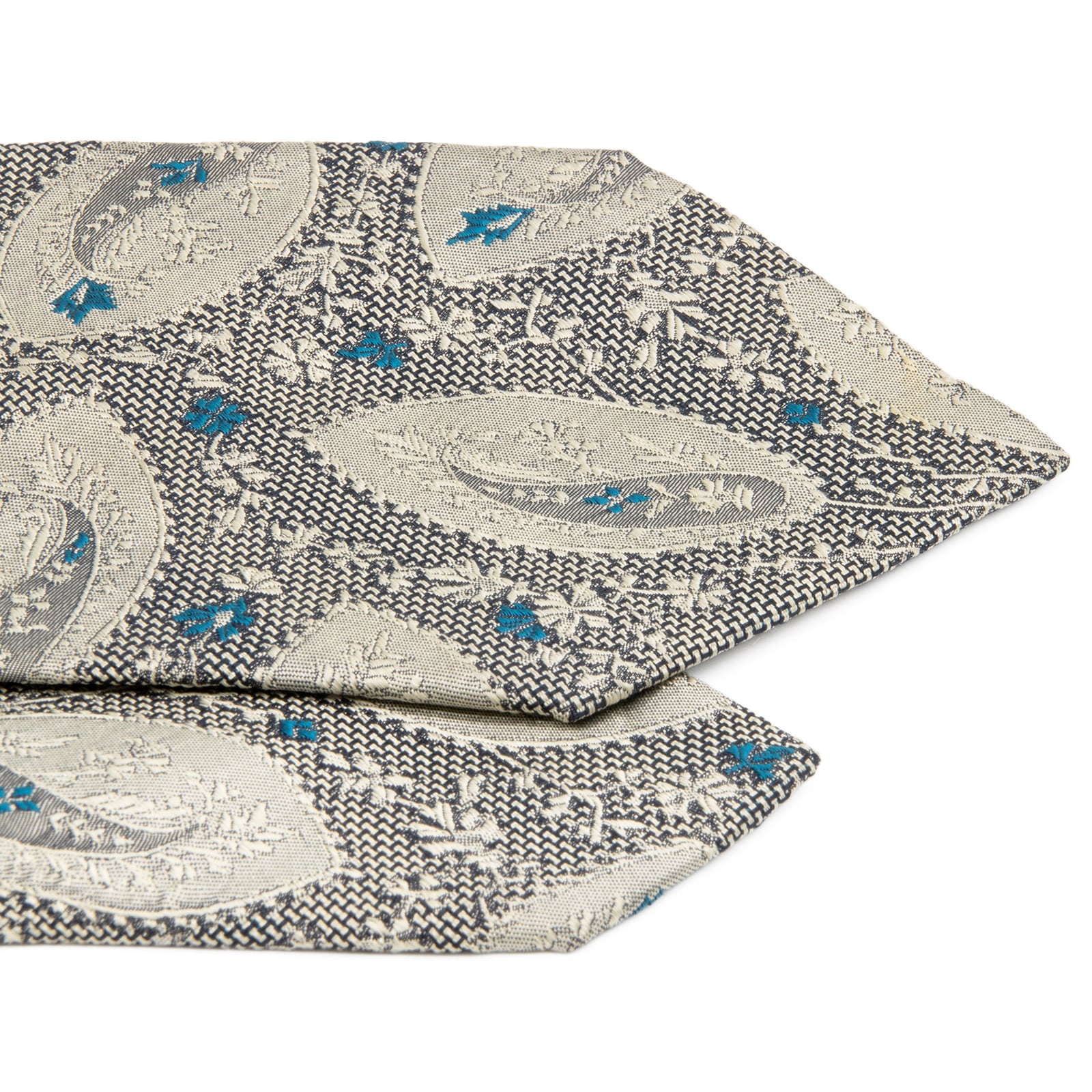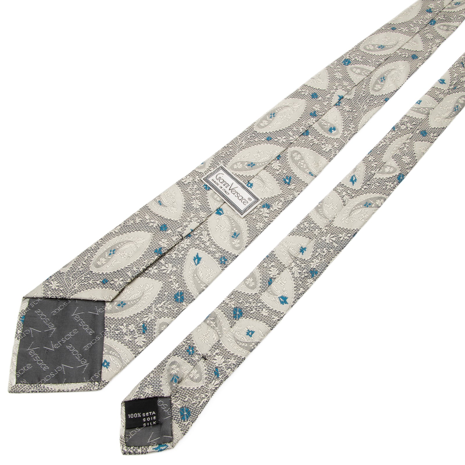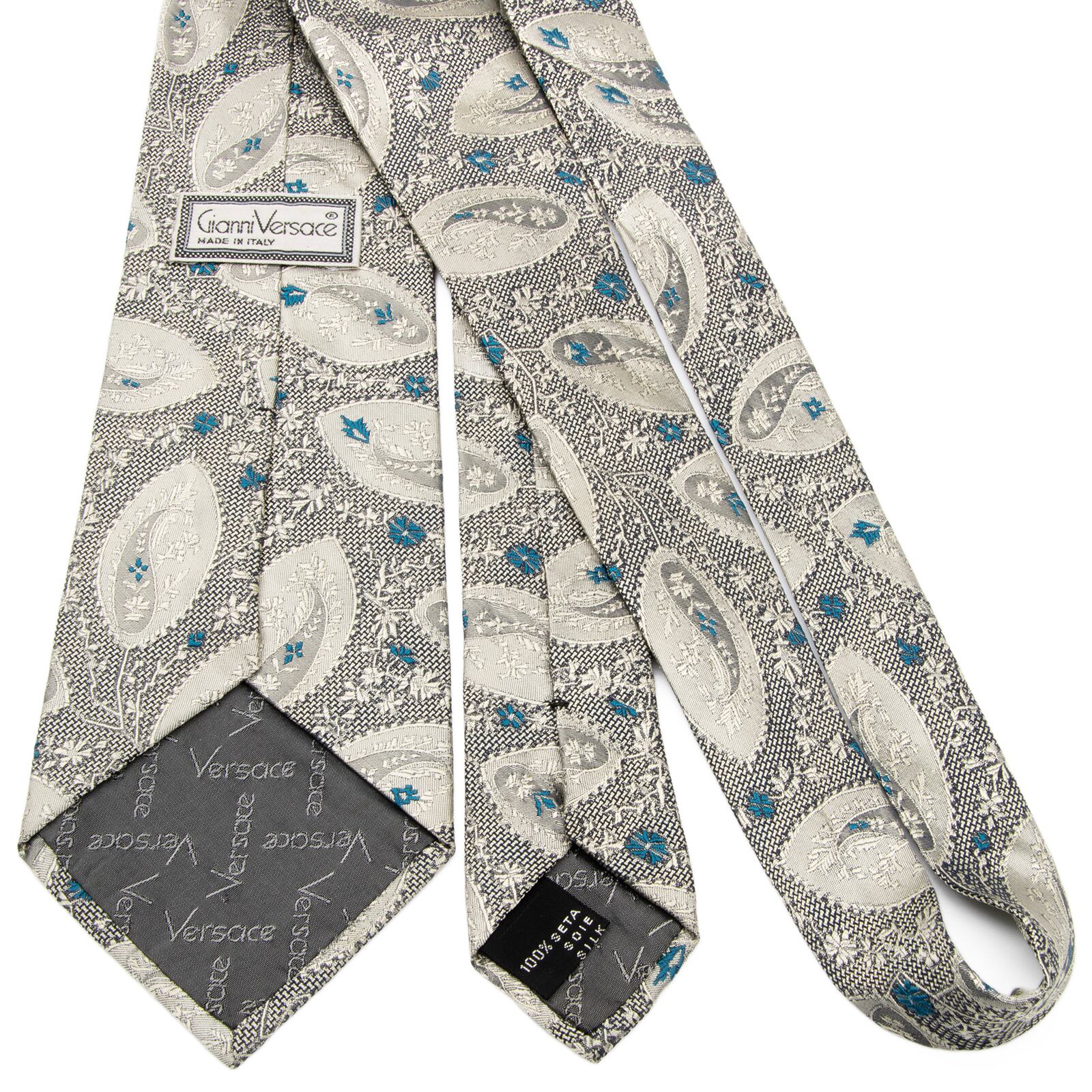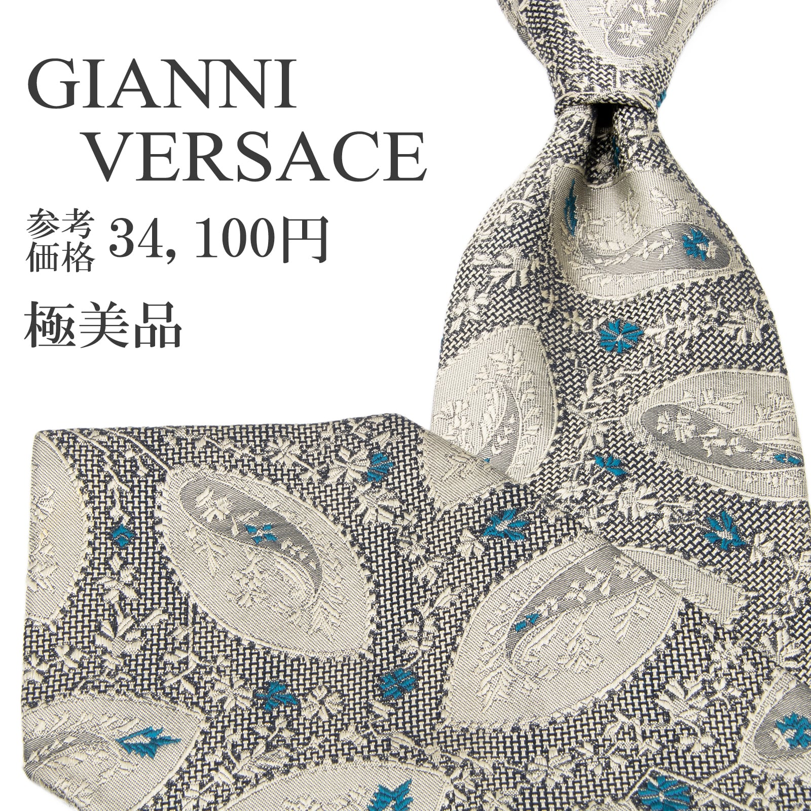 送料無料 ジャンニヴェルサーチェ ネクタイ レギュラータイ ジャガード シルバー 青緑 黒 ペイズリー Y2K 光沢 花 ハイブランド 綺麗 P591