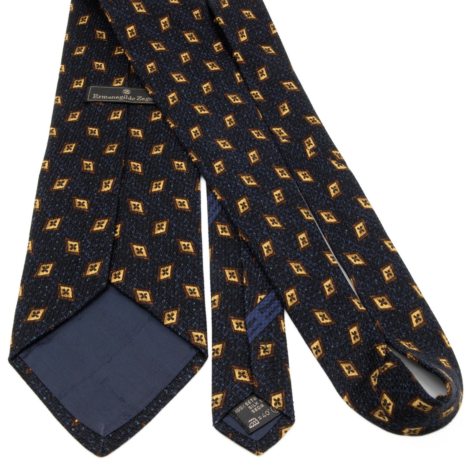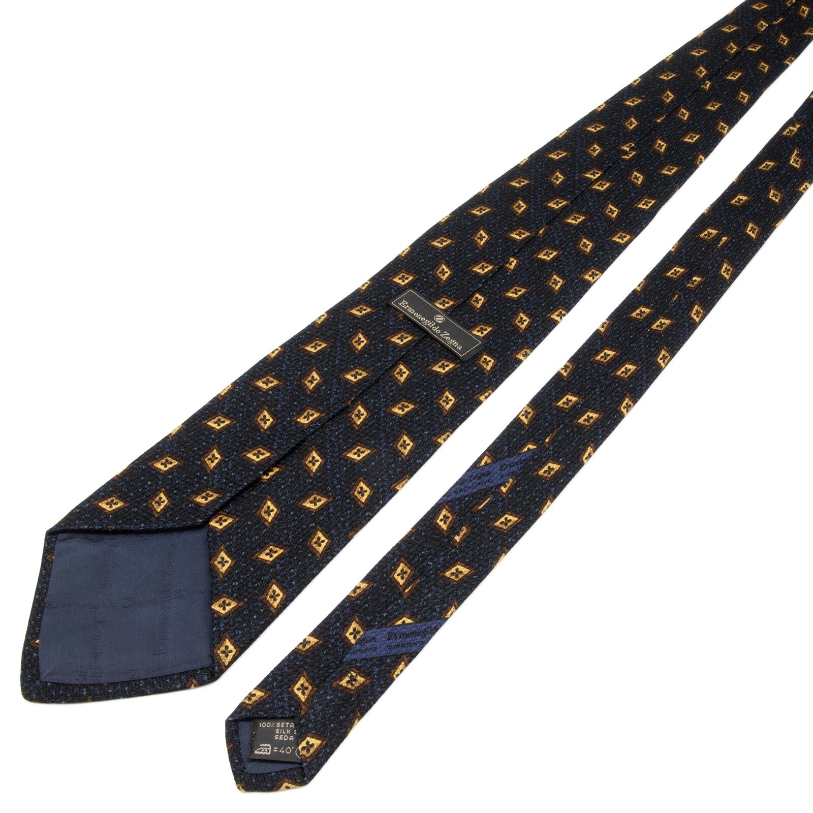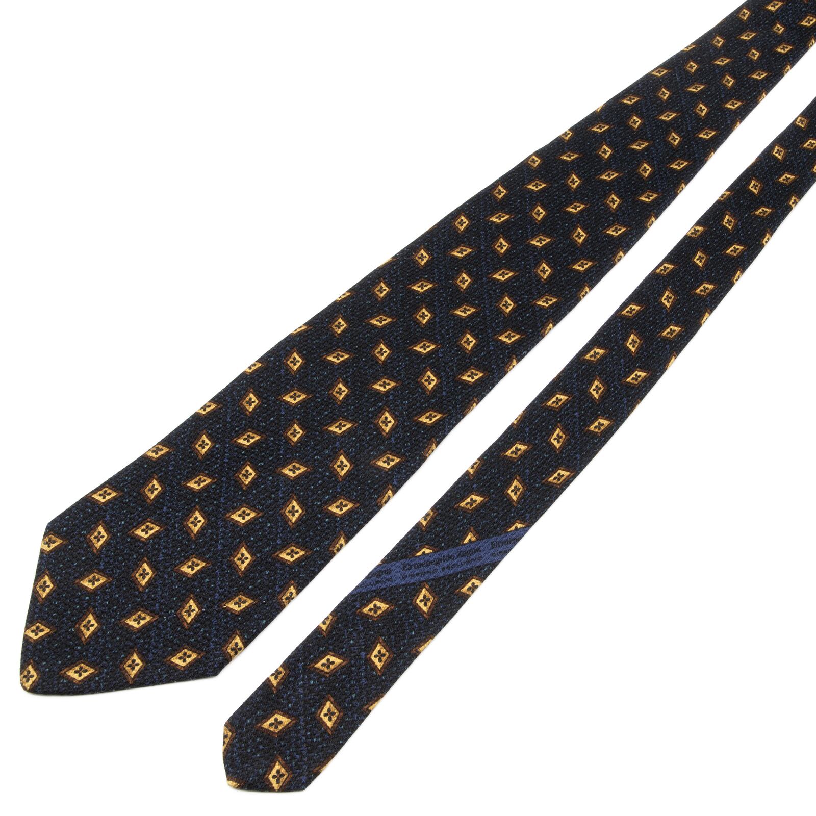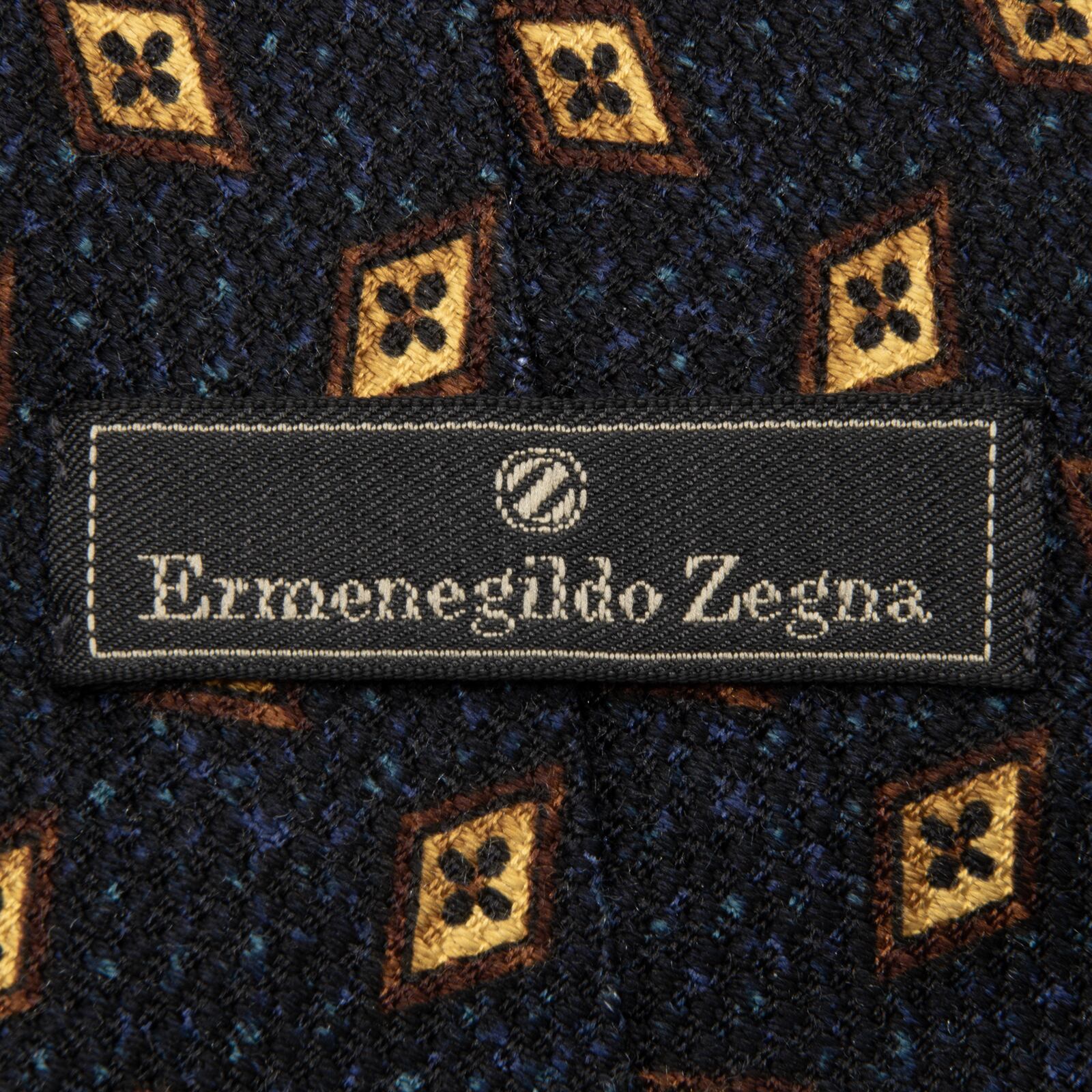 送料無料 ゼニア ネクタイ ジャガード シルク ネイビーブルー 茶色 ダークブラウン 小紋 Y2K ひし形 幾何学模様 ハイブランド 綺麗 P681