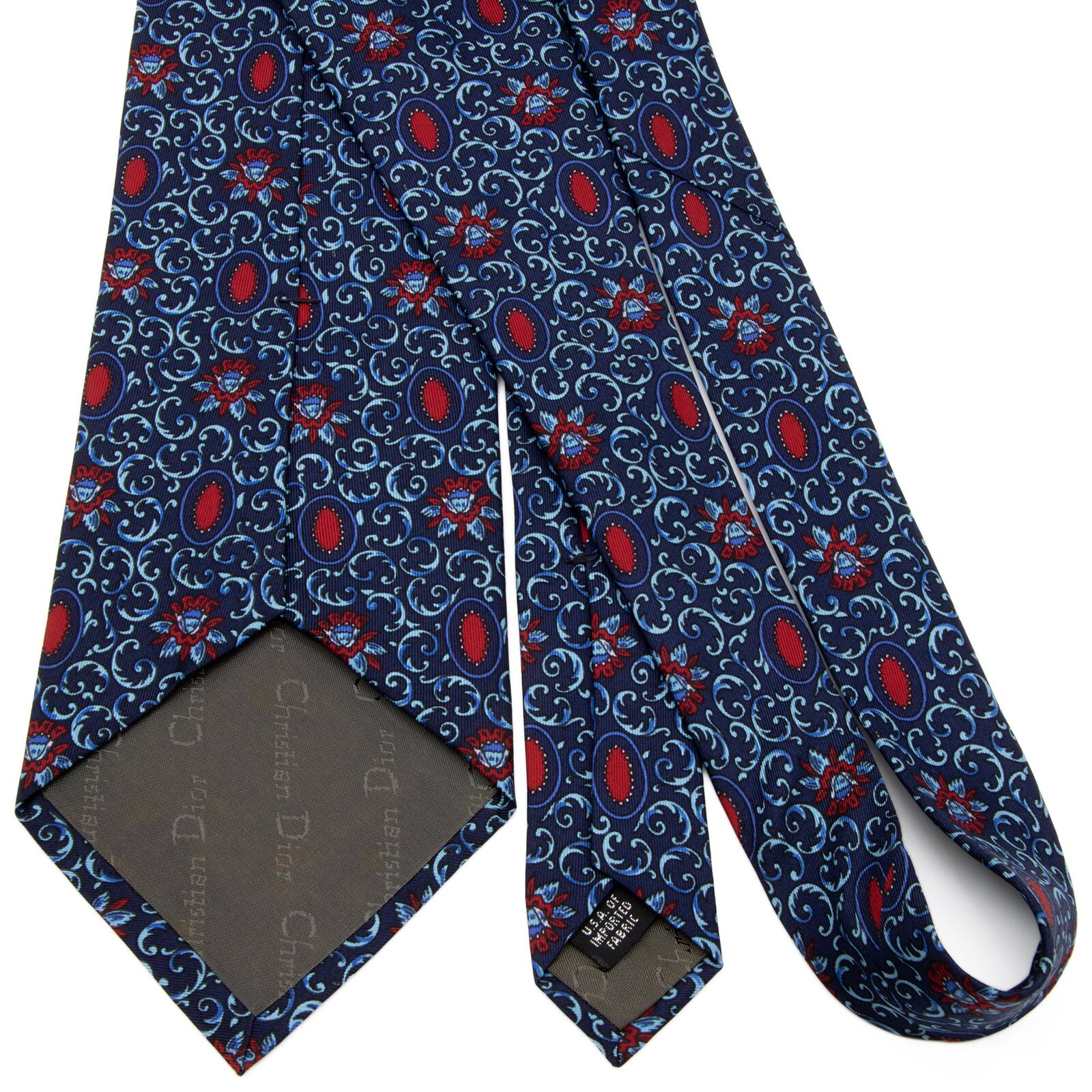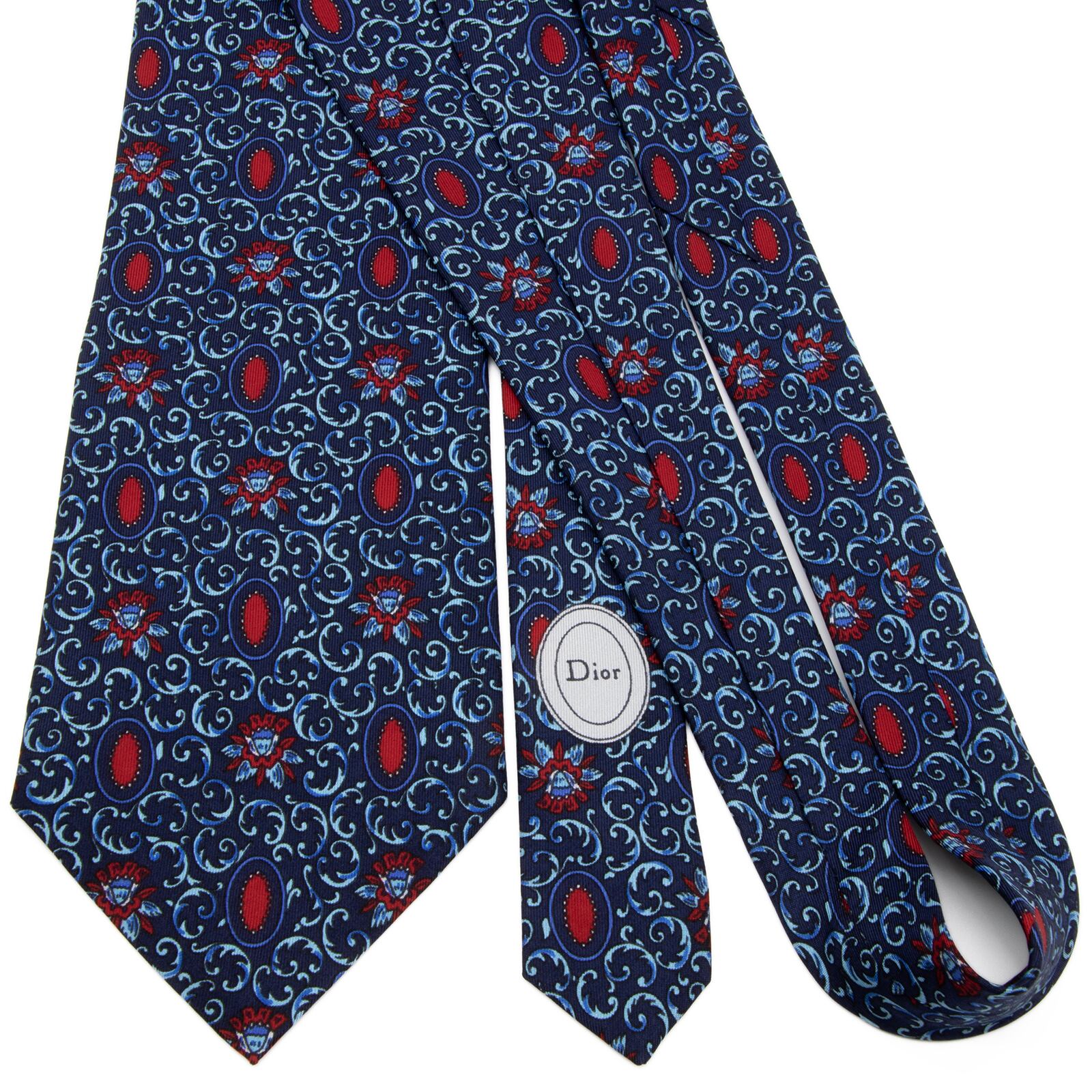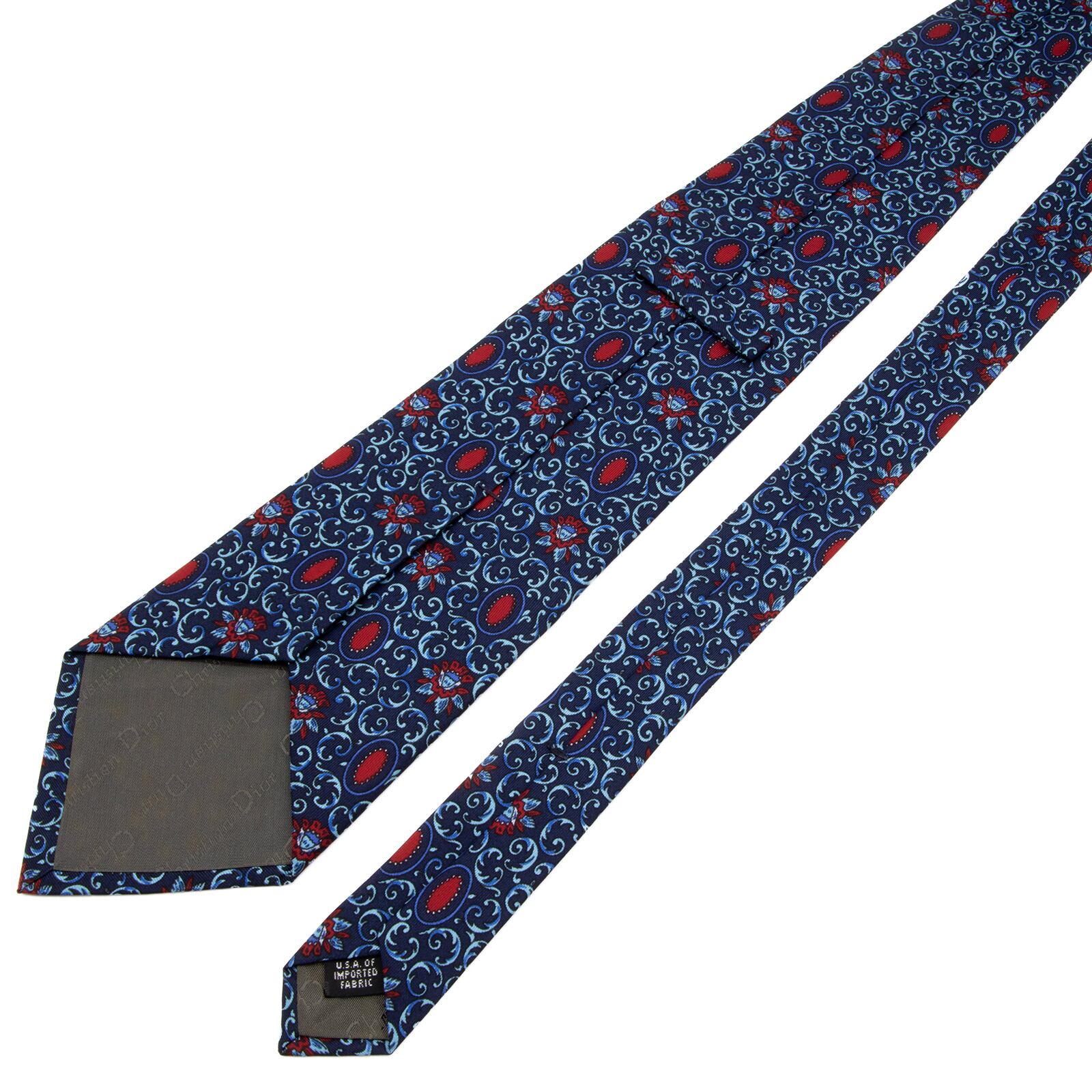 送料無料 ディオール ネクタイ シルク ネイビーブルー 水色 青 赤 レッド 総柄 Y2K 花 フラワー ハイブランド 珍しい おしゃれ 綺麗 P699