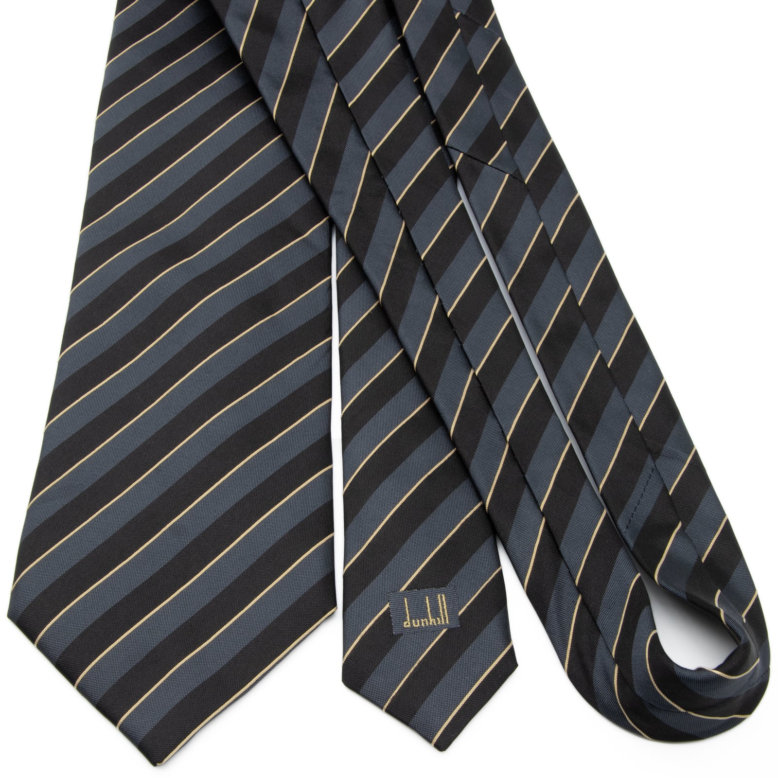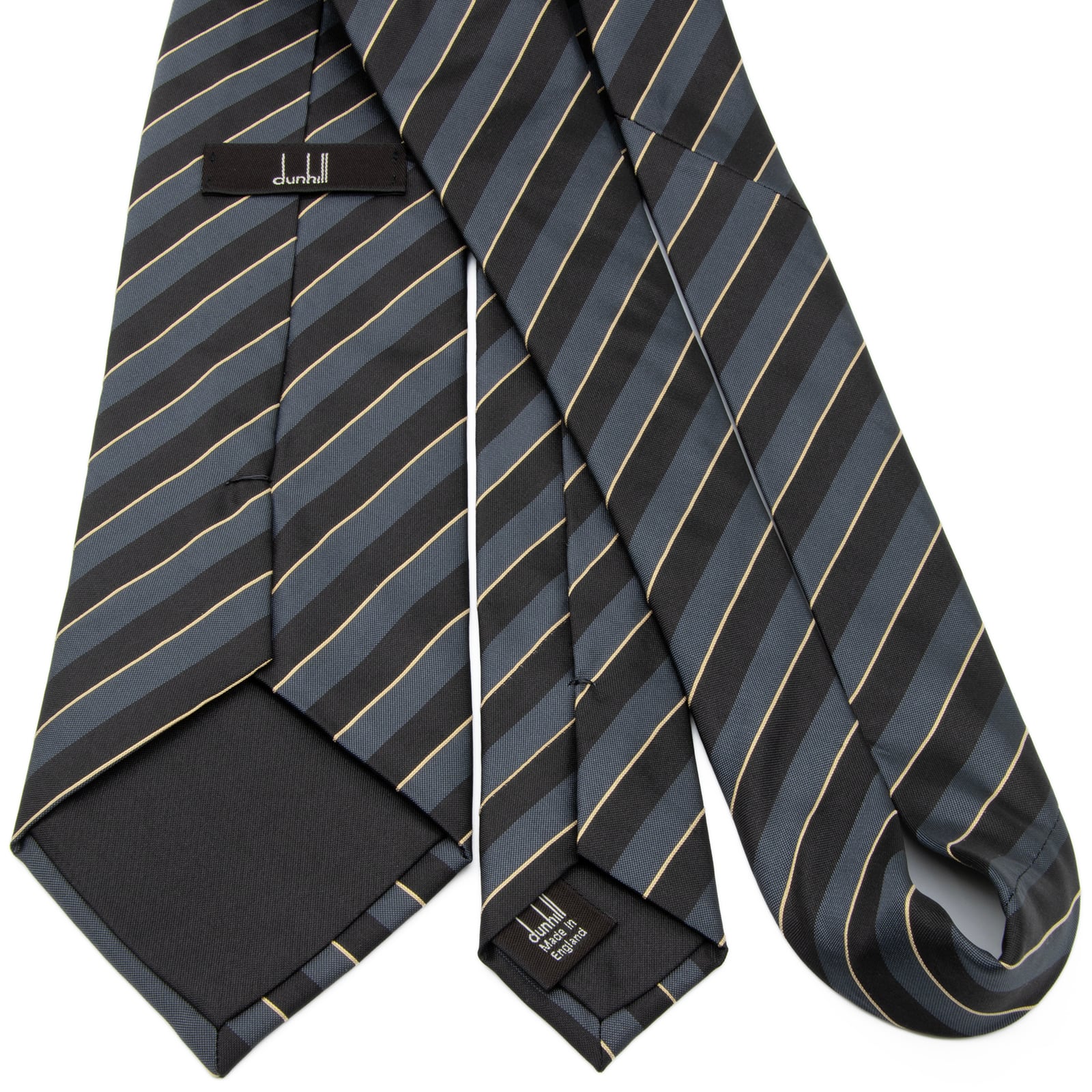 送料無料 ダンヒル ネクタイ レギュラータイ ジャガードタイ シルク 黒 ブラック グレー ベージュ ストライプ 光沢 ハイブランド 綺麗 P752