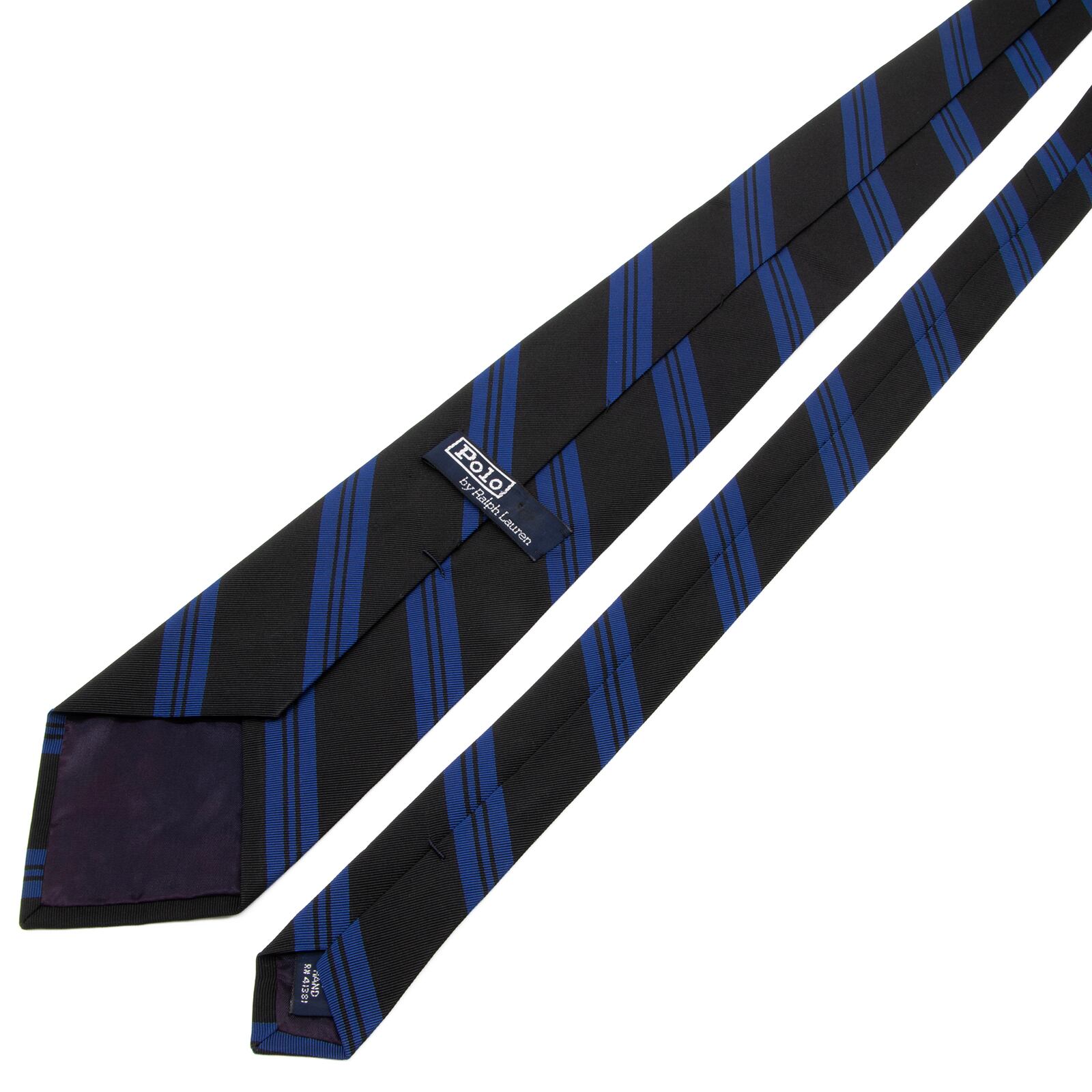 こちらは、ブラックとブルーの対比が目を惹きつける、ポロラルフローレンのネクタイでございます。