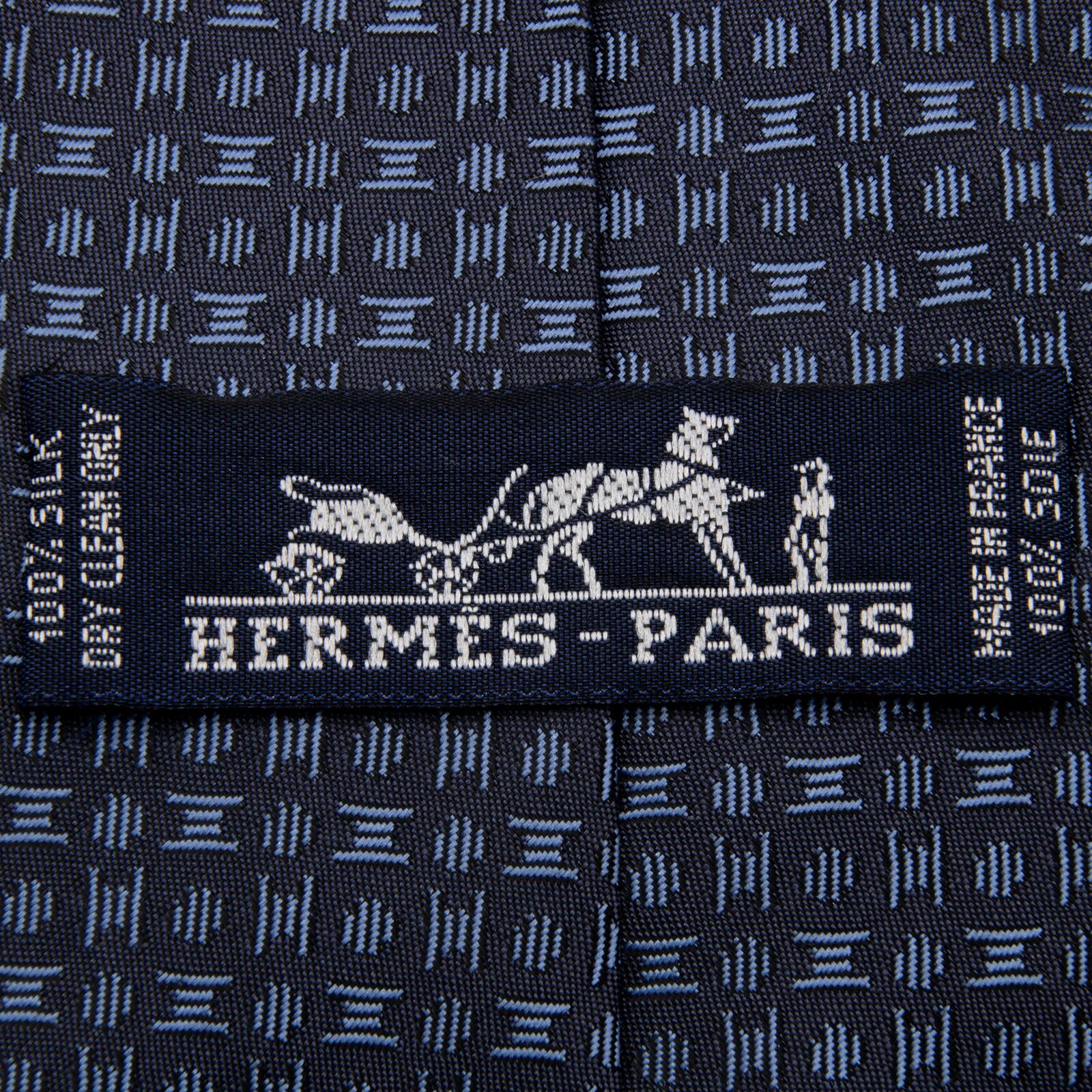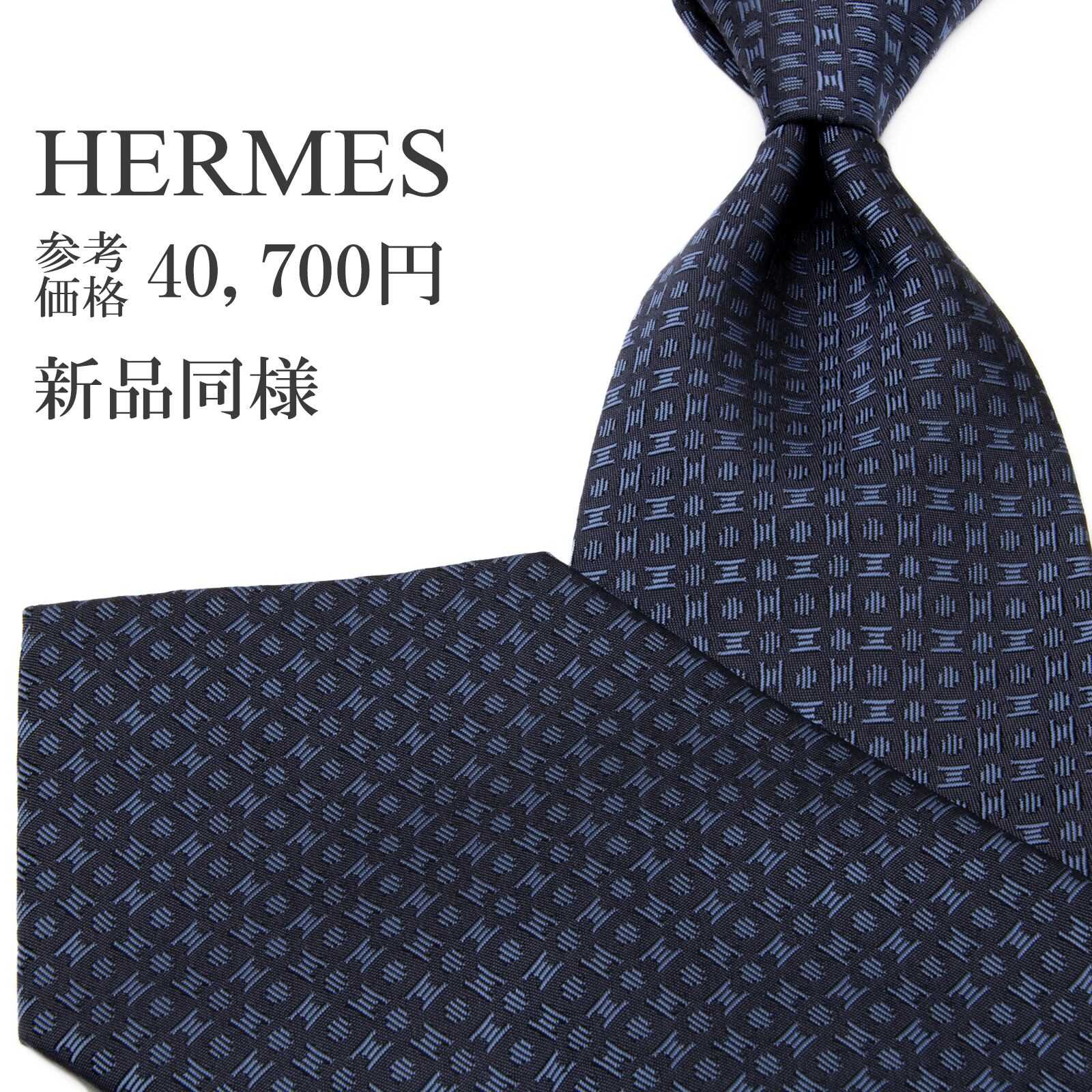 新品同様 送料無料 エルメス ネクタイ ジャガード シルク ネイビーブルー ビジネス 総柄 光沢 線 ライン シンプル ハイブランド 綺麗 P784