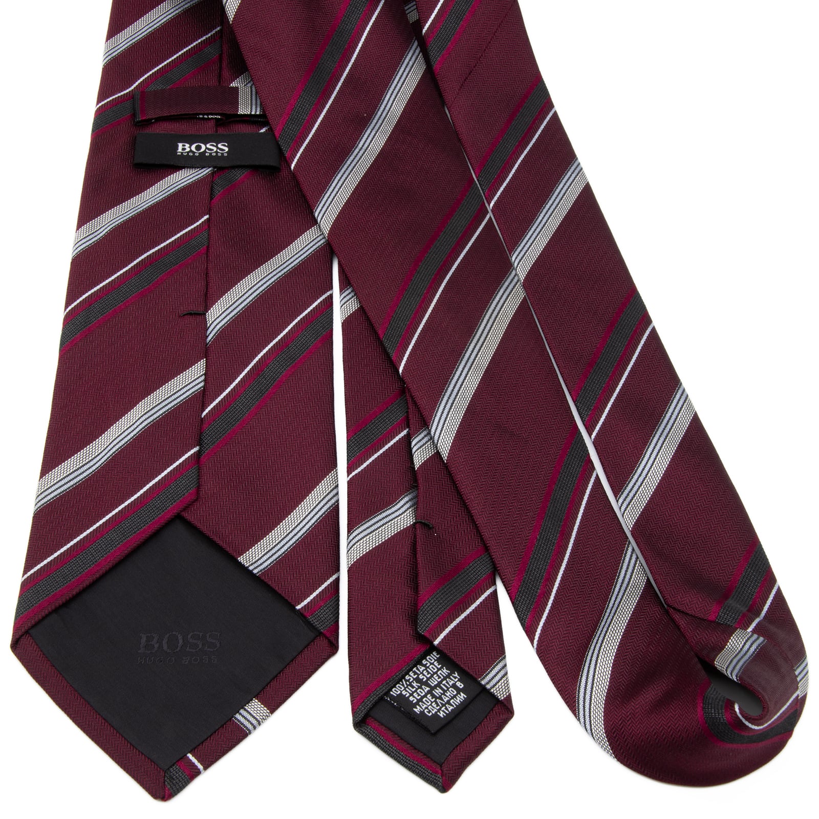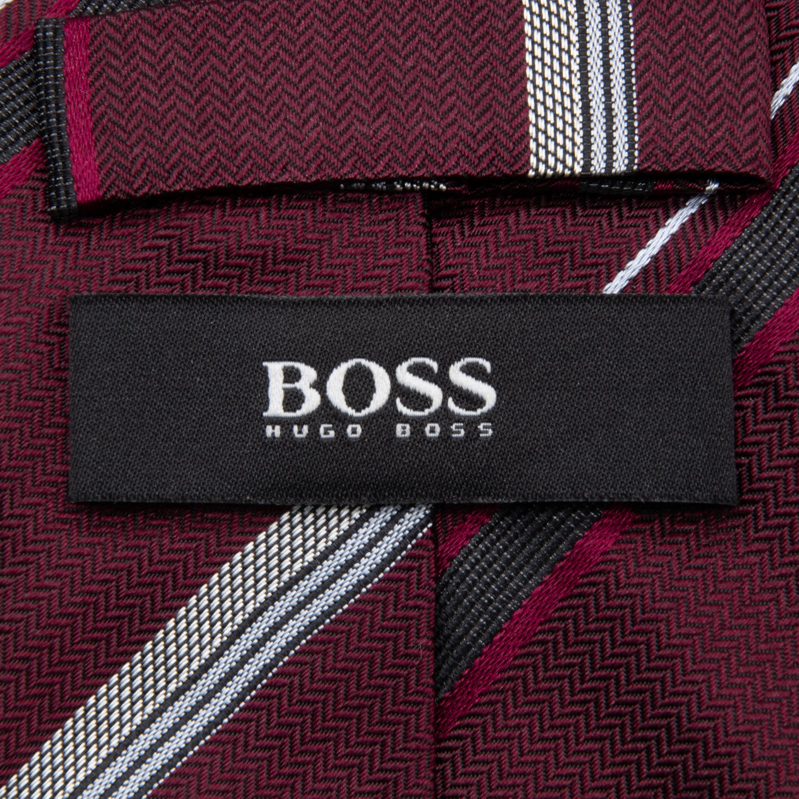 送料無料 ヒューゴボス ネクタイ レギュラータイ ジャガード 赤紫色 ボルドー 黒 シルバー ストライプ シンプル ハイブランド 綺麗 P793