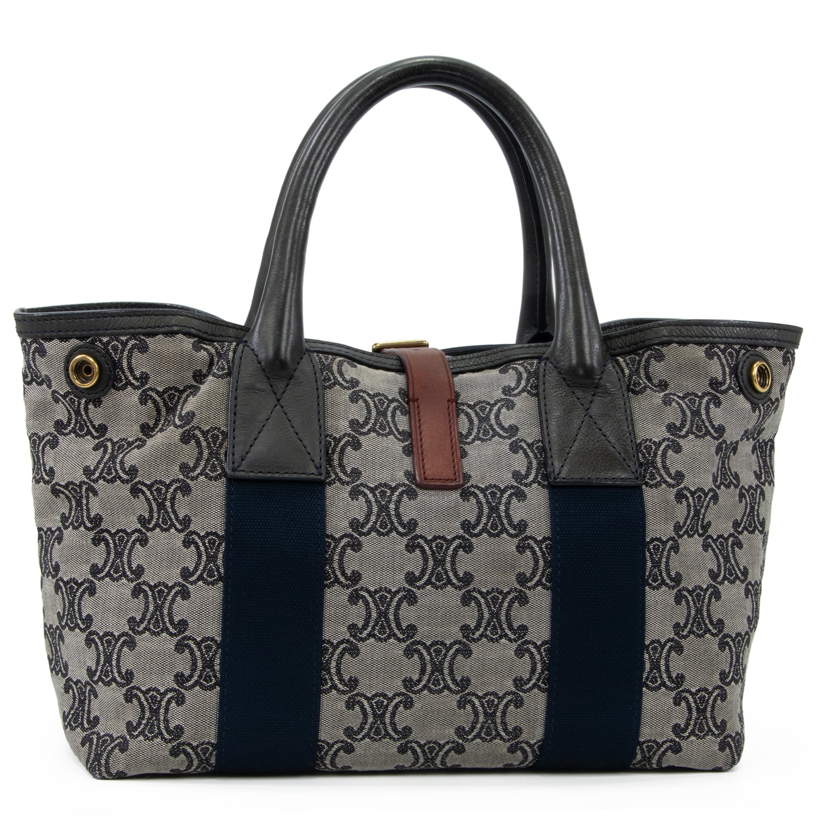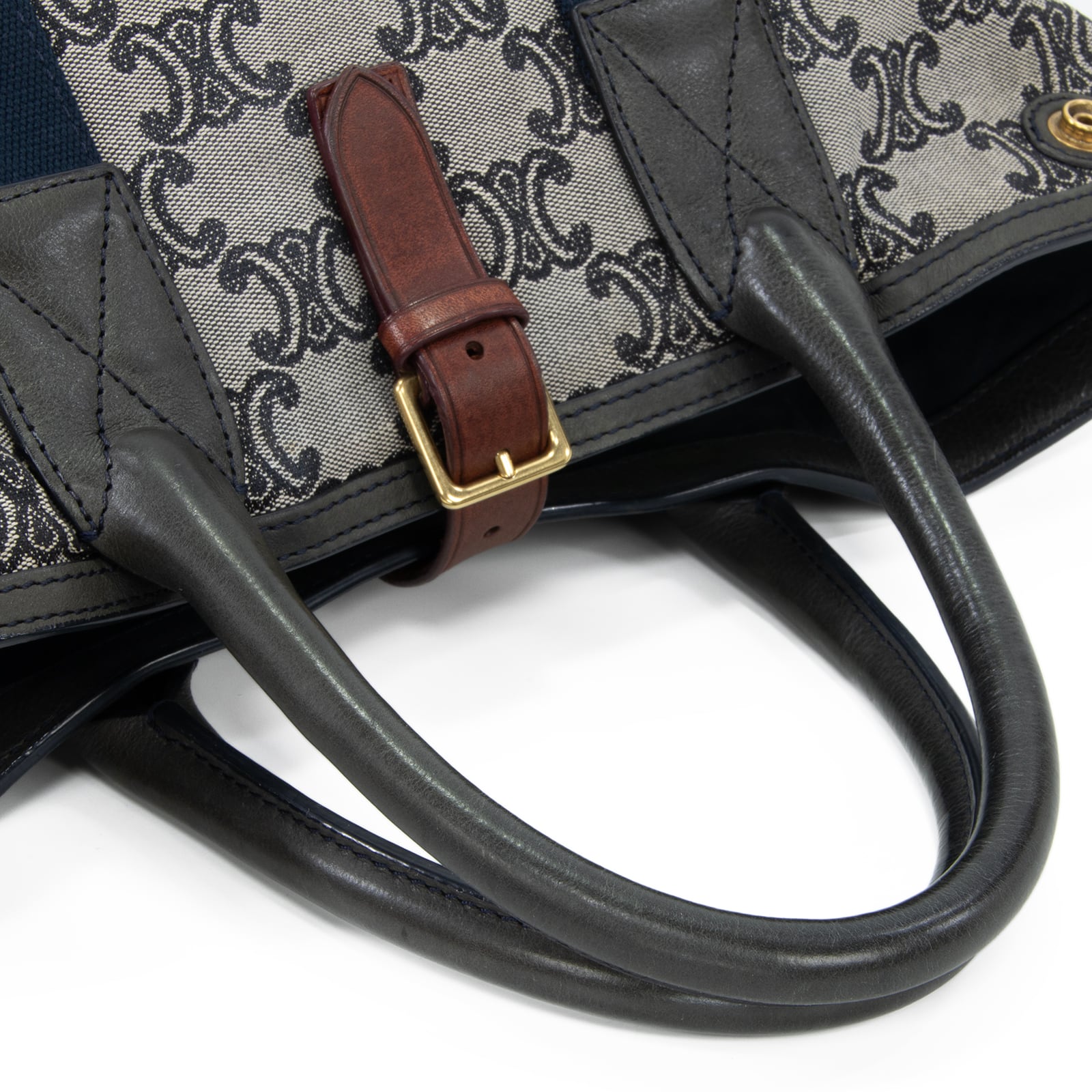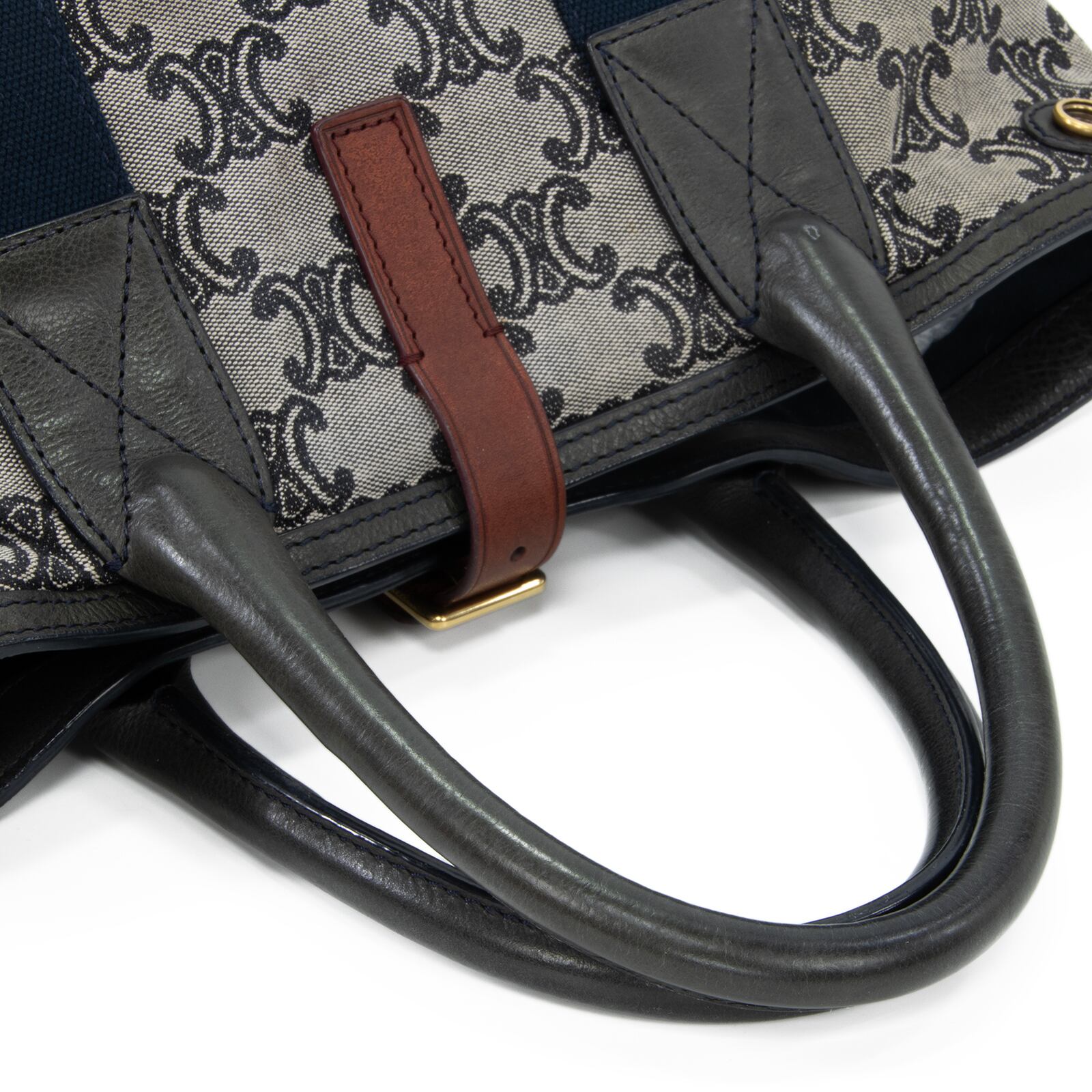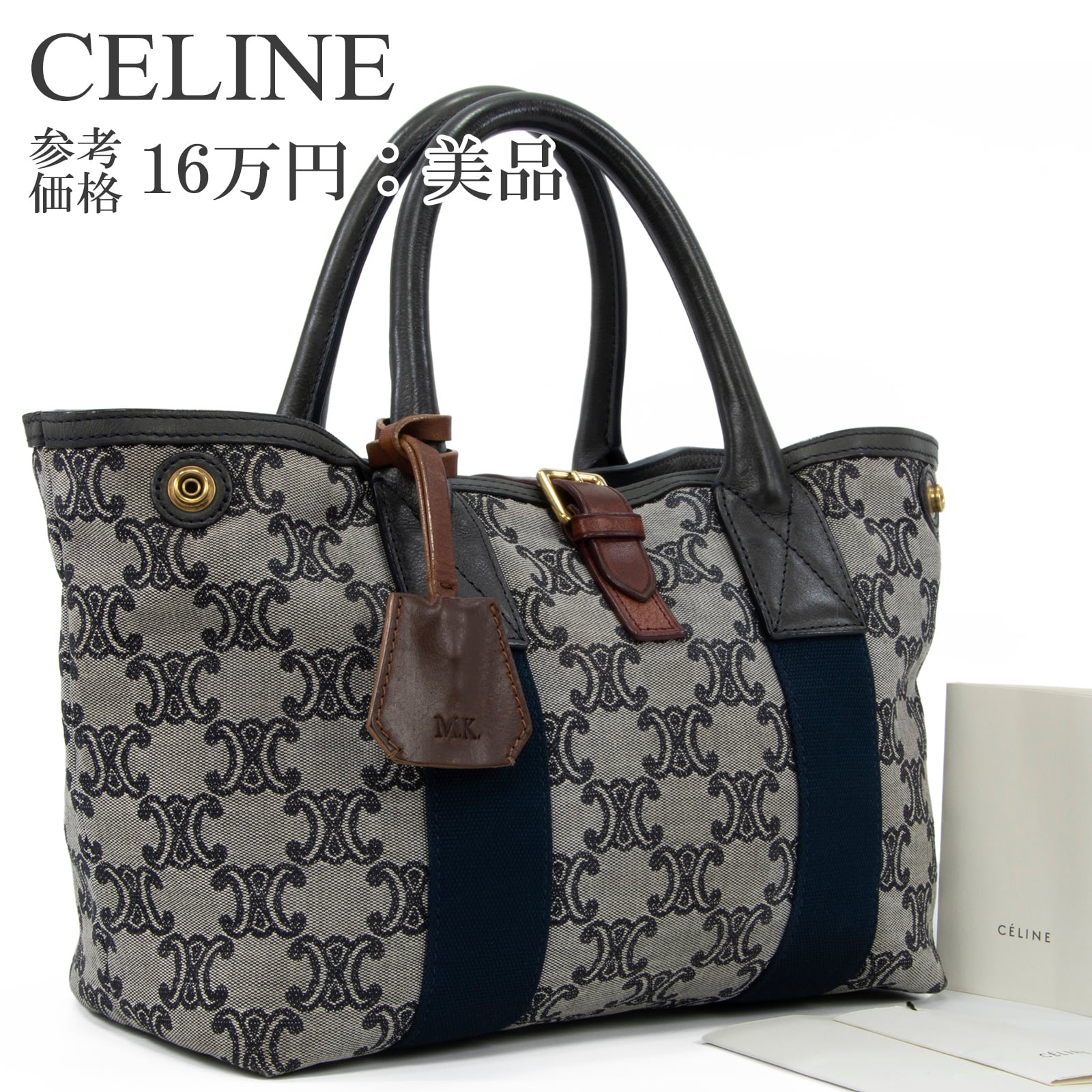 本物 送料無料 セリーヌ ハンドバッグ メンズ レディース マカダム グレー ネイビーブルー 茶色 人気 ロゴ マーク 革 綺麗 鞄 バック A873