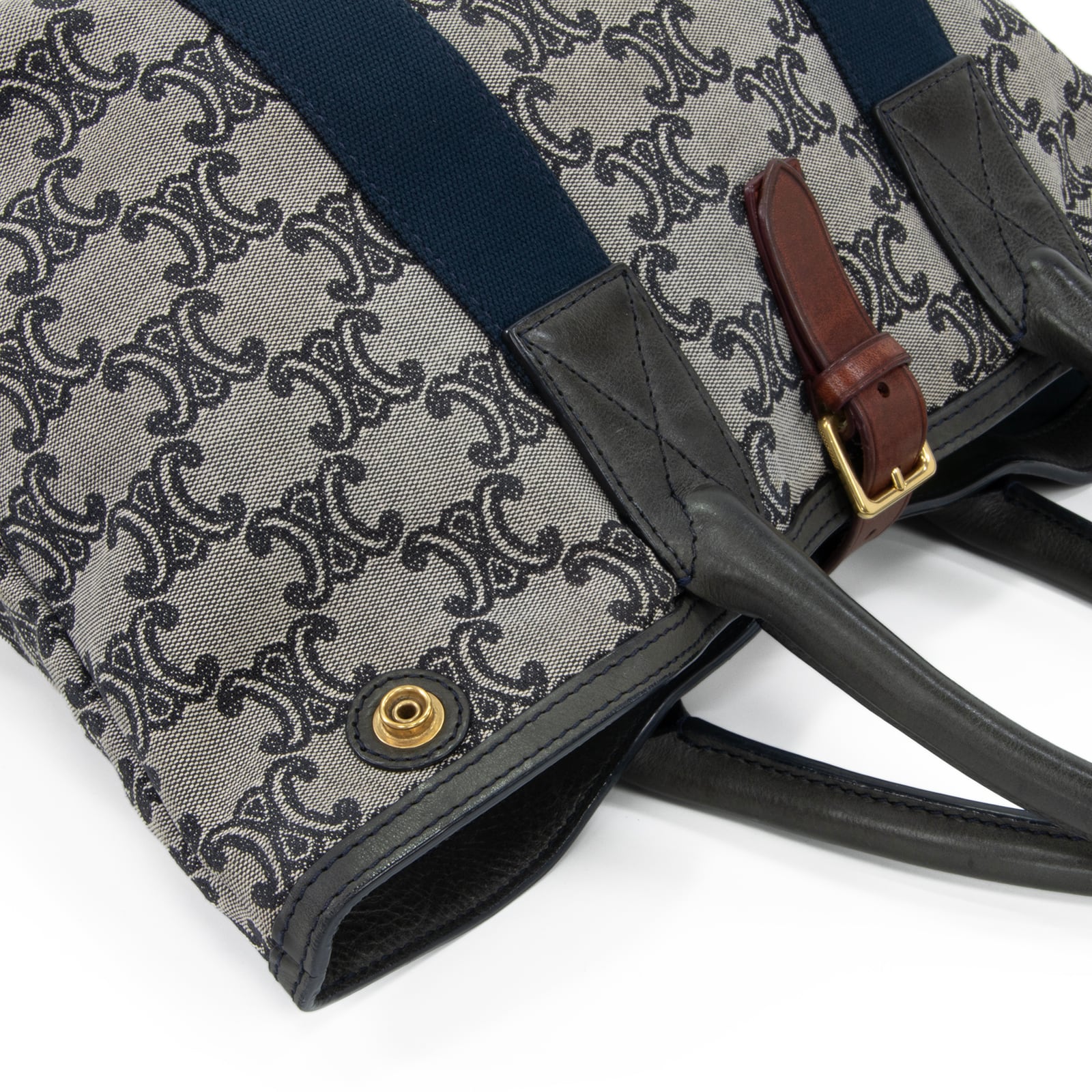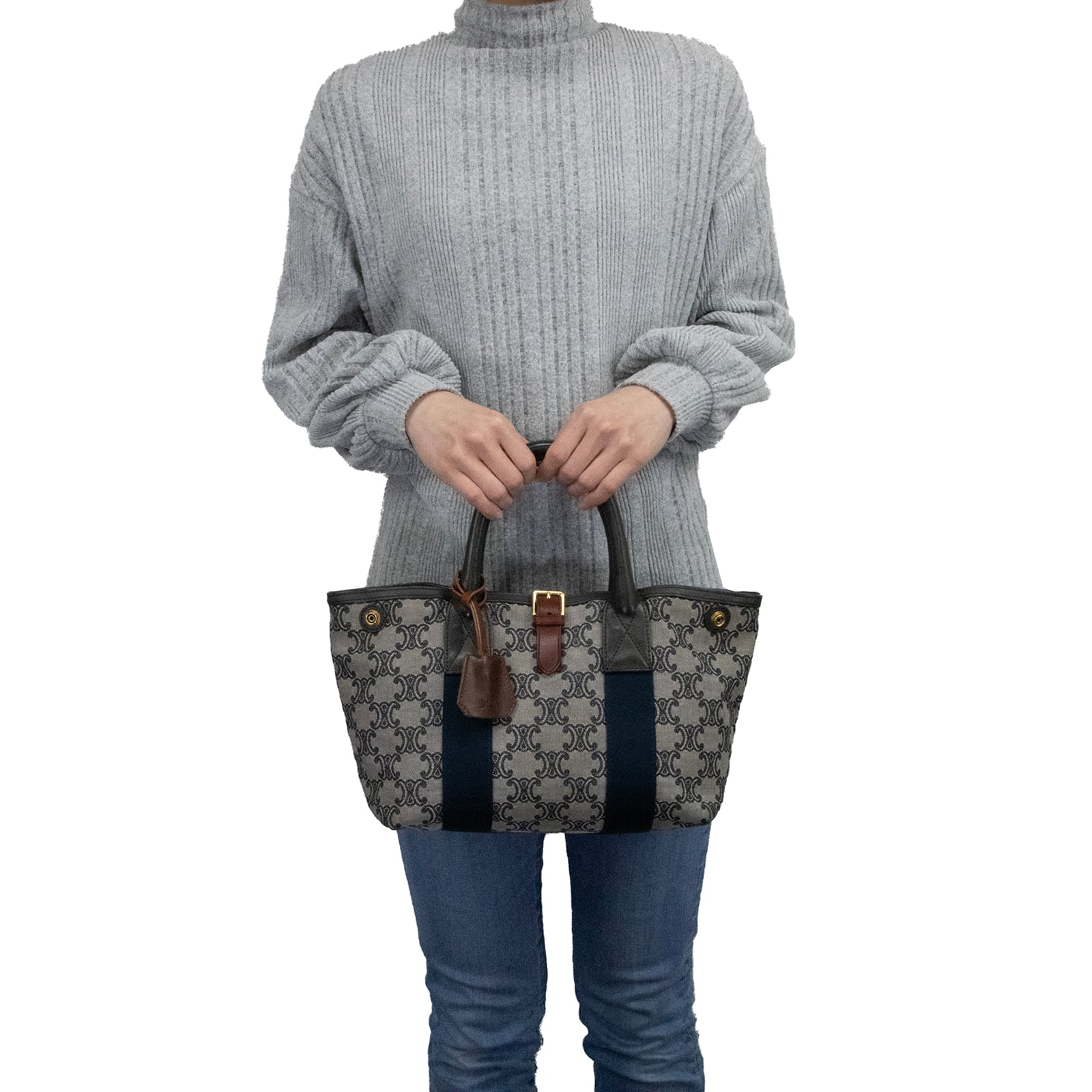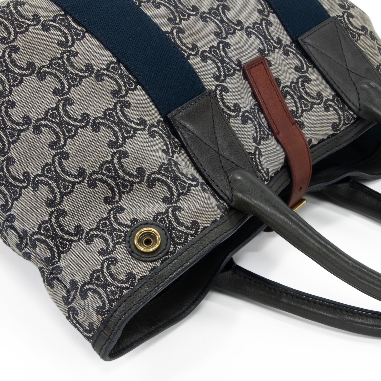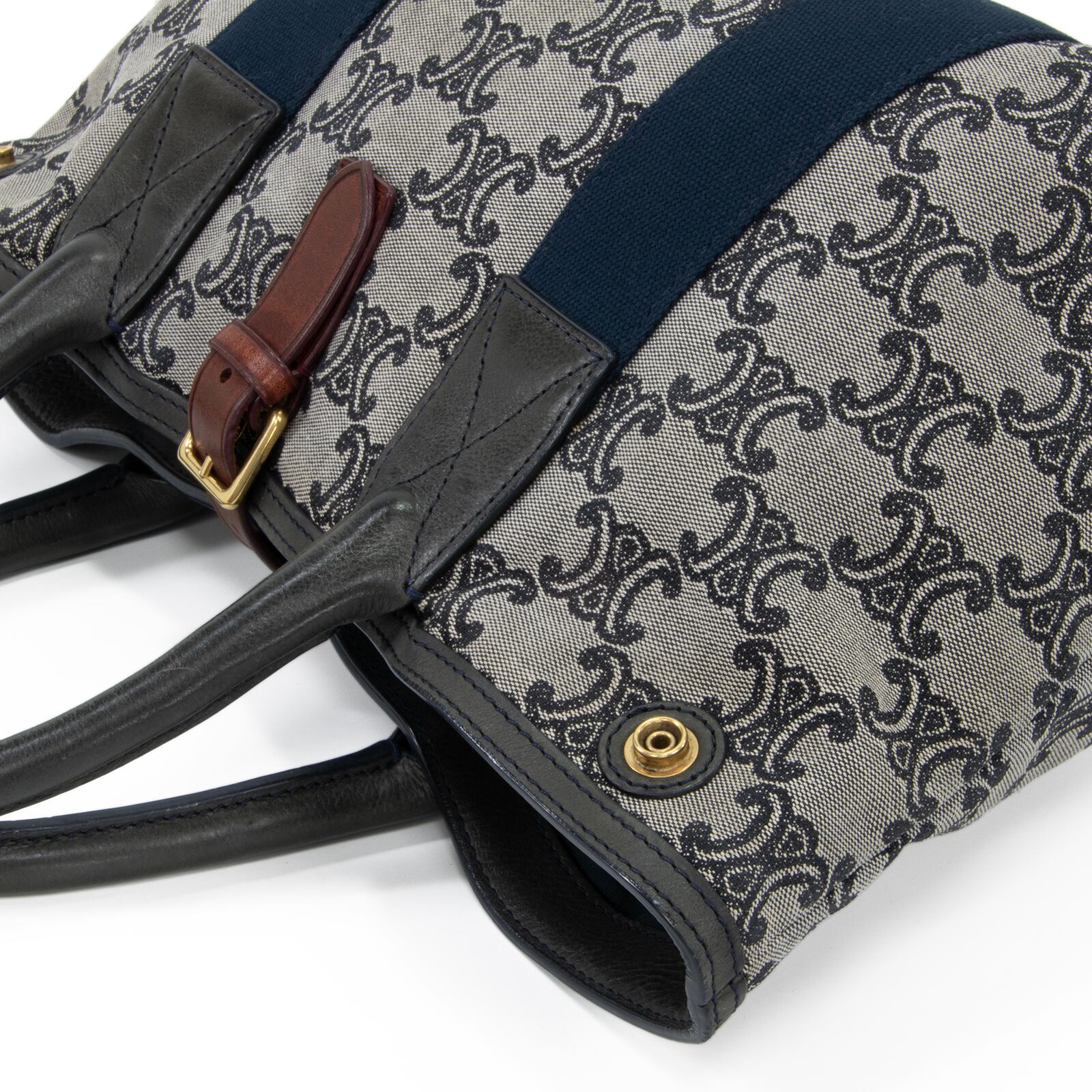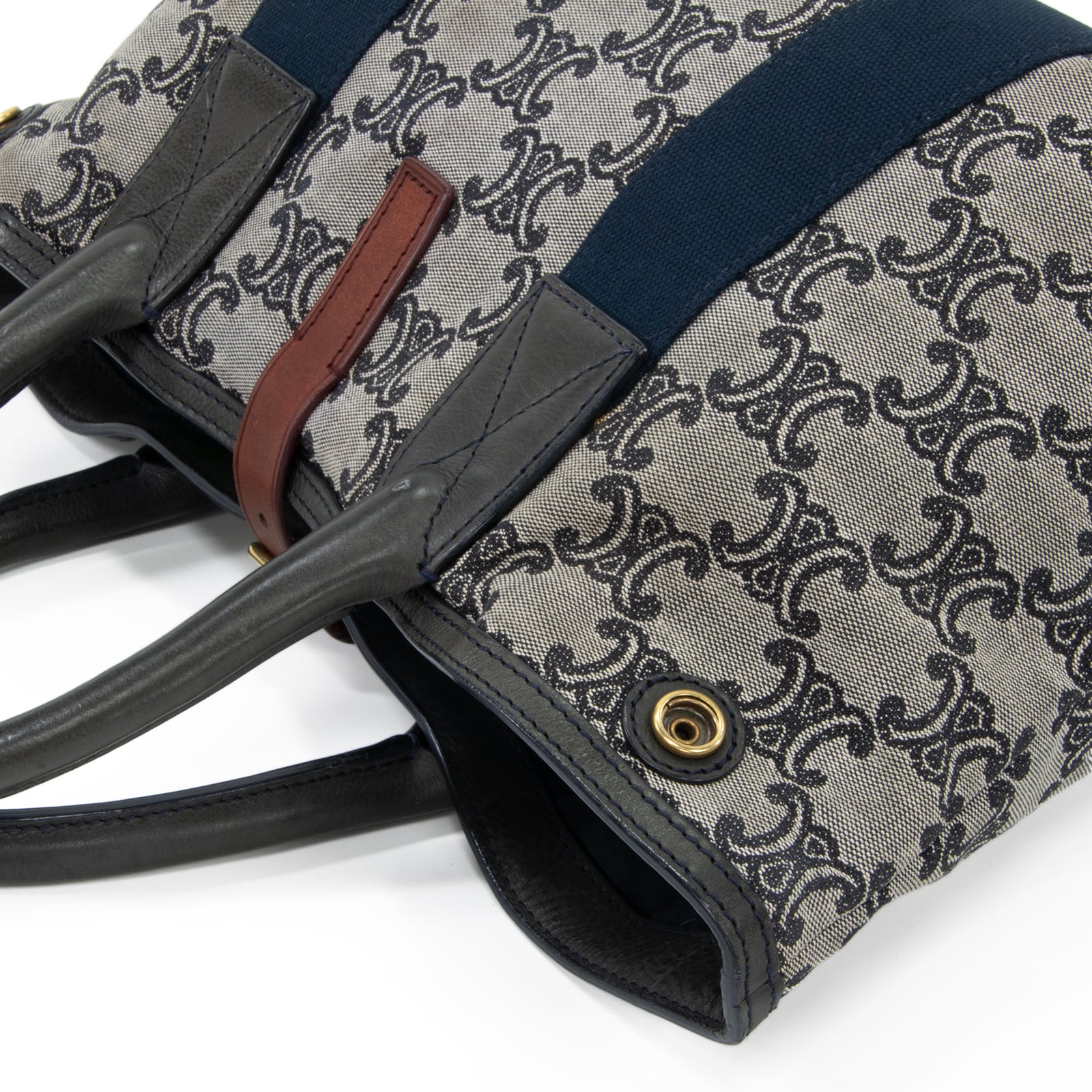 本物 送料無料 セリーヌ ハンドバッグ メンズ レディース マカダム グレー ネイビーブルー 茶色 人気 ロゴ マーク 革 綺麗 鞄 バック A873
